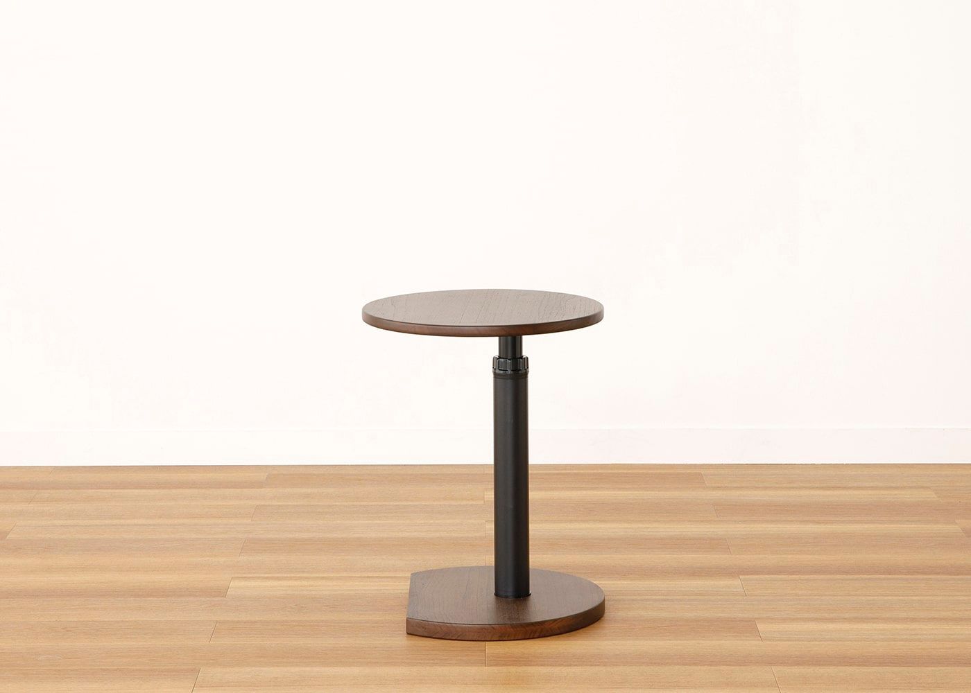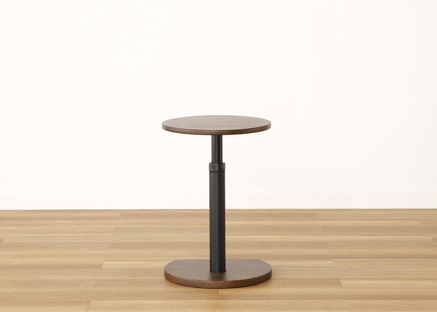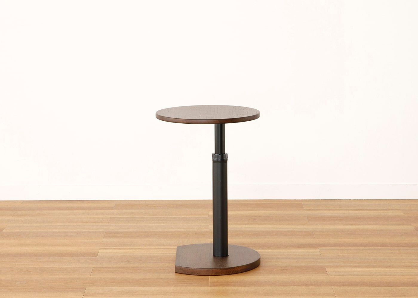 テン・サイドテーブルは、高さ488~688mmの間で2cm間隔、10段階の高さ調節が可能。支柱中央のキャップを回すだけで高さの固定と解除ができます。