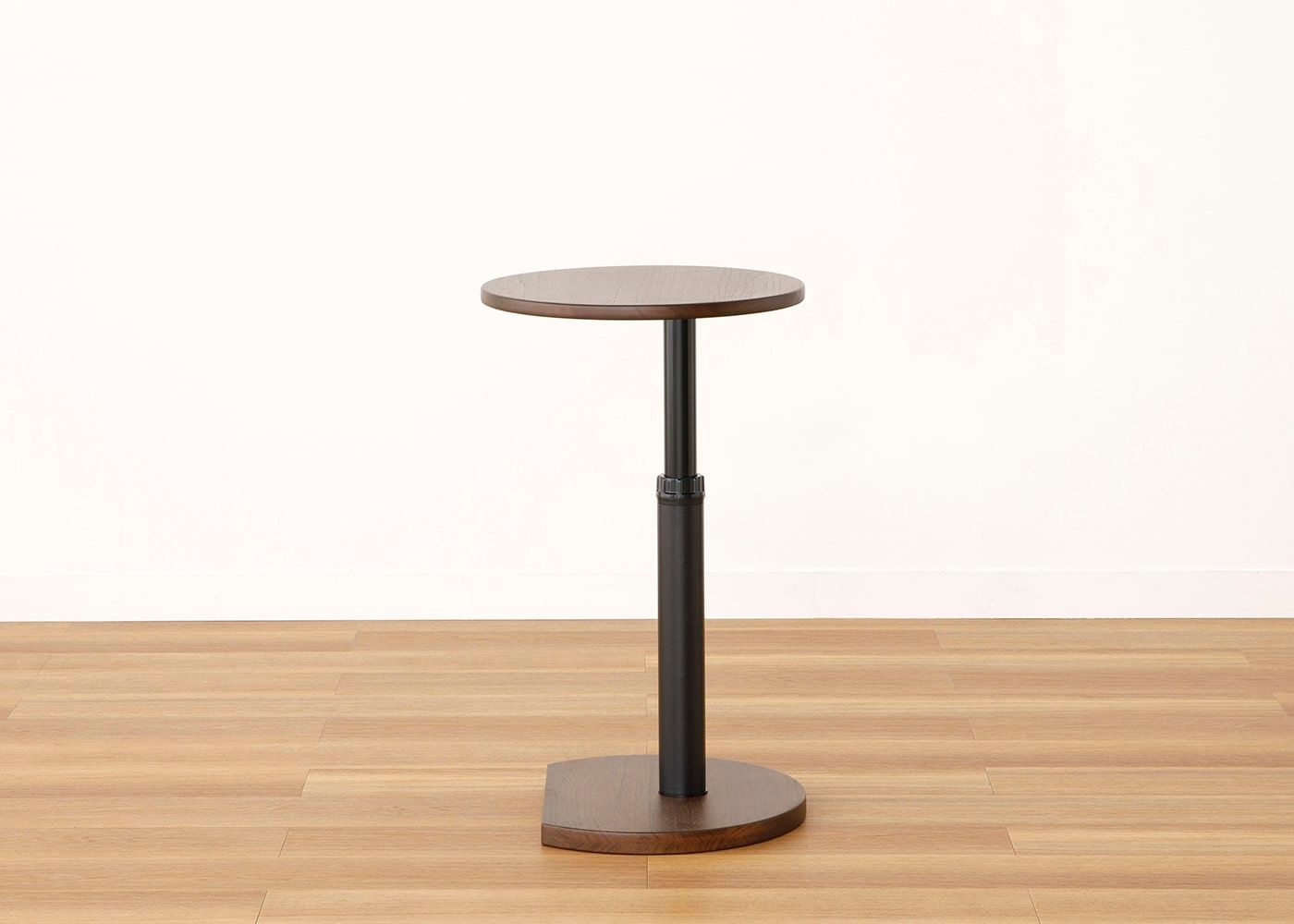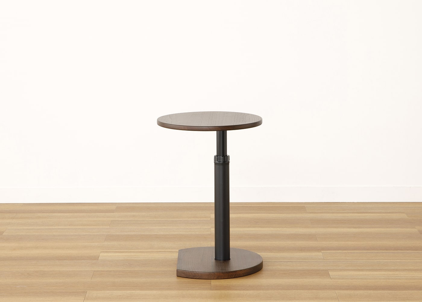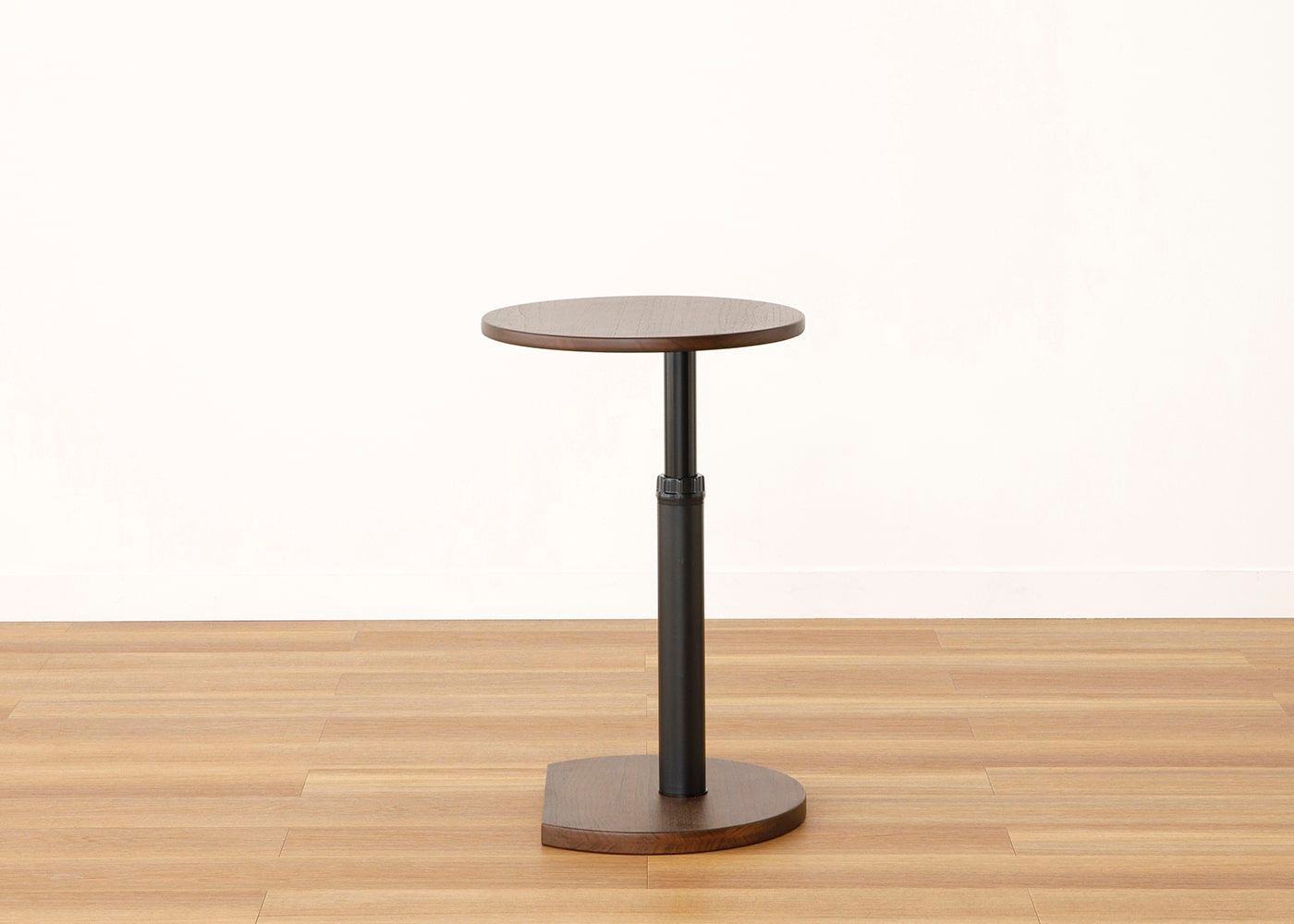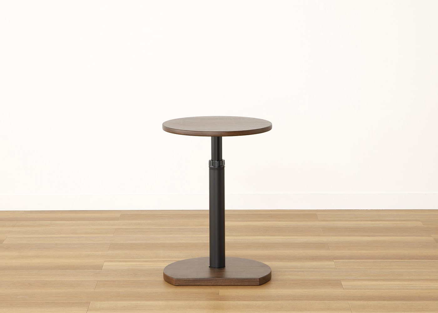 テン・サイドテーブルは、高さ488~688mmの間で2cm間隔、10段階の高さ調節が可能。支柱中央のキャップを回すだけで高さの固定と解除ができます。