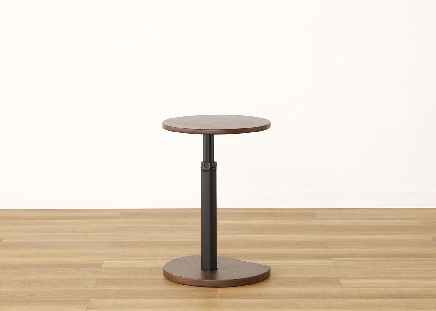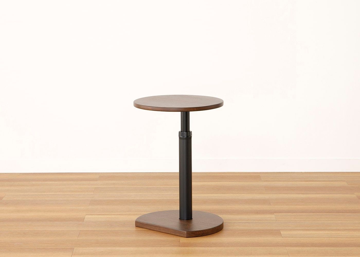 無垢材の素材感と丸みを帯びたフォルムが、見る人の心を癒してくれるテン・サイドテーブル。天板高さが調節できる便利な機能が備わった使い勝手の良さが特長。同シリーズの