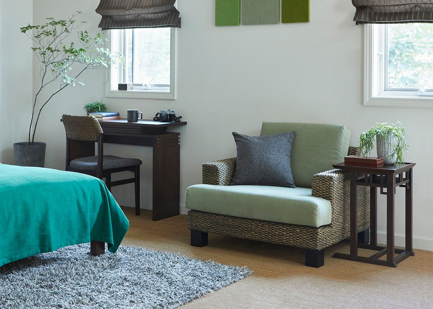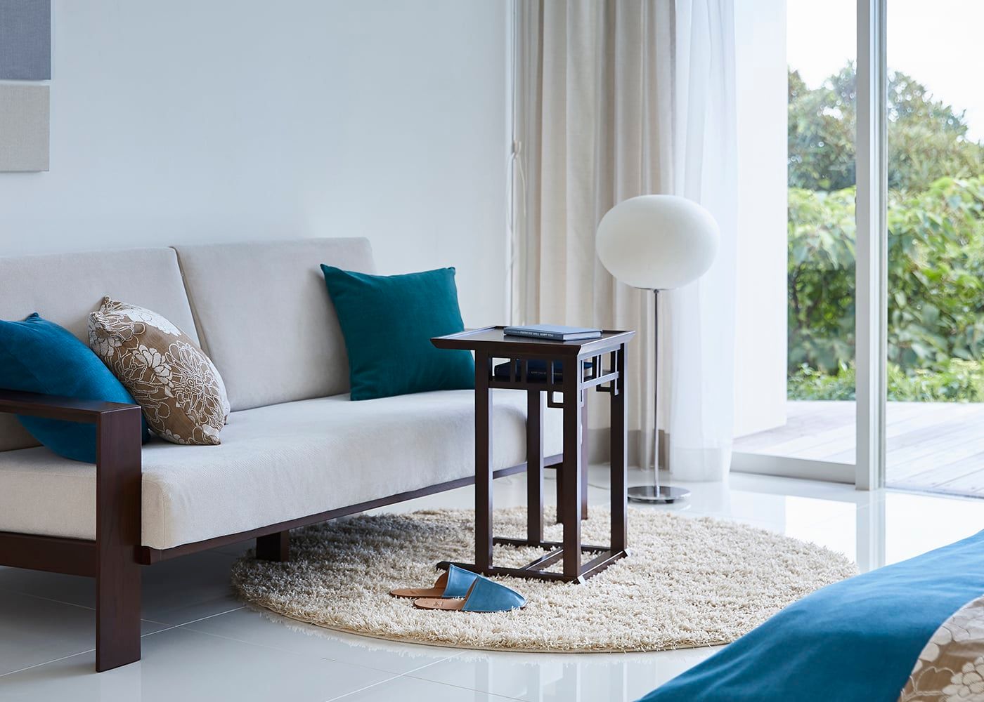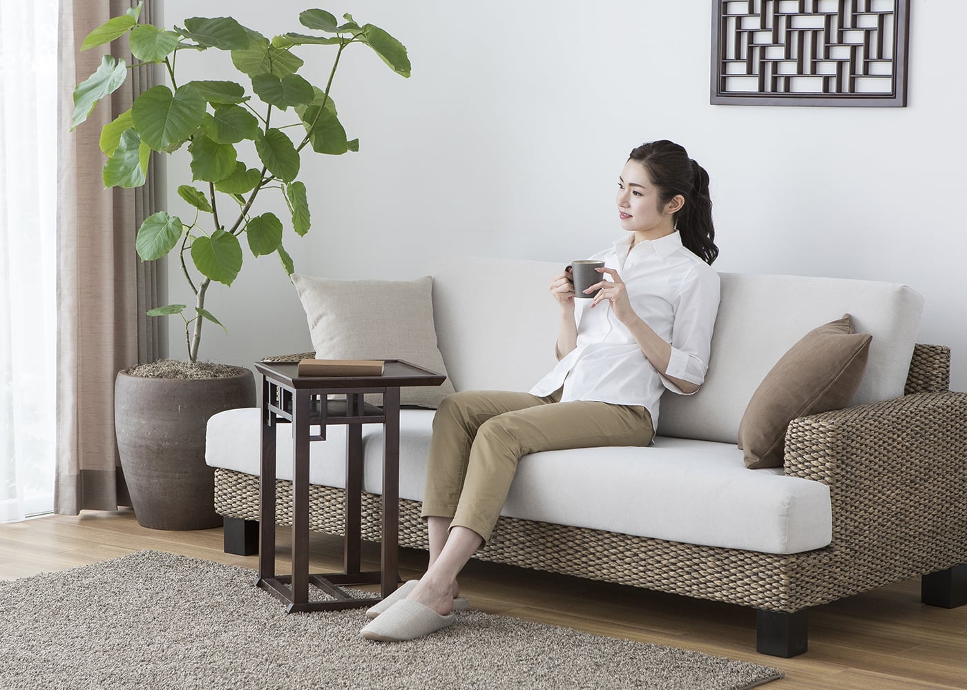 コーヒーを片手にソファに座り、サイドテーブルのあるソファで自由気ままに至福のひと時を過ごしてみては。