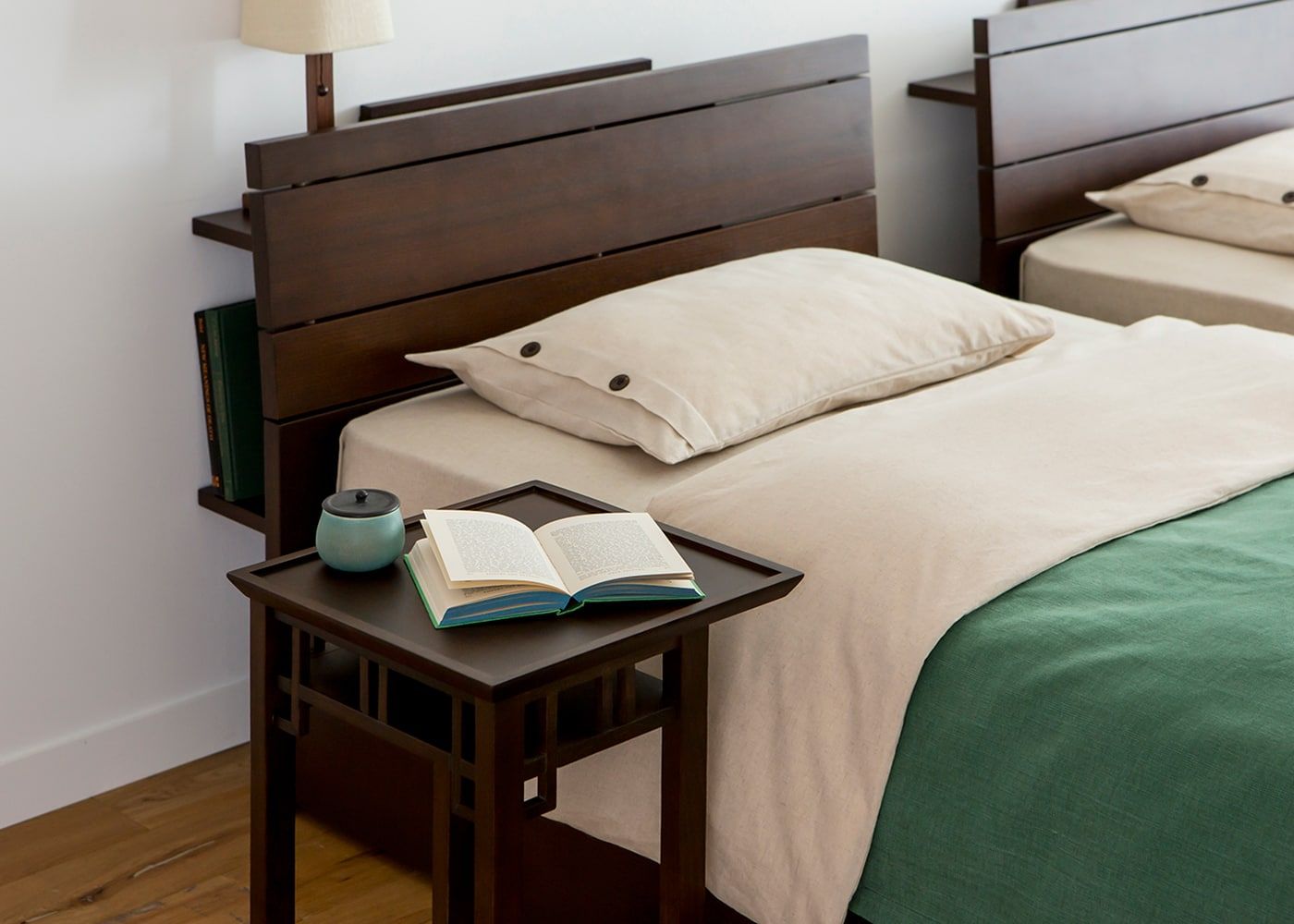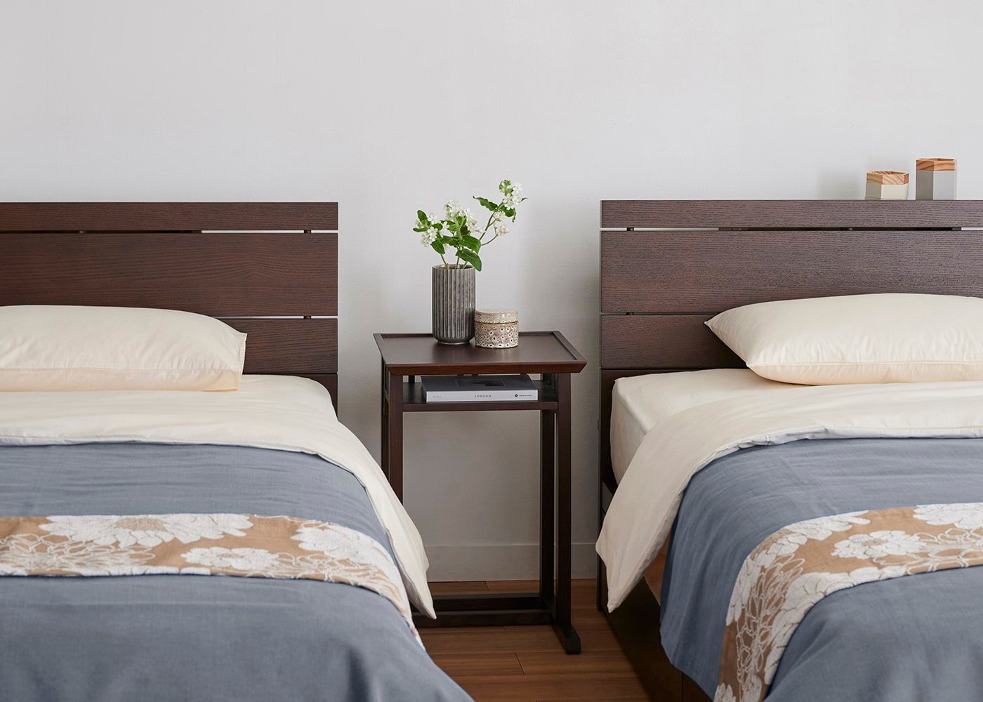 ツインベッドに配置しても圧迫感なくご利用可能です。おしゃれに見せながら細かいアイテムも置けるため、寝室ライフが充実します。