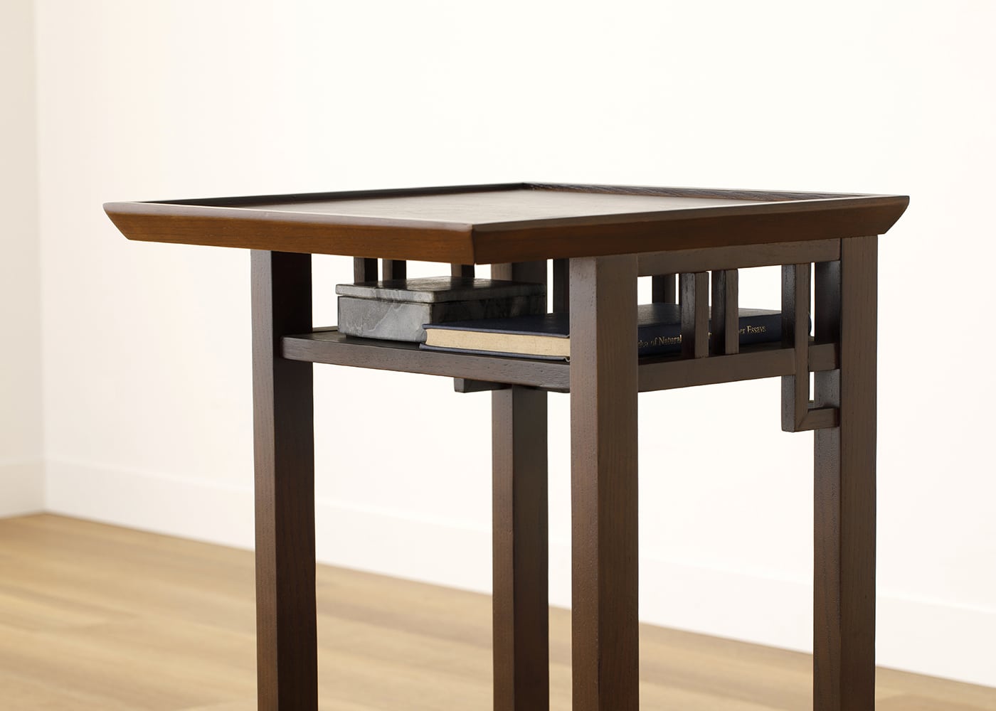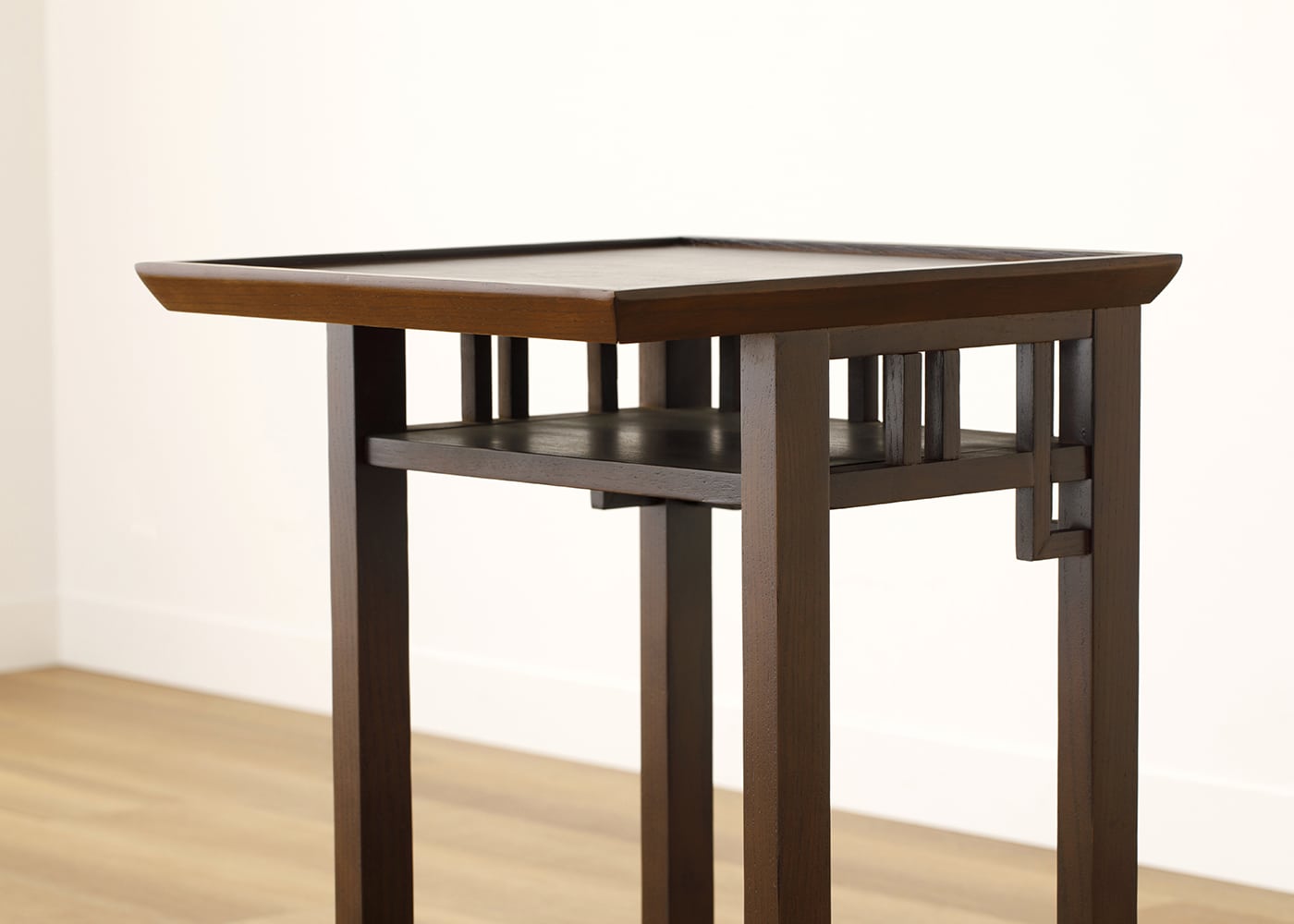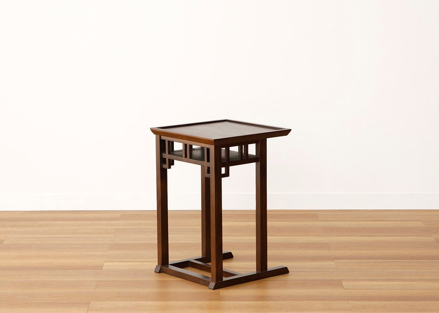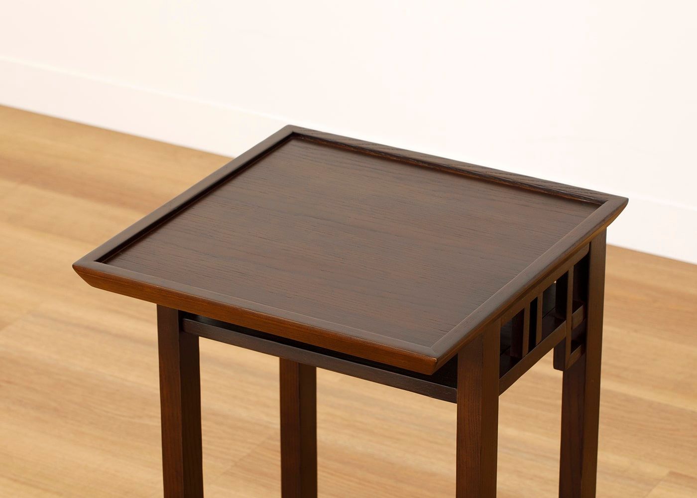 無垢材を組み上げた格子デザインが、どこかオリエンタルな雰囲気を醸し出すサイドテーブルv02。