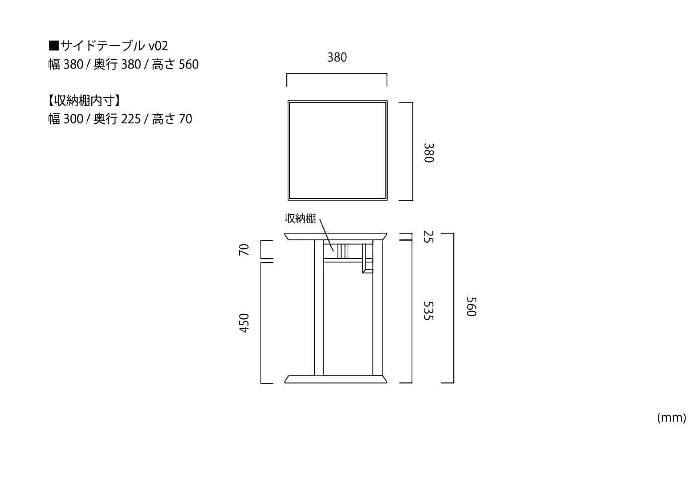 幅380 / 奥行380 / 高さ560 ※単位は mm