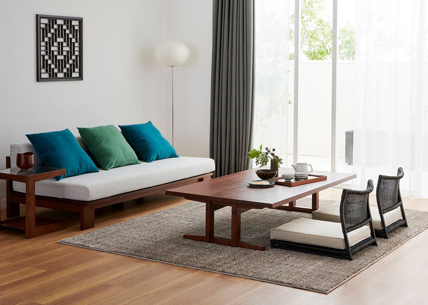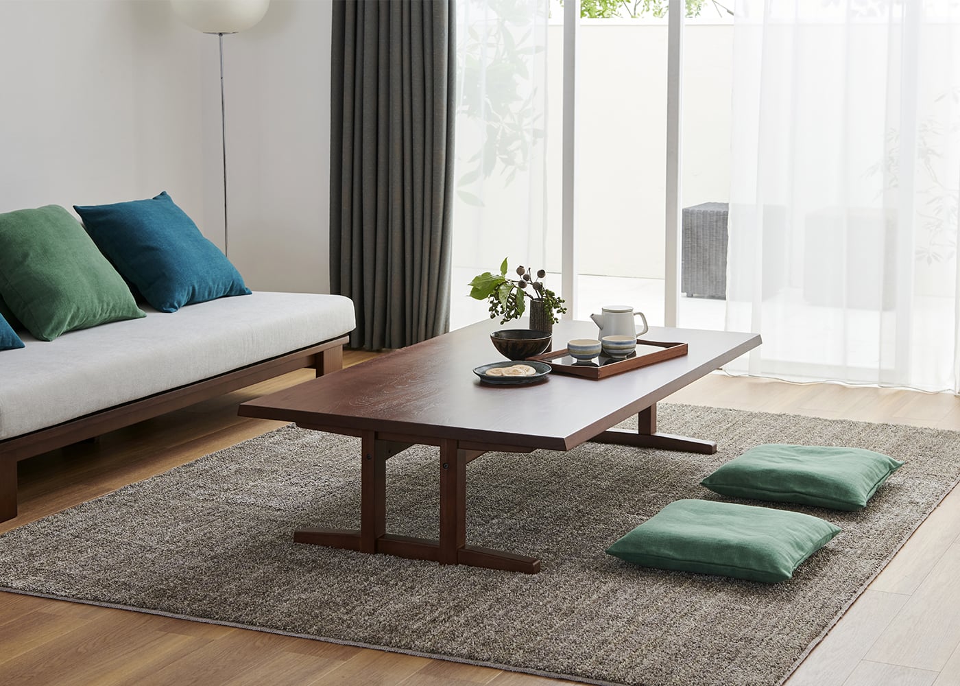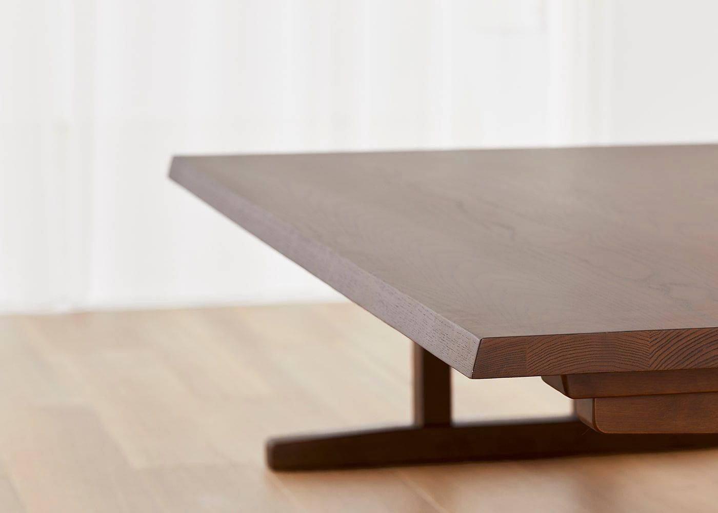 大自然の中に立ち並んだ大木の佇まいからインスピレーションを得たモク・ローテーブル 1500(GB)。