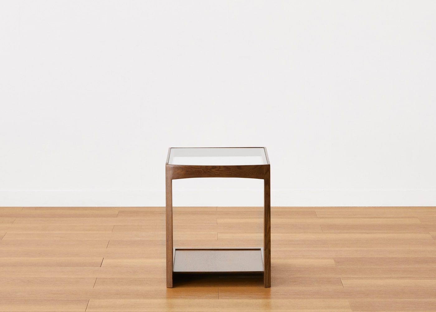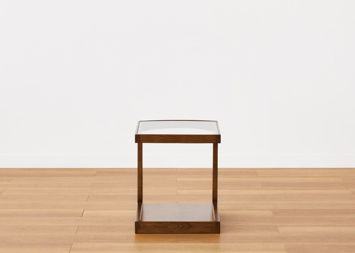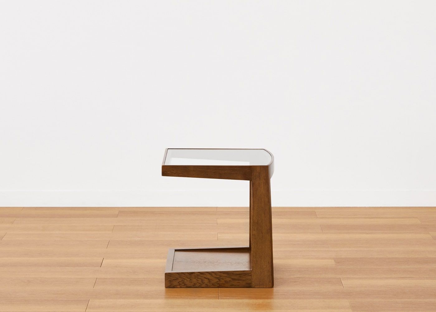 (GB)。コの字を描いた抜け感のあるデザインとガラス天板によって、海を行く船のような開放感のあるイメージに設計しました。リビングや寝室などを爽やかな印象に変えながら、より快適な暮らしも叶えてくれるサイドテーブルです。