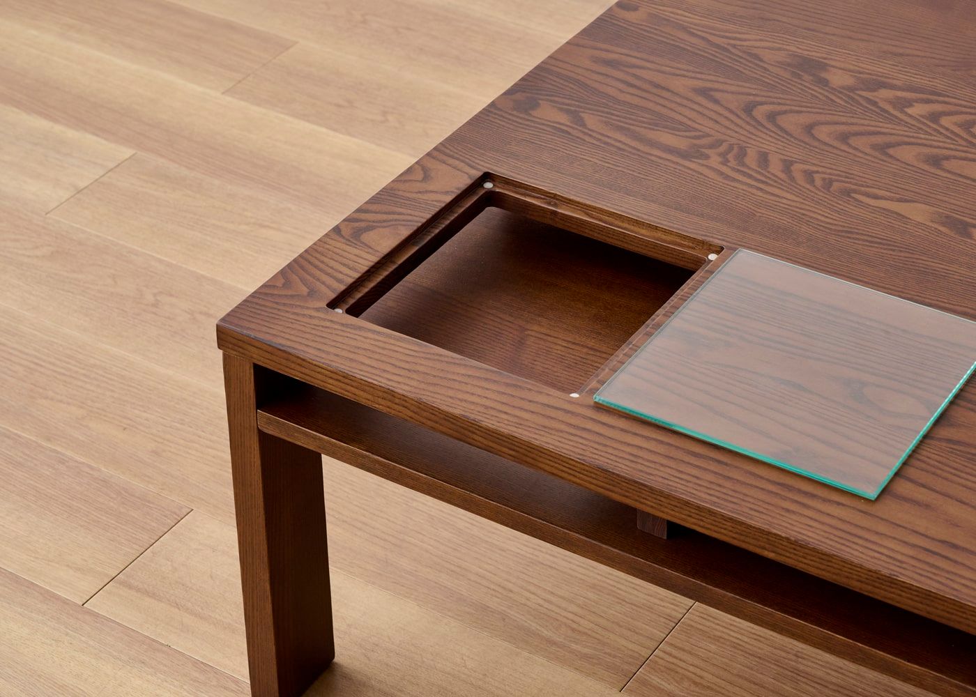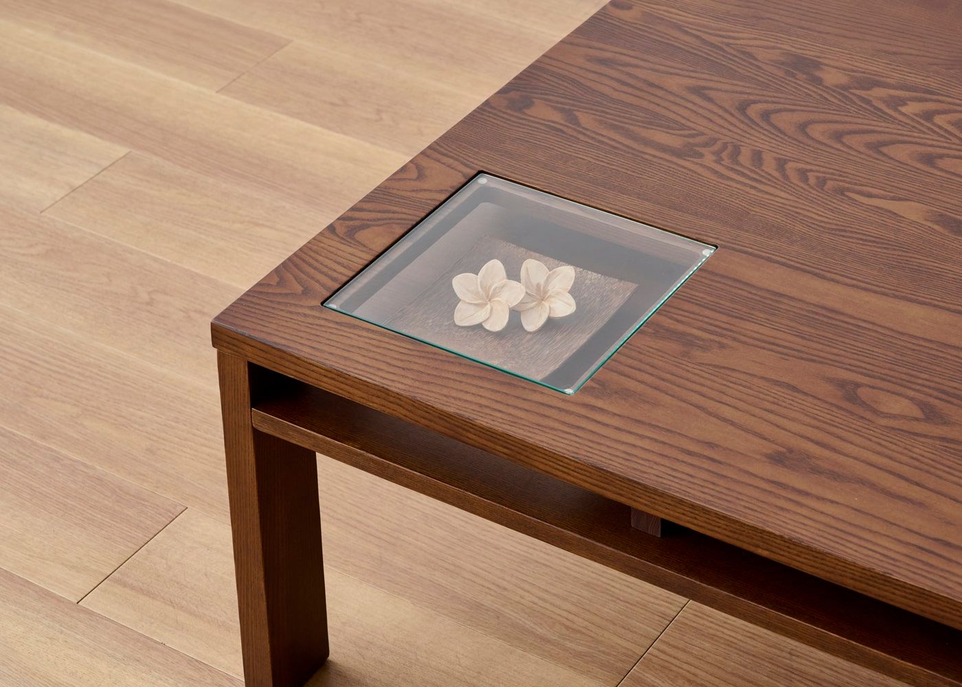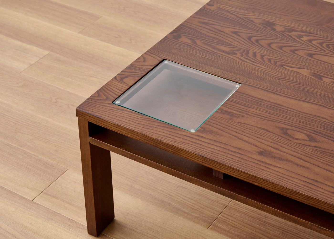 ガラス越しに見える収納部分をショーケースのように使うことで「魅せる収納」が実現するローテーブル。季節や気分に合わせてお気に入りのオブジェなどを入れるだけで、あなただけのディスプレースペースの完成です。