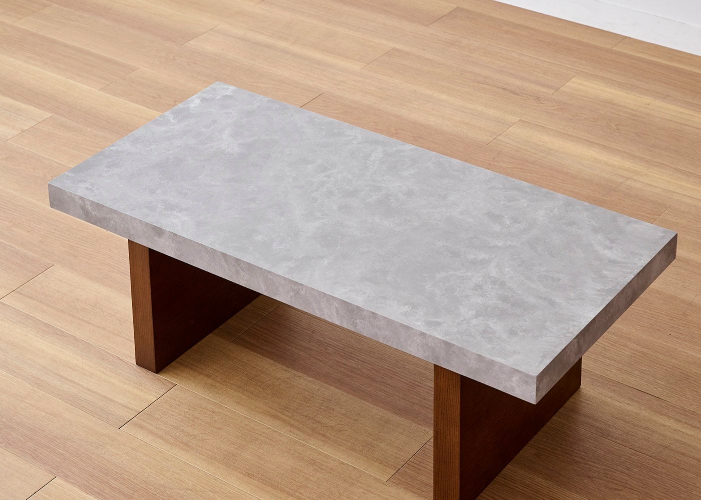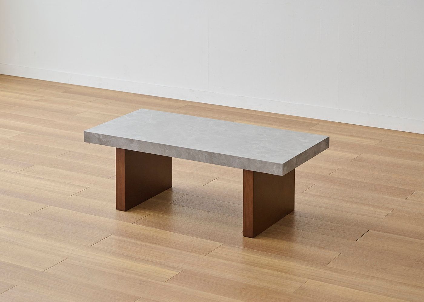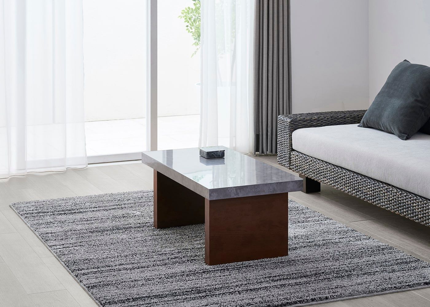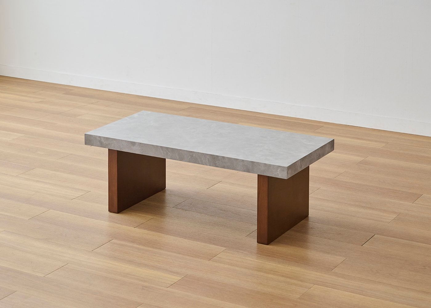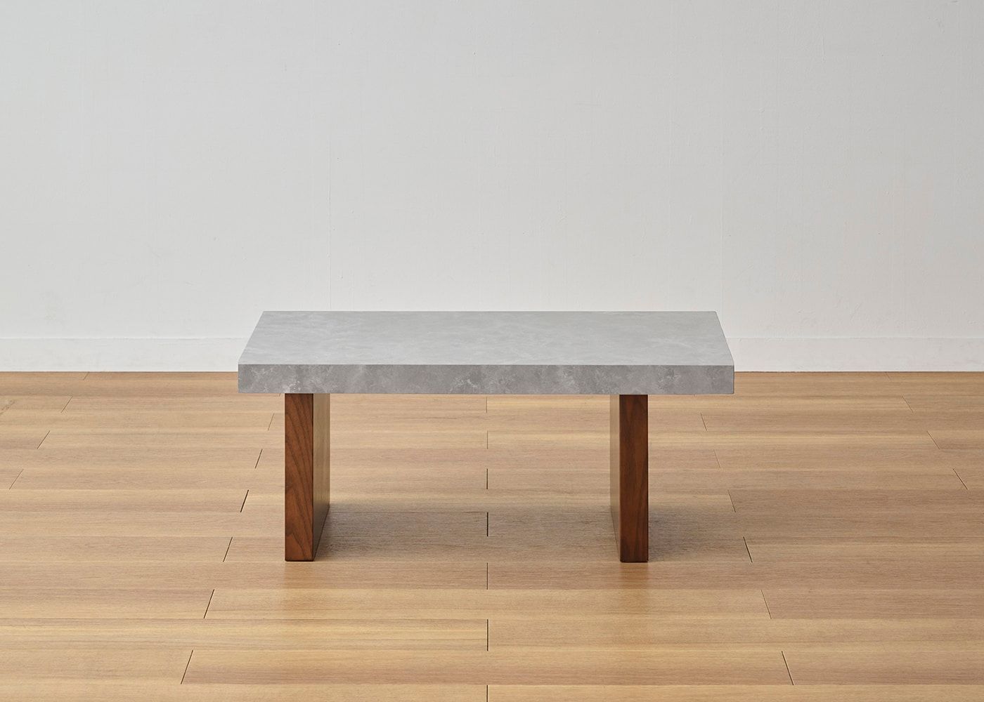 どんなソファとも合わせやすい、水平垂直で構成されたシンプルで潔いデザイン。天板の石の素材感や存在感がより際立ちます。(写真は1000タイプ 脚内付け。ソファは幅1830mm)