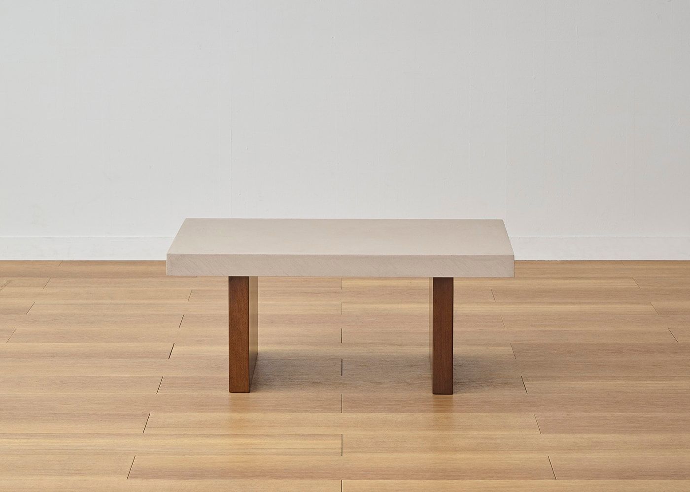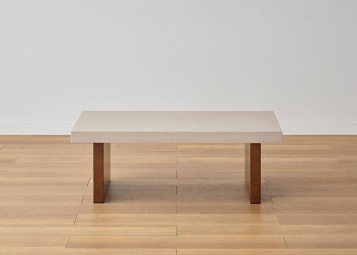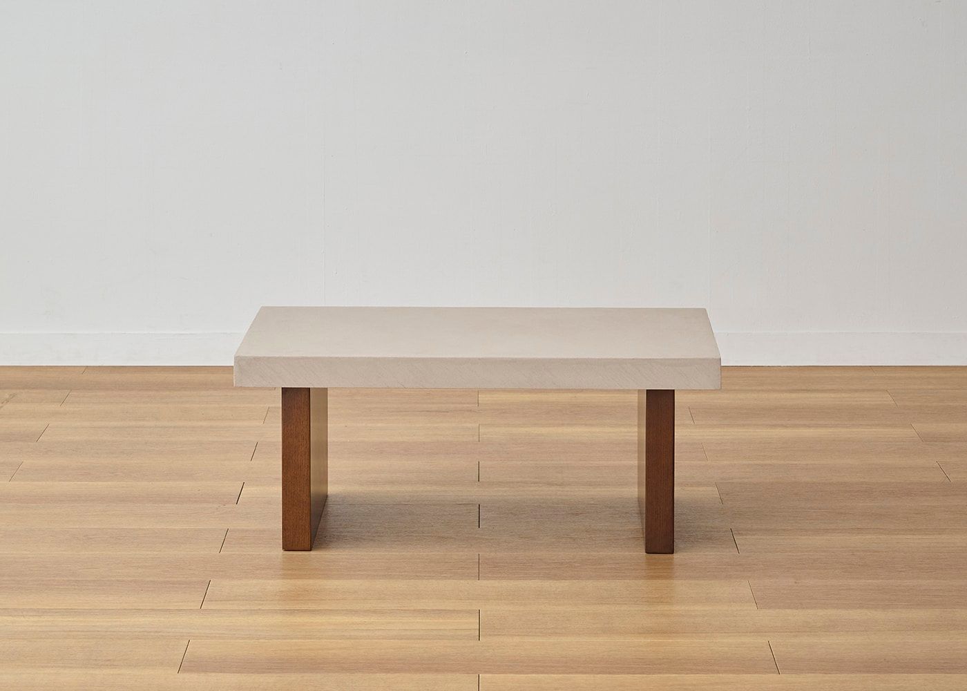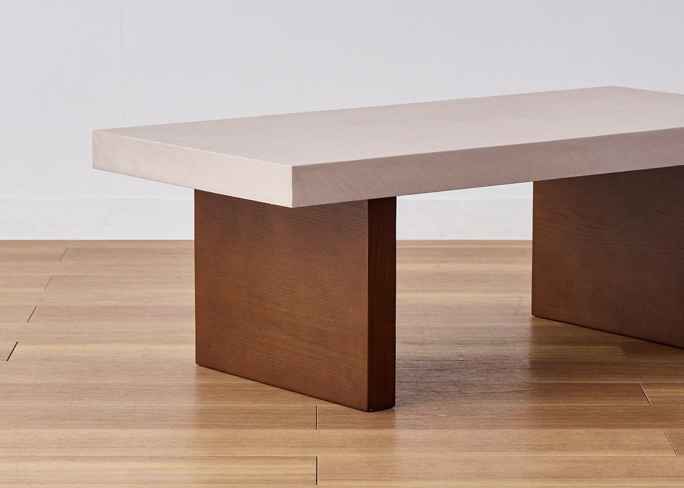 存在感のある厚さ55mmの天板にすることで、スクエアでソリッドな印象に。コンクリートのような重厚感とやさしい印象の両方楽しめるのが、グラン・ローテーブルの魅力です。