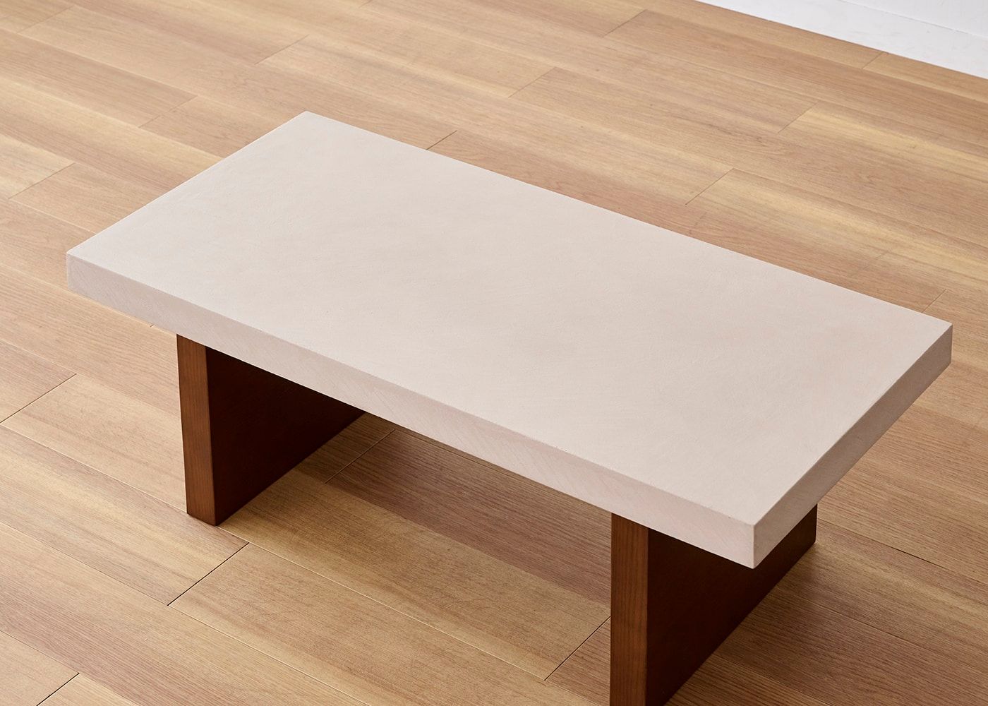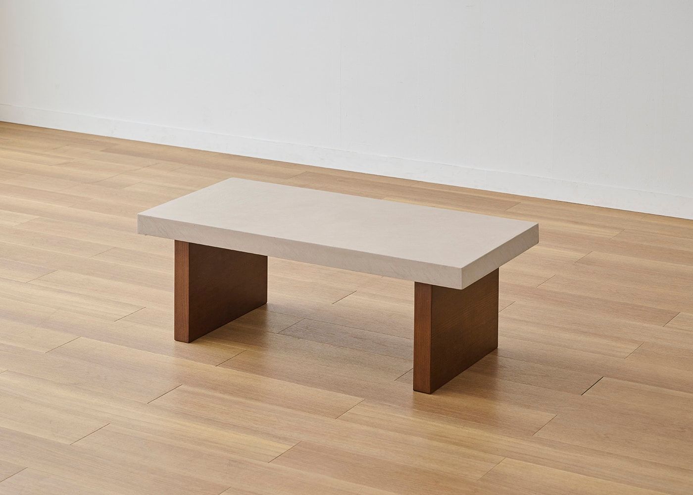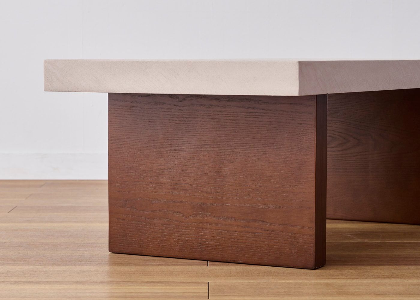 存在感のある厚さ55mmの天板にすることで、スクエアでソリッドな印象に。コンクリートのような重厚感とやさしい印象の両方楽しめるのが、グラン・ローテーブルの魅力です。