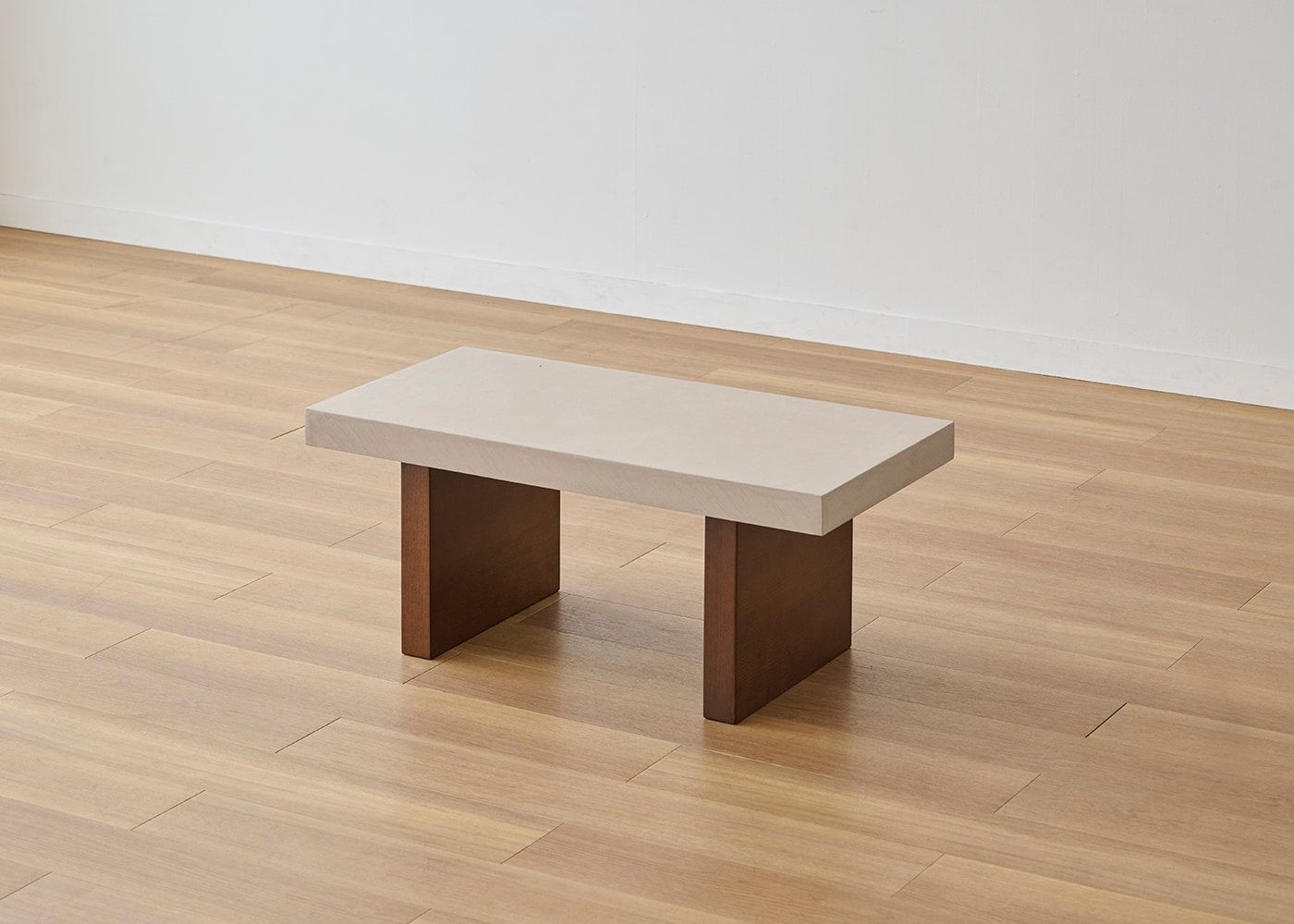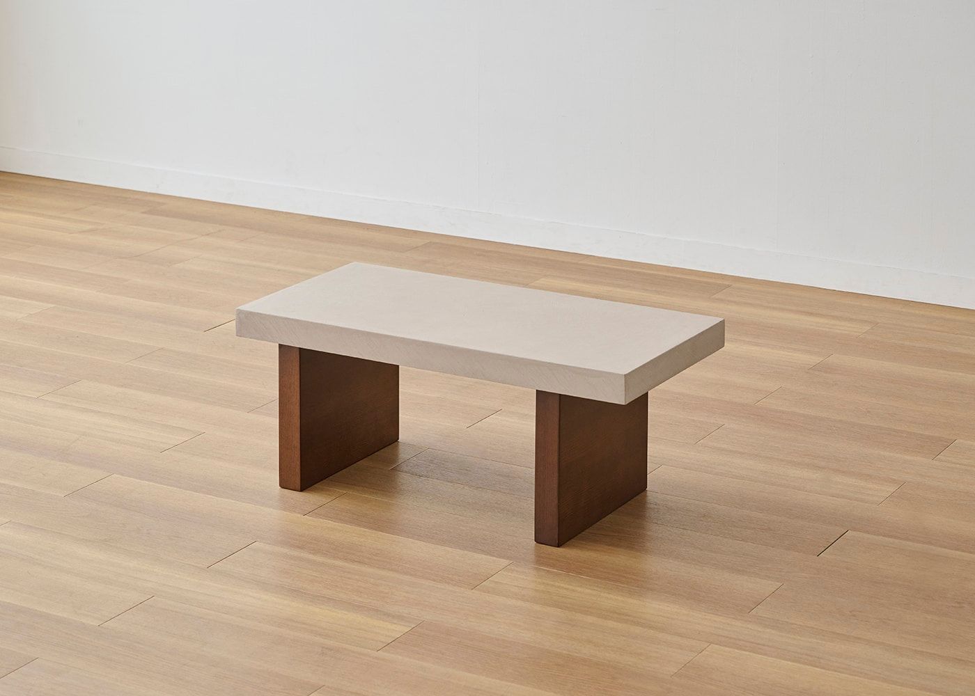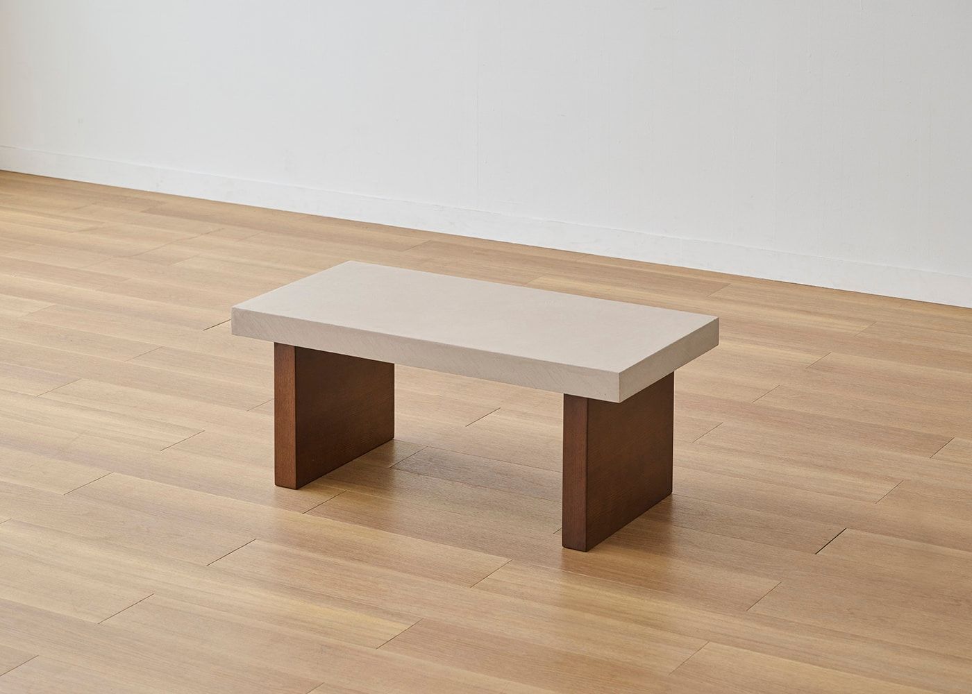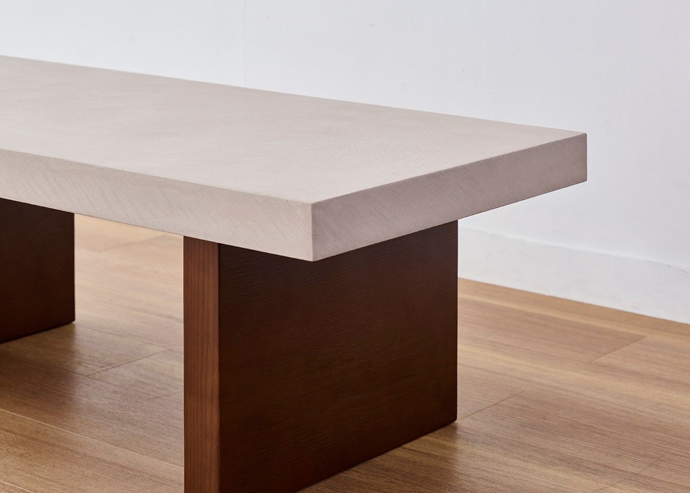 存在感のある厚さ55mmの天板にすることで、スクエアでソリッドな印象に。コンクリートのような重厚感とやさしい印象の両方楽しめるのが、グラン・ローテーブルの魅力です。
