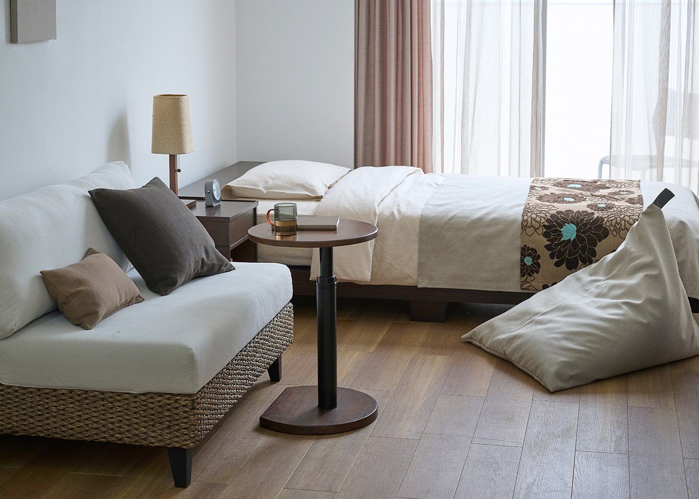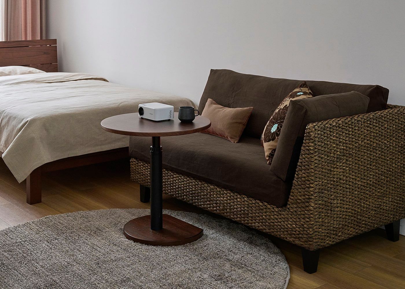 サイドテーブルをソファの前に置いて、自分だけのゆったりとした時間を楽しんでみましょう。ソファでくつろぎながら、プロジェクターで動画を観たり、音楽を聴いたり、自由に過ごす時間を満喫してください。