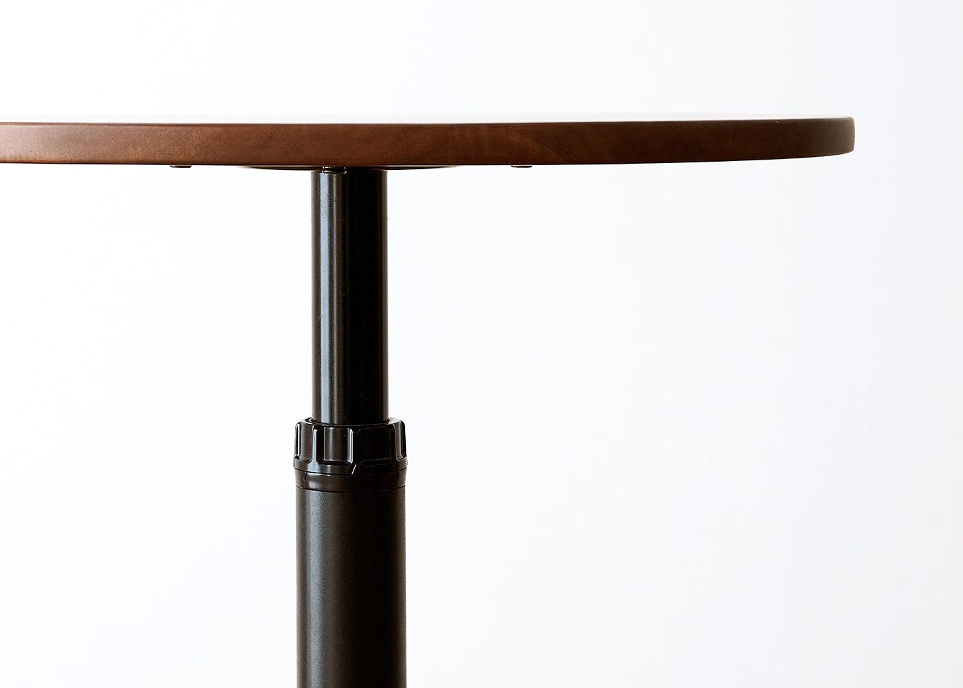 テン・サイドテーブル 550は、高さ488~688mmの間で2cm間隔、10段階の高さ調節が可能。支柱中央のキャップを回すだけで高さの固定と解除ができます。