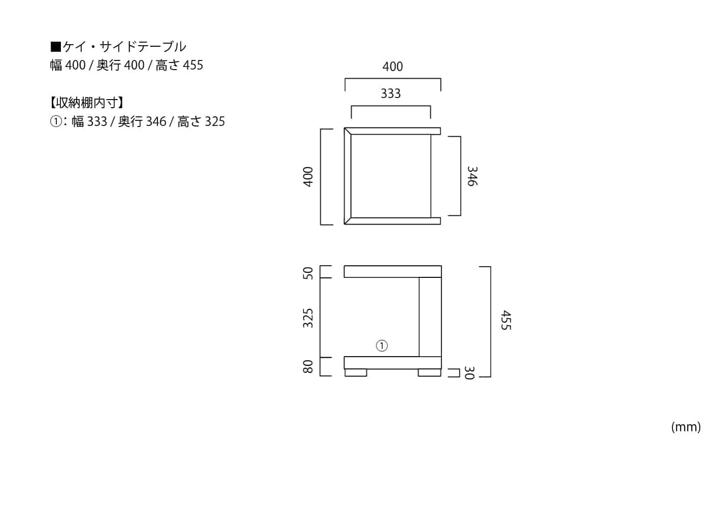 幅400 / 奥行400 / 高さ455 ※単位は mm