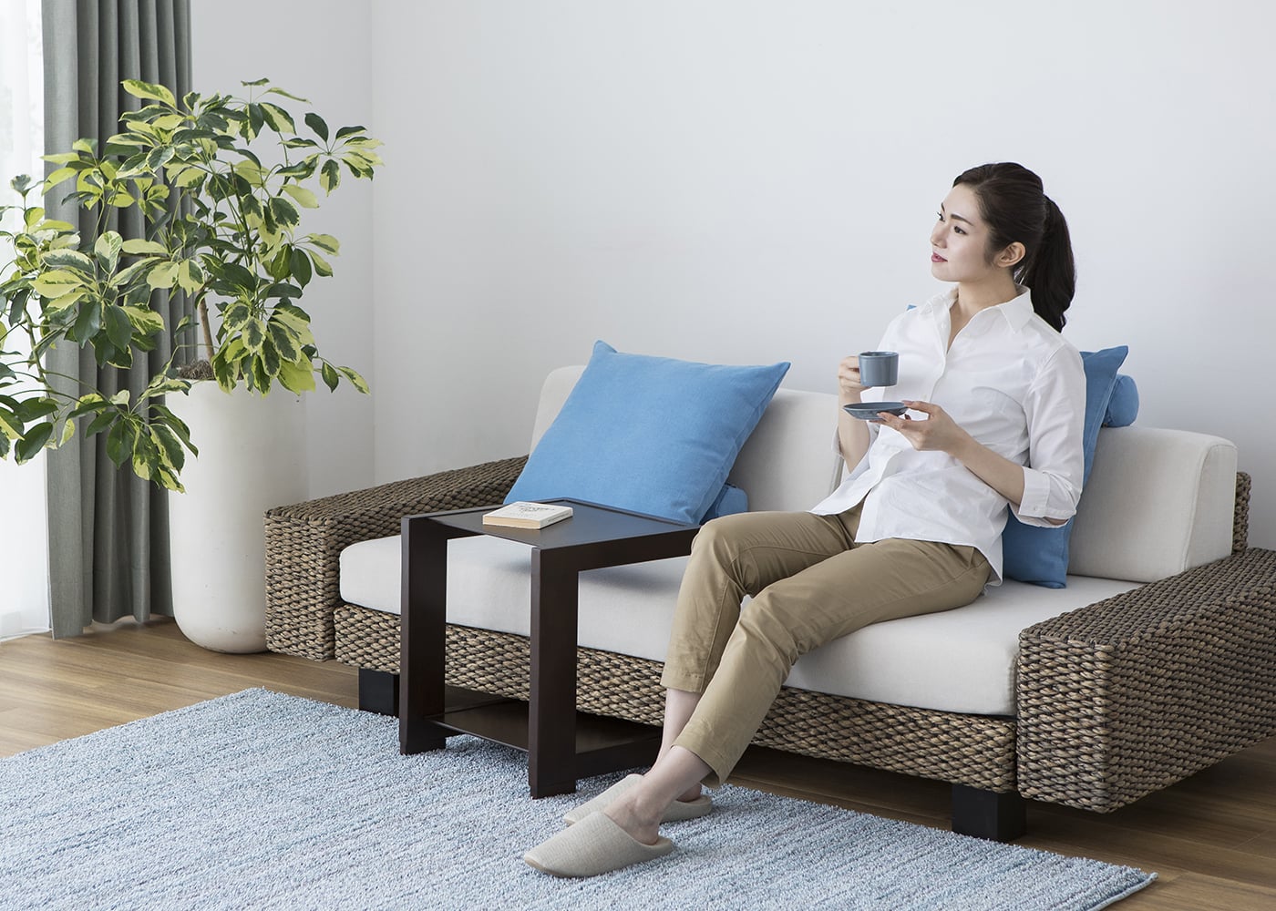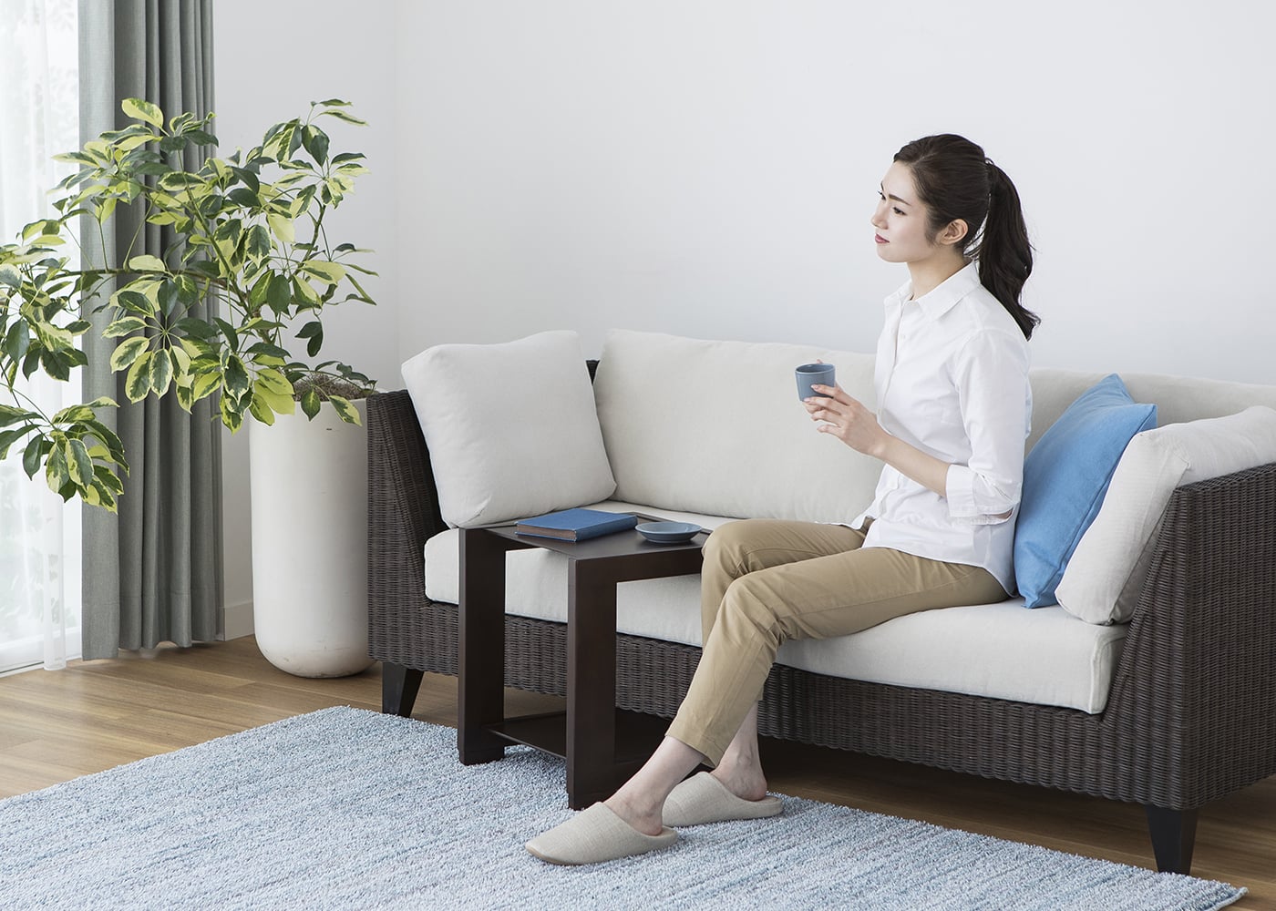 ローソファでゆっくりコーヒーを飲みながら、ケイ・サイドテーブルを使って日本人らしい床に近い暮らしを楽しんでみては。