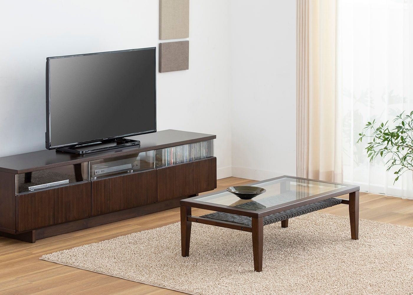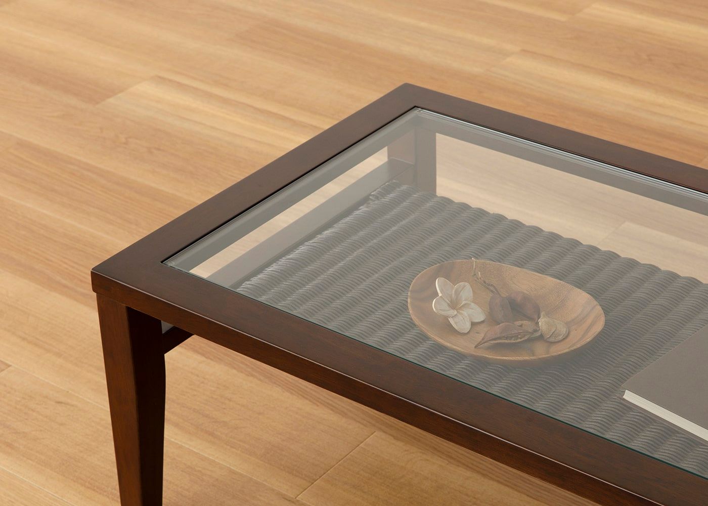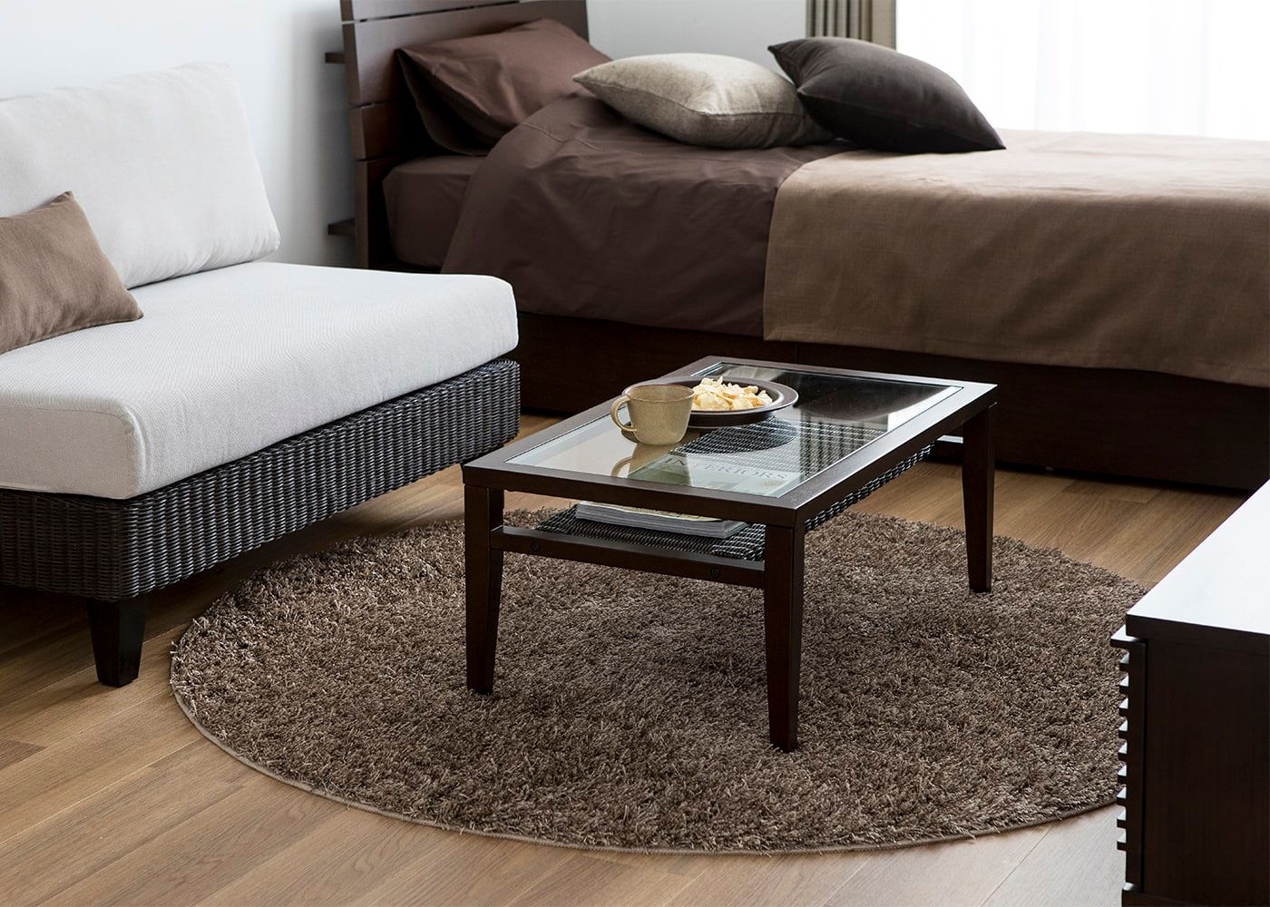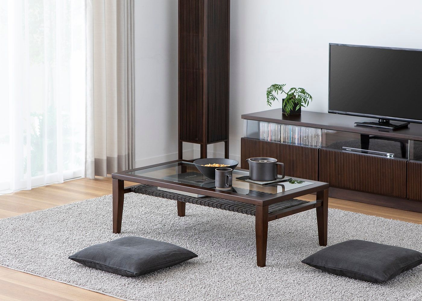 ガラス越しに見える収納部分をショーケースのように使うことで「魅せる収納」が実現するローテーブル。季節や気分に合わせてお気に入りのオブジェなどを入れるだけで、あなただけのディスプレースペースの完成です。
