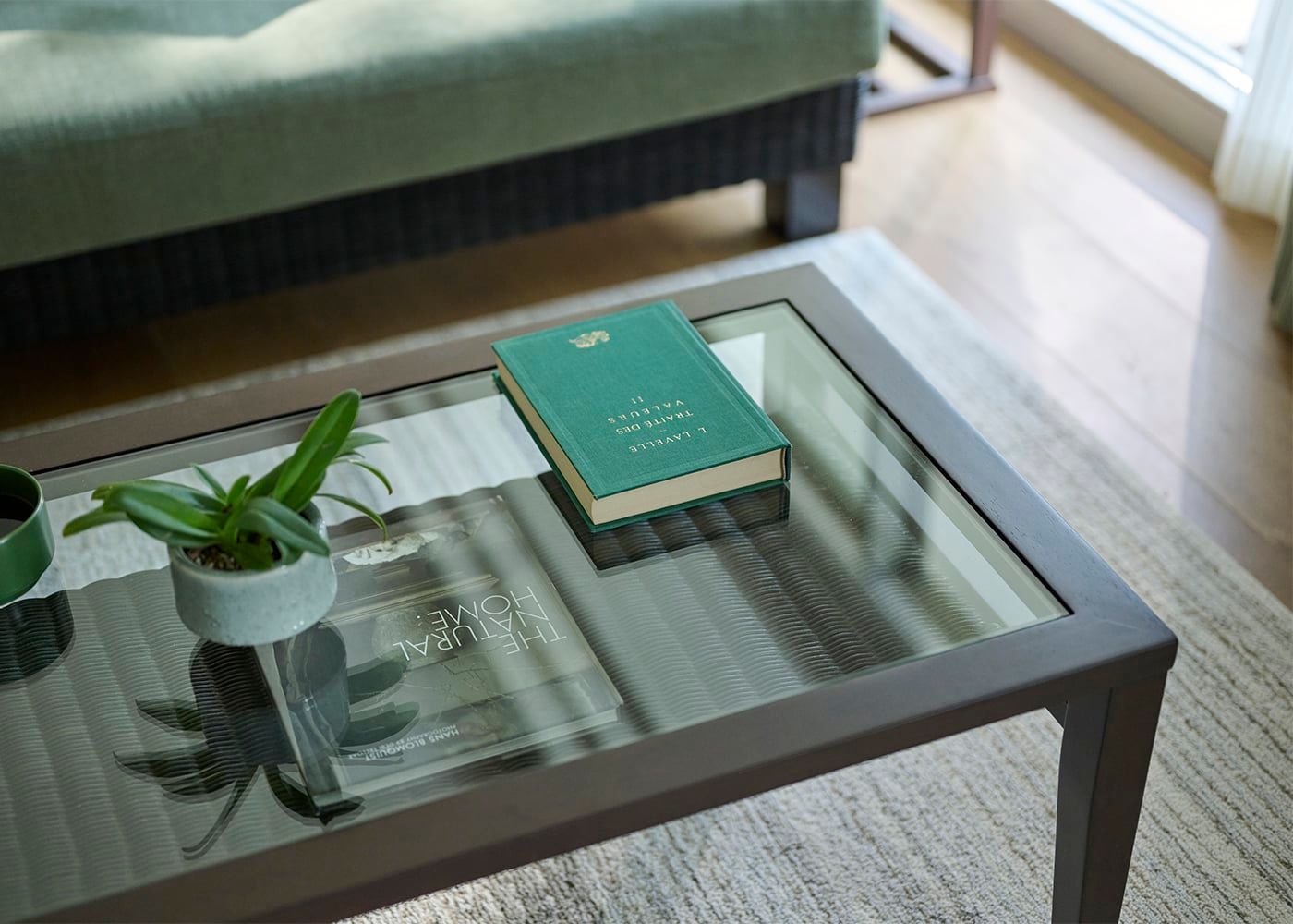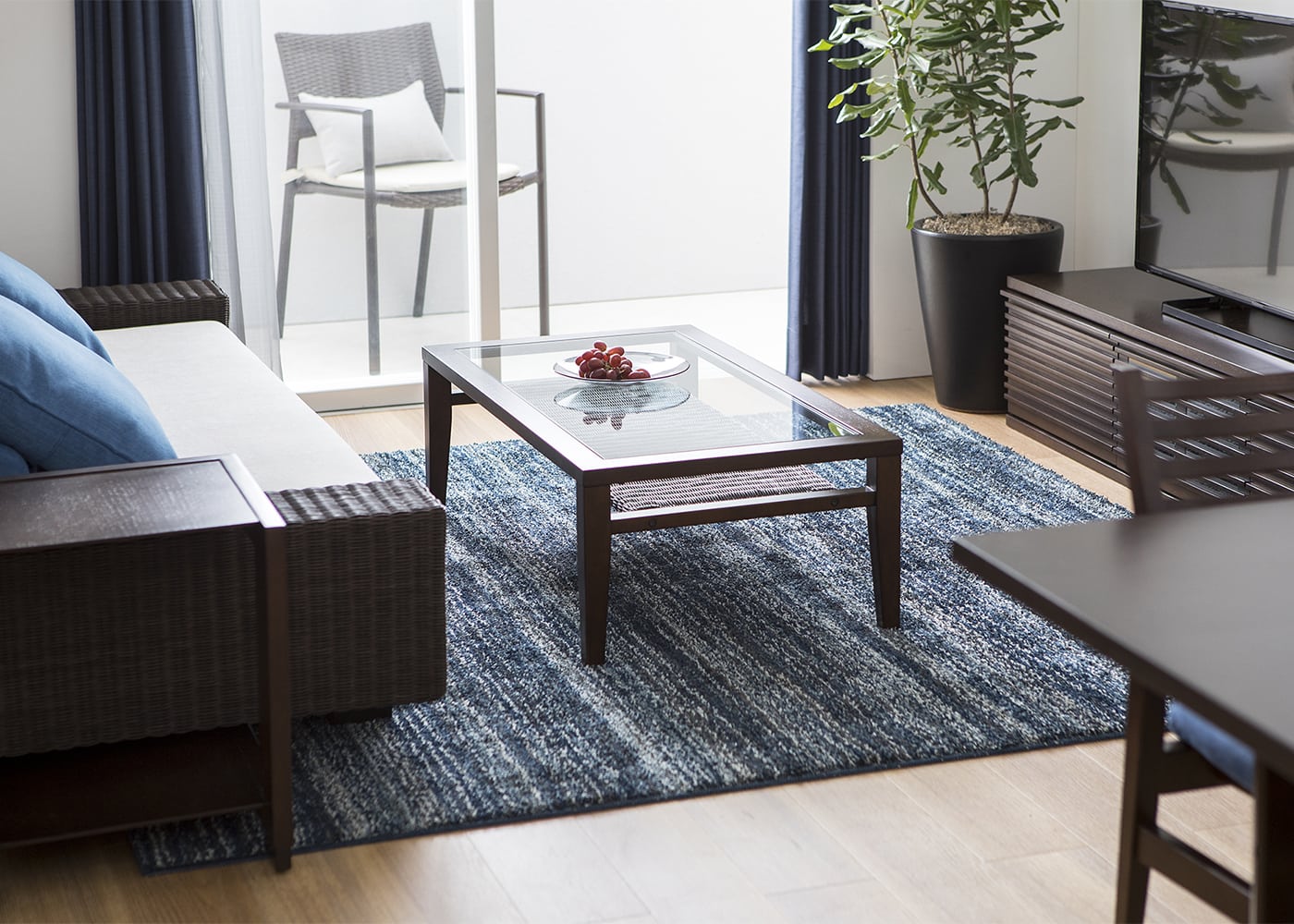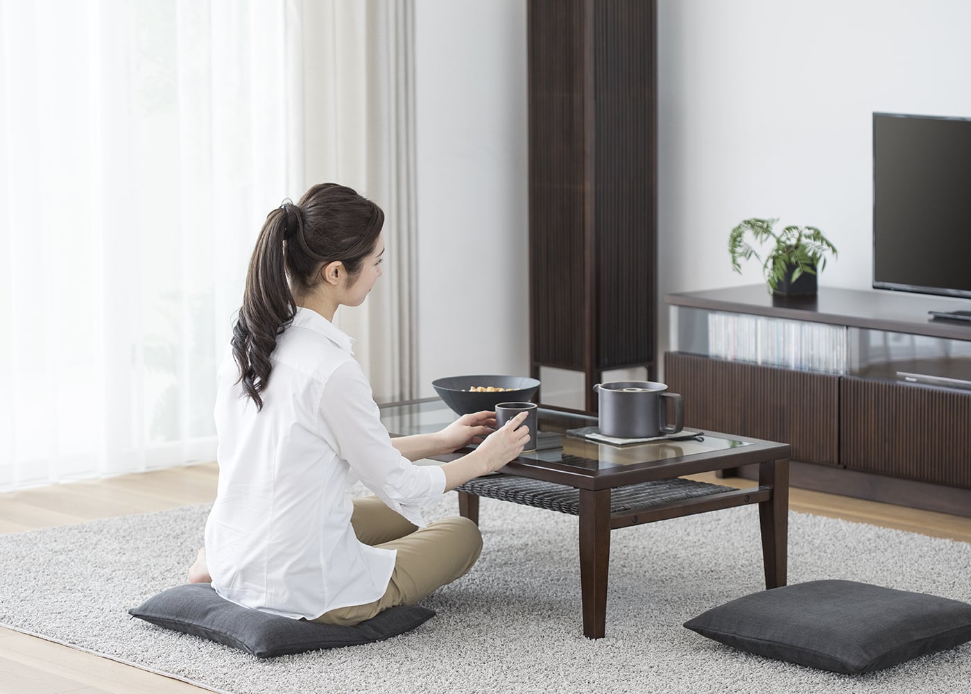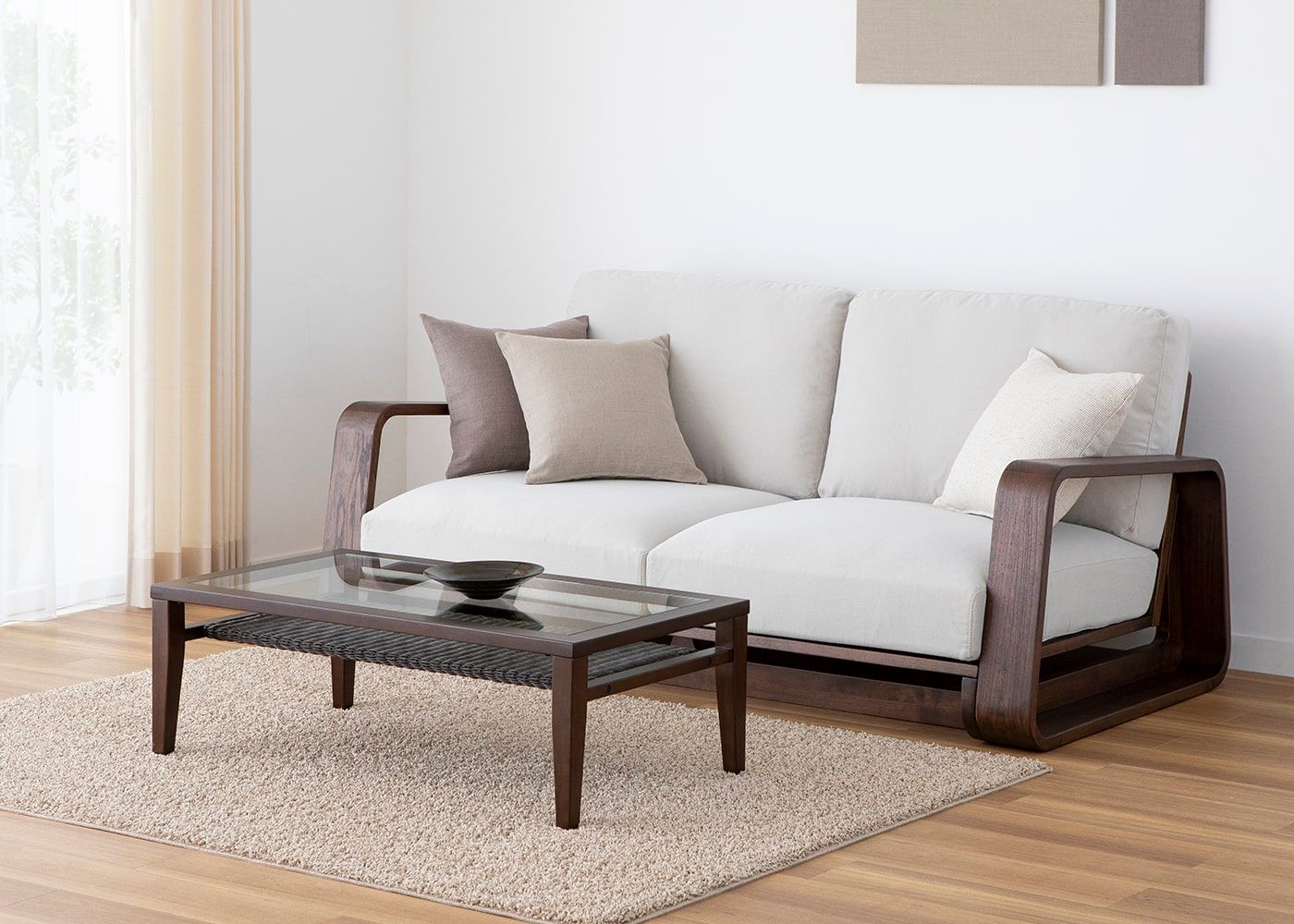 ガラス越しに見える収納部分をショーケースのように使うことで「魅せる収納」が実現するローテーブル。季節や気分に合わせてお気に入りのオブジェなどを入れるだけで、あなただけのディスプレースペースの完成です。