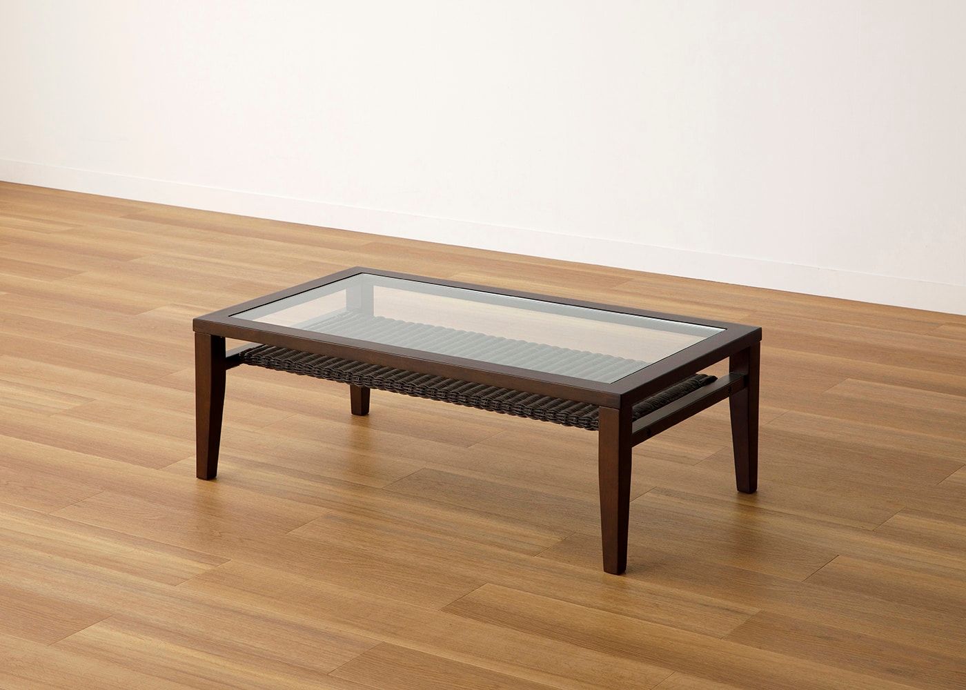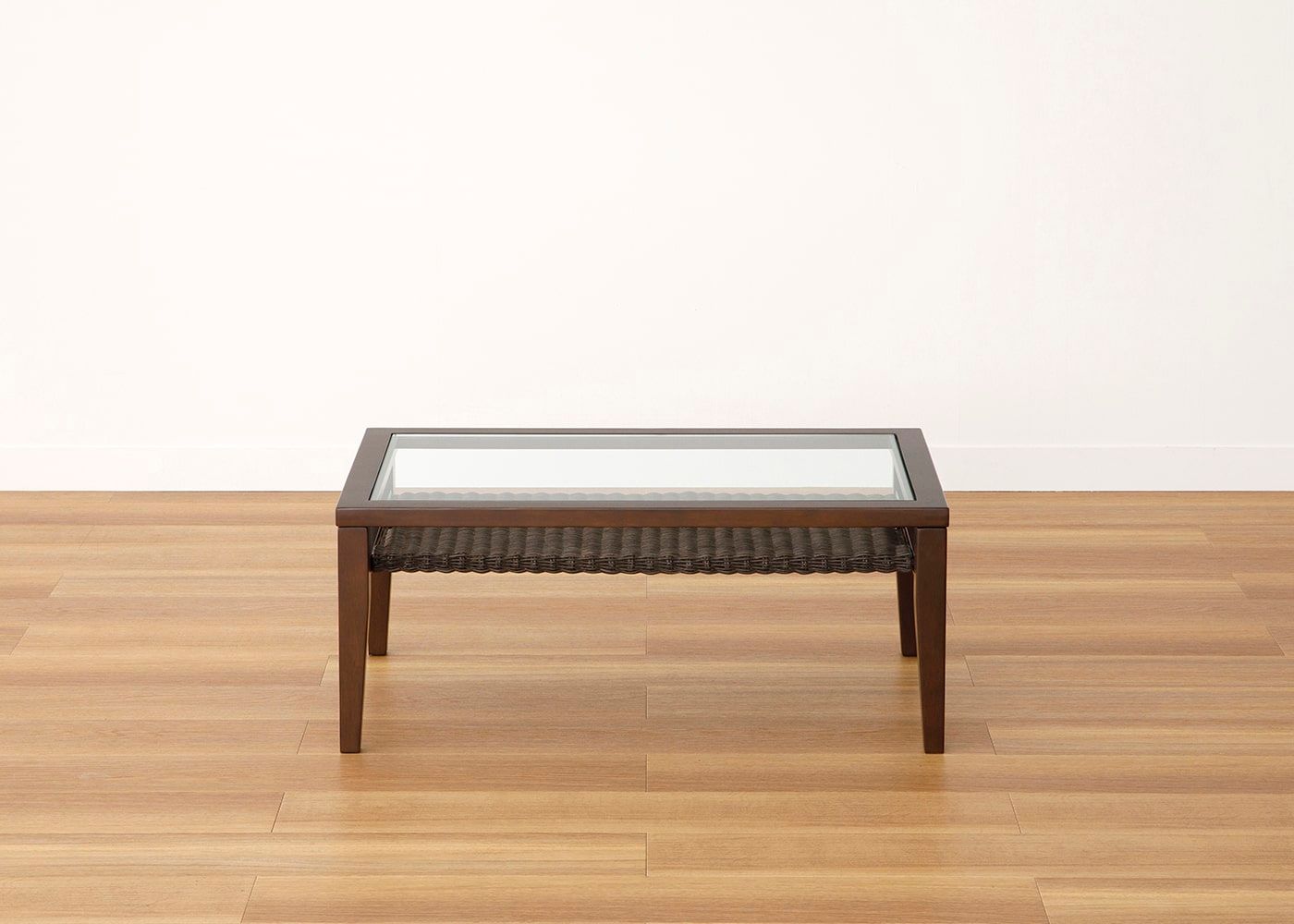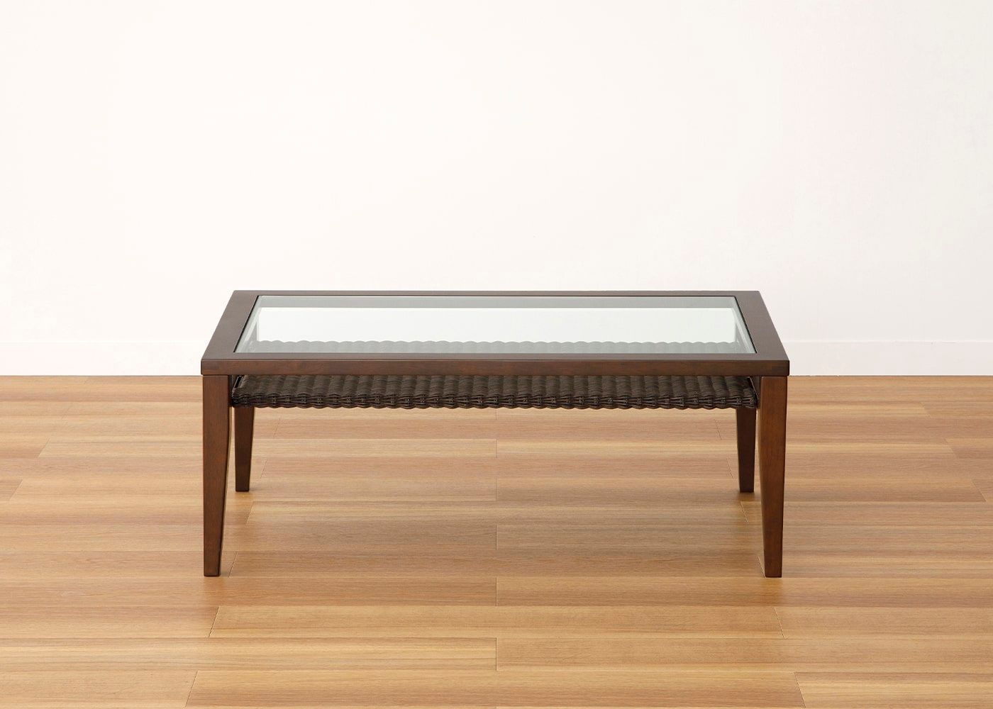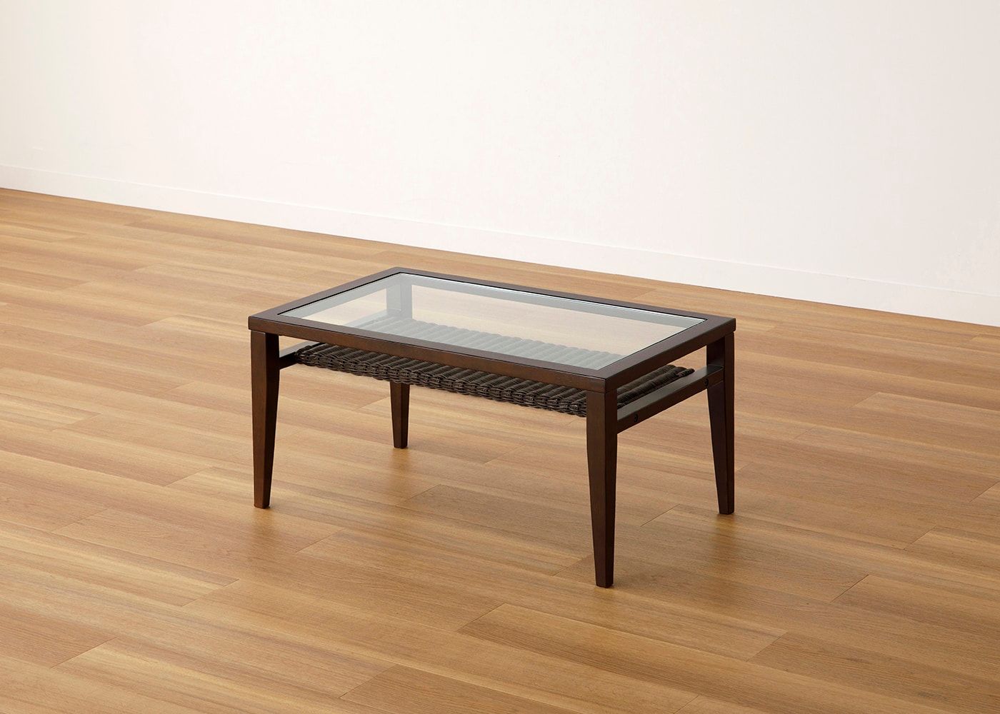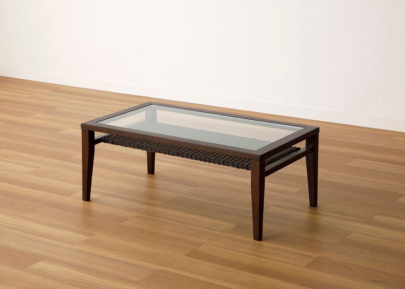 涼しげなガラスと繊細なラタンの組み合わせが、素材の温もりとリゾートのような爽やかさを感じさせるケイ・ローテーブル (ラタン)。