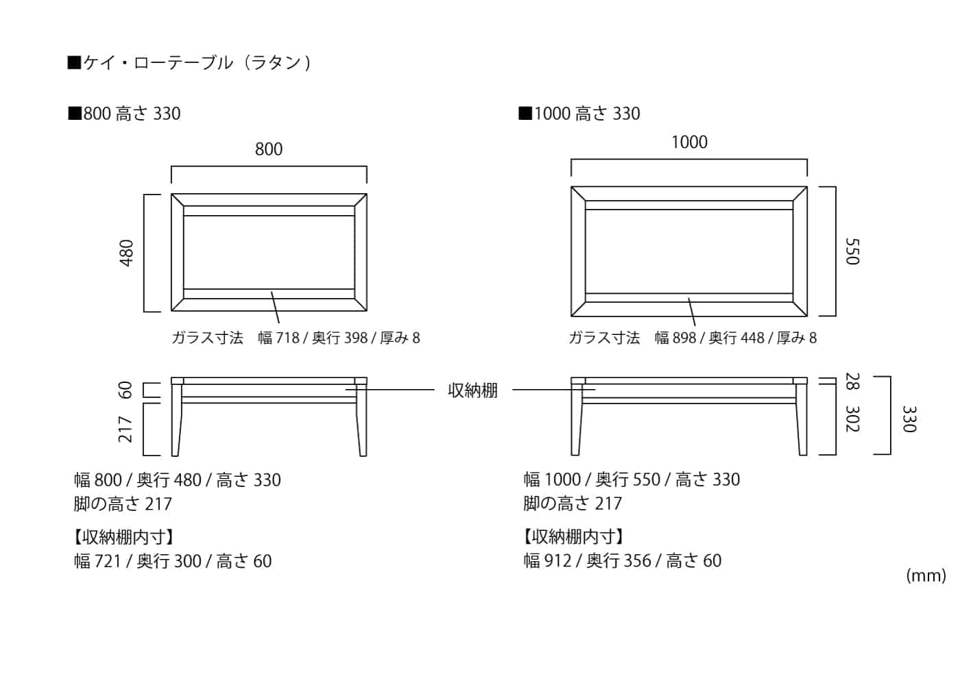 幅800 / 奥行480 / 高さ330 / 脚の高さ217