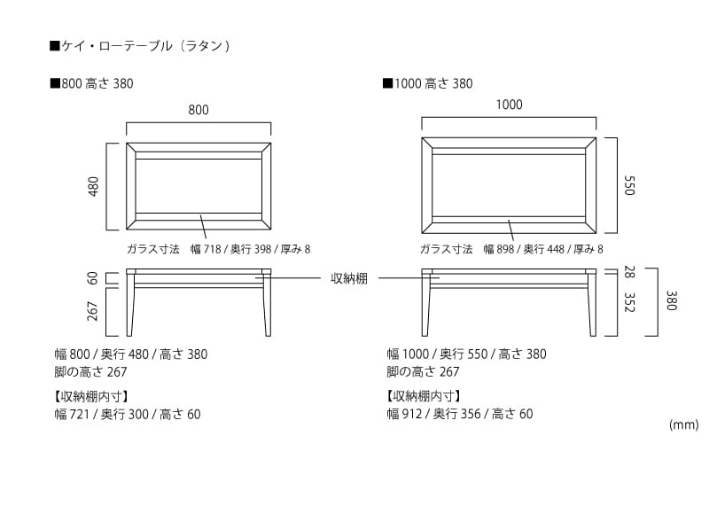 幅800 / 奥行480 / 高さ380 / 脚の高さ267
