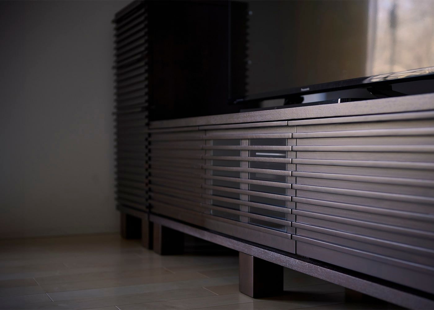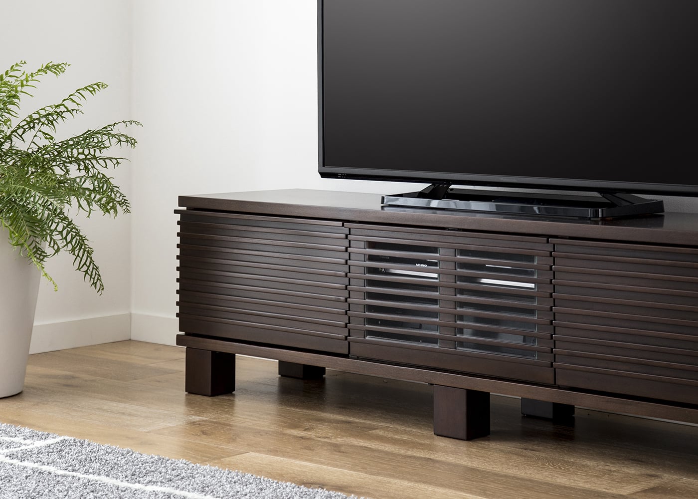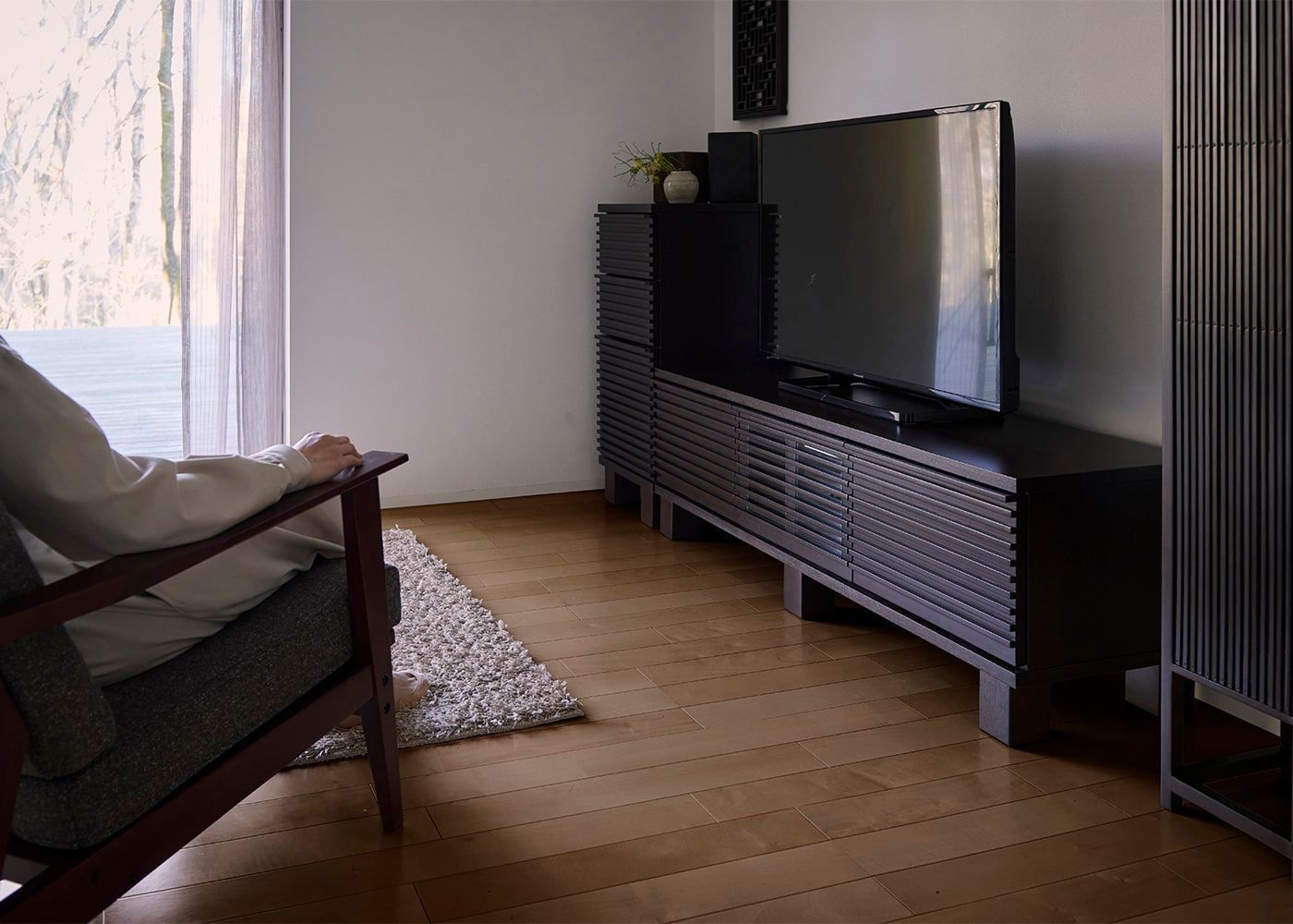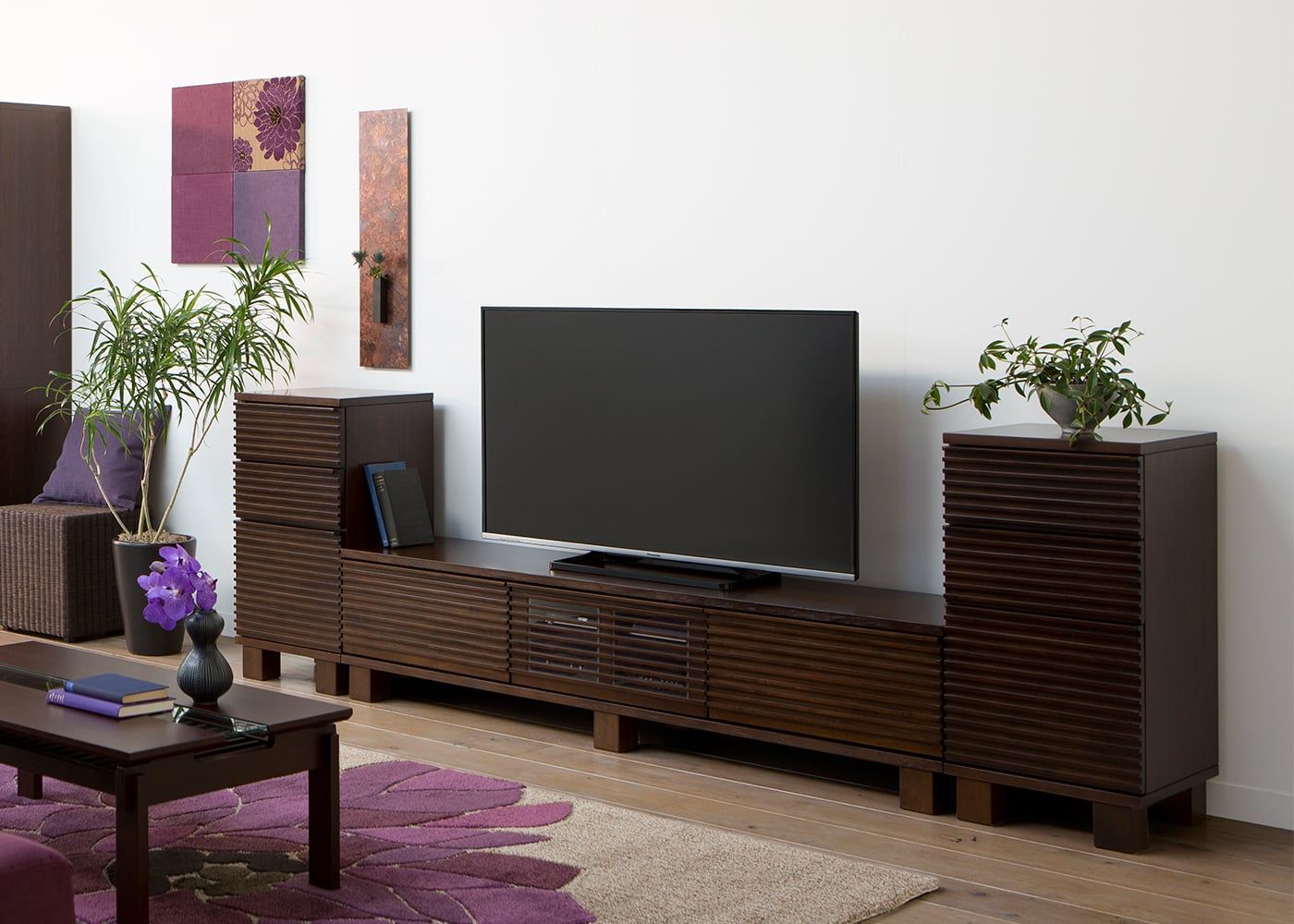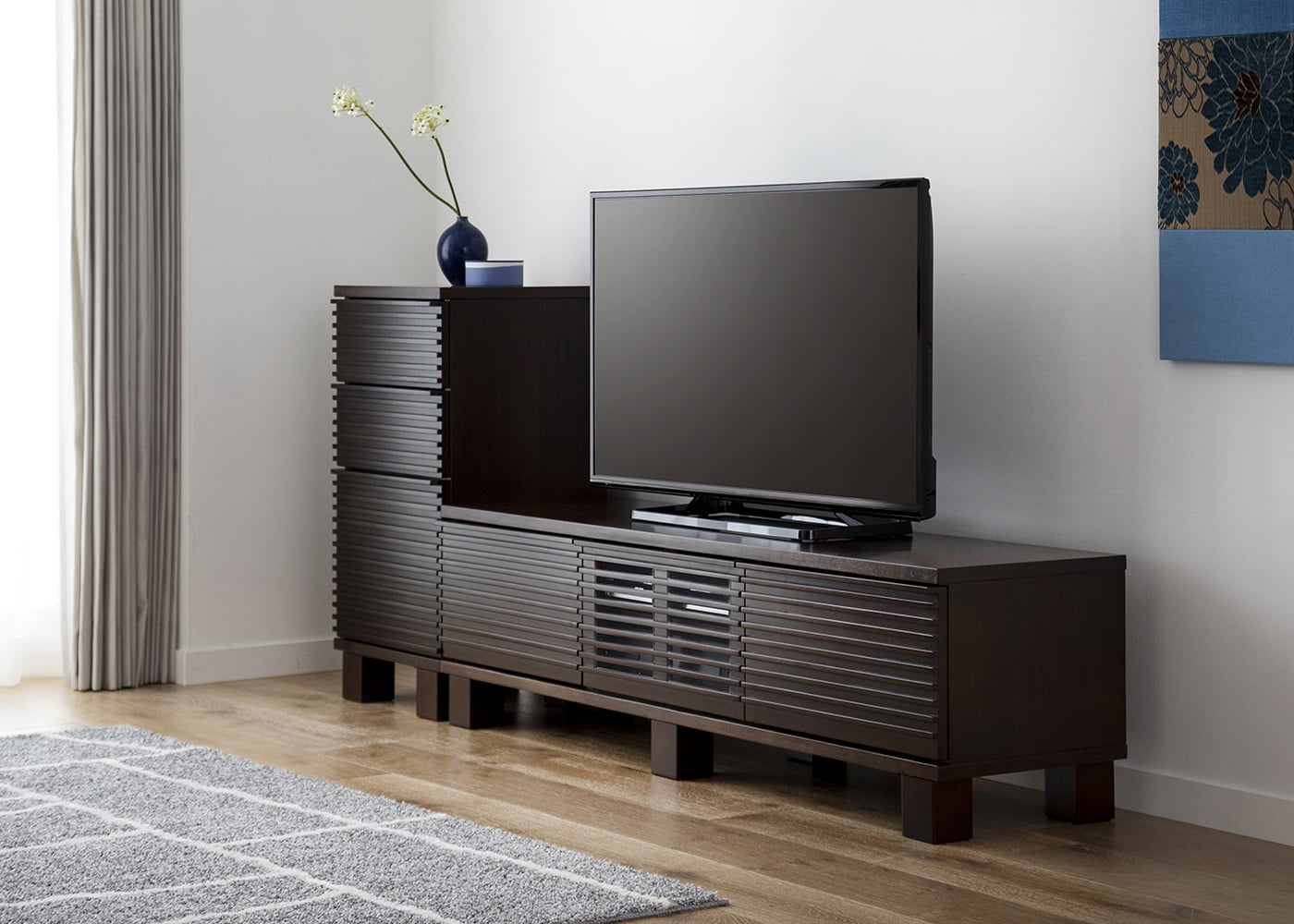 テレビボードにキャビネットを組み合わせたセットです。テレビボードの片側にキャビネットのあるv01セットと両側にあるv02セットをご用意しました。コンパクトサイズながらもテレビボードにさらに収納を増やしたい方にはv01セット、存在感のある整然とした佇まいの大人なリビング空間を演出したい方にはv02セットがおすすめです。(写真は一例です)