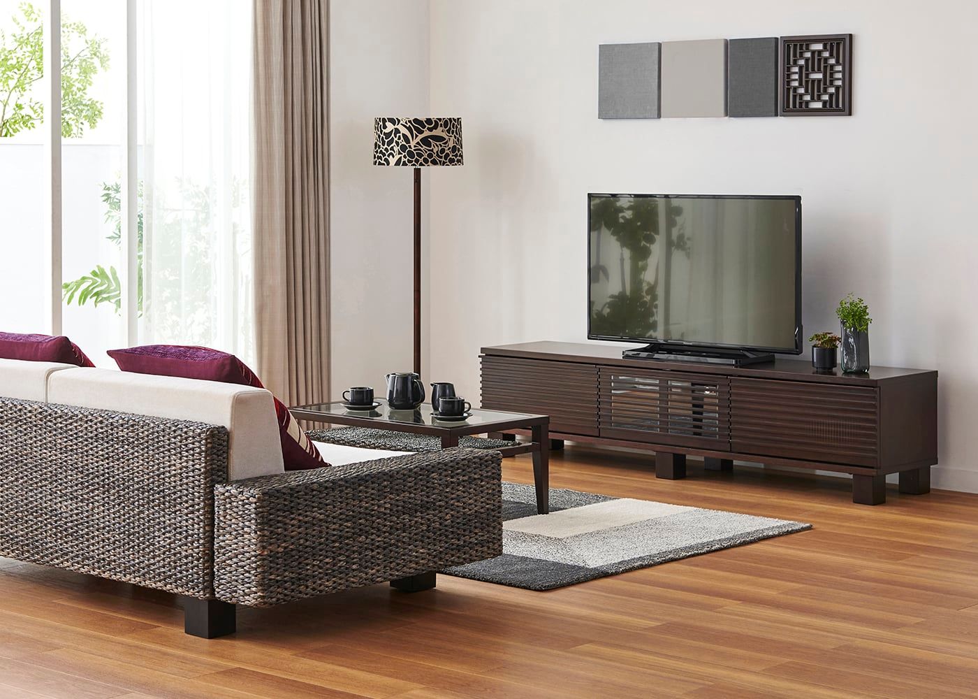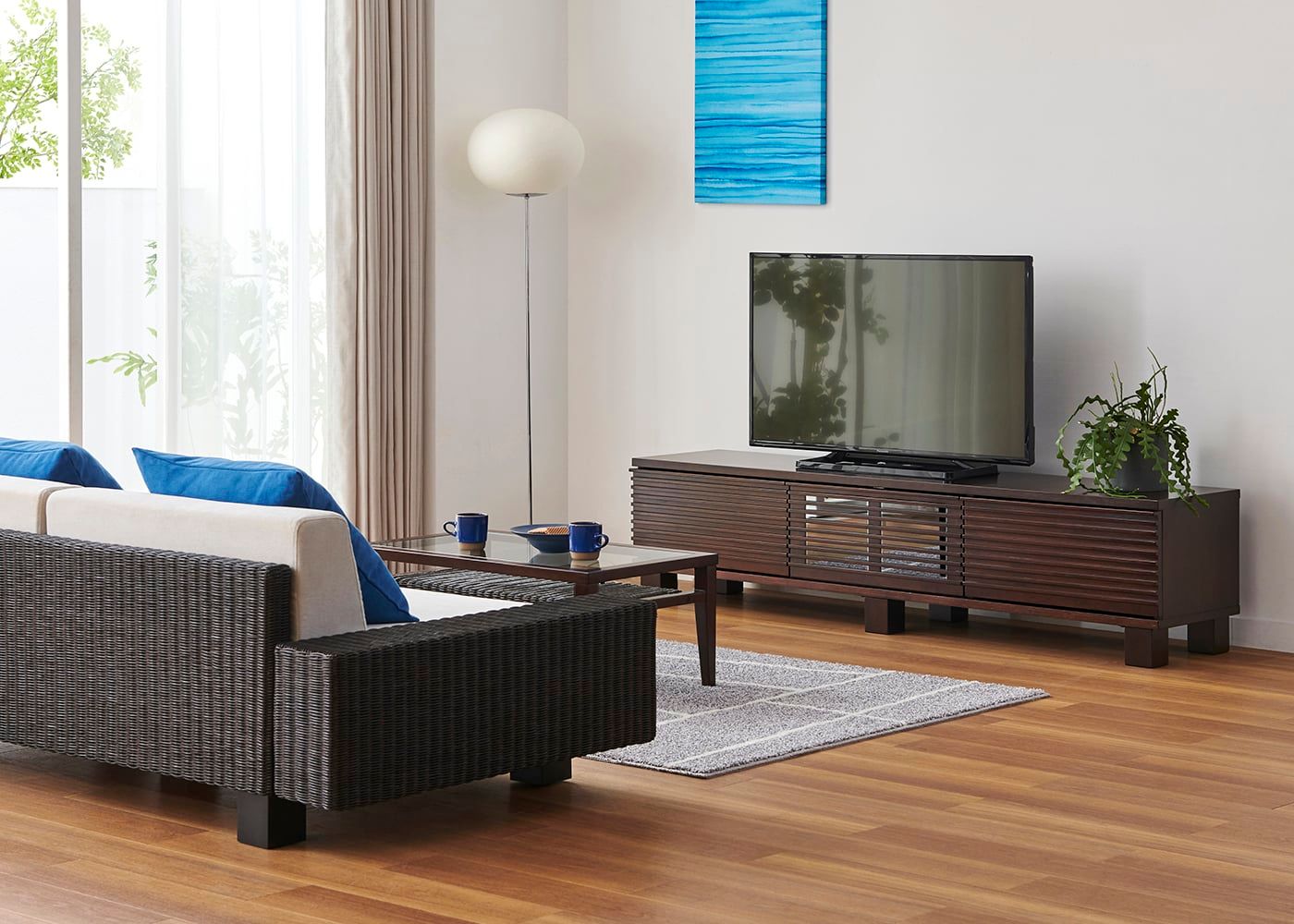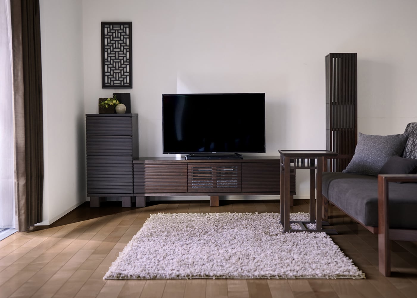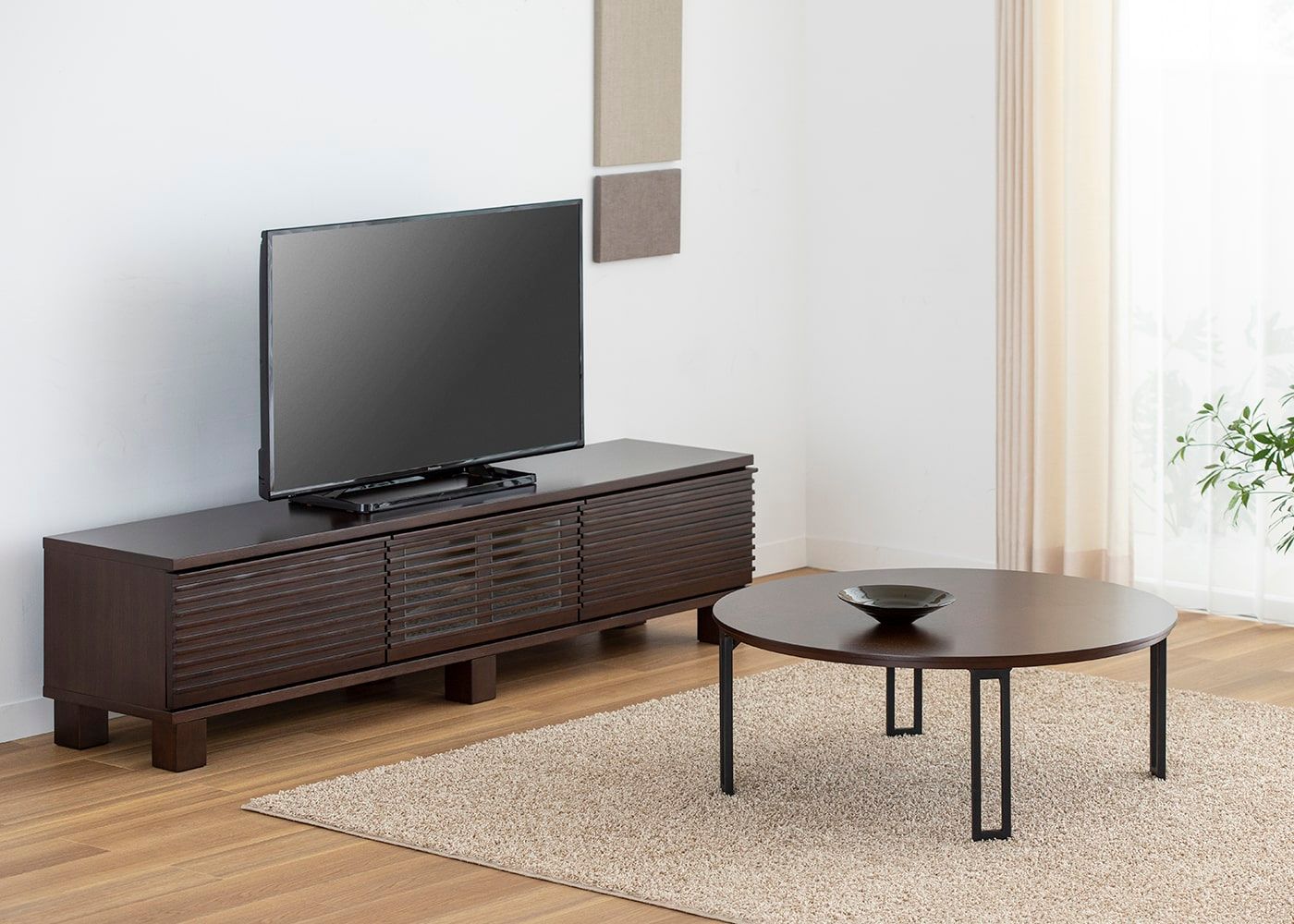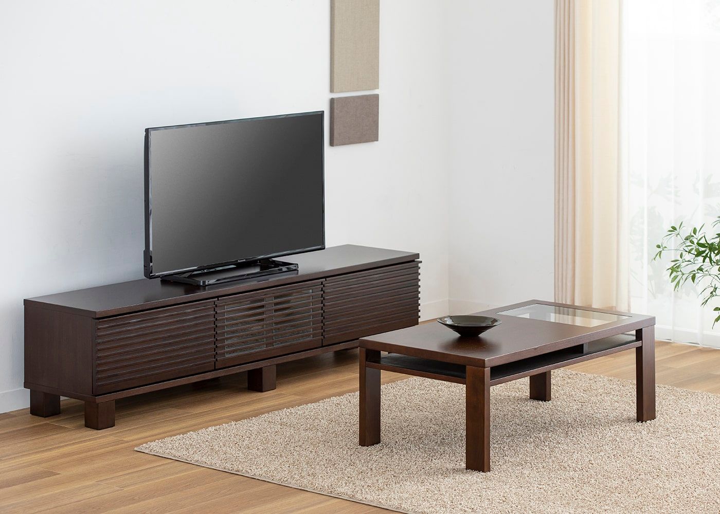 テレビボードにキャビネットを組み合わせたセットです。テレビボードの片側にキャビネットのあるv01セットと両側にあるv02セットをご用意しました。コンパクトサイズながらもテレビボードにさらに収納を増やしたい方にはv01セット、存在感のある整然とした佇まいの大人なリビング空間を演出したい方にはv02セットがおすすめです。(写真は一例です)