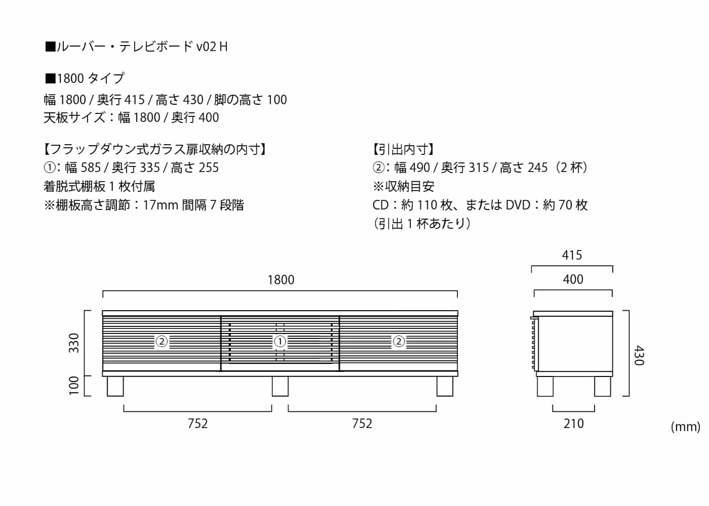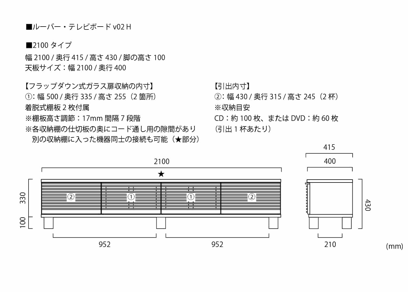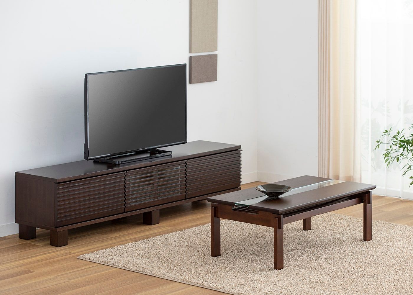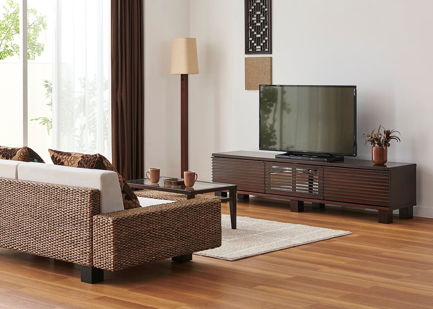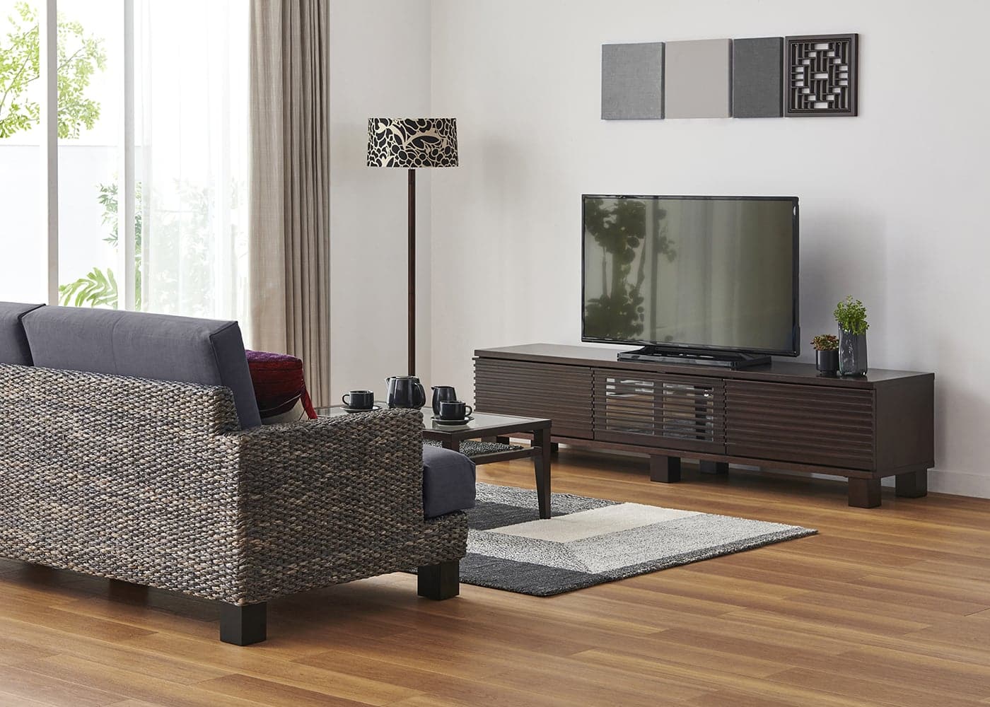 テレビボードにキャビネットを組み合わせたセットです。テレビボードの片側にキャビネットのあるv01セットと両側にあるv02セットをご用意しました。コンパクトサイズながらもテレビボードにさらに収納を増やしたい方にはv01セット、存在感のある整然とした佇まいの大人なリビング空間を演出したい方にはv02セットがおすすめです。(写真は一例です)