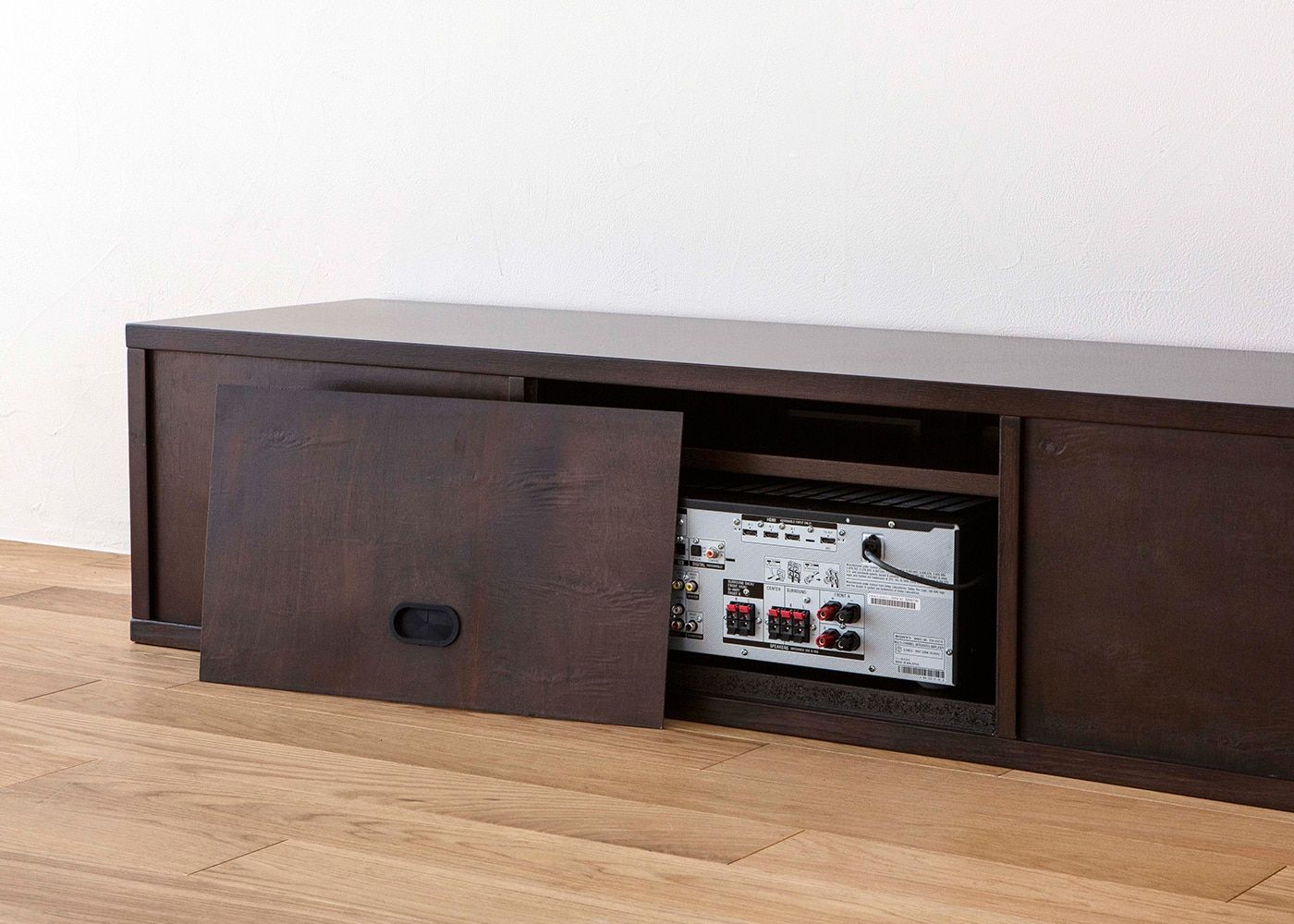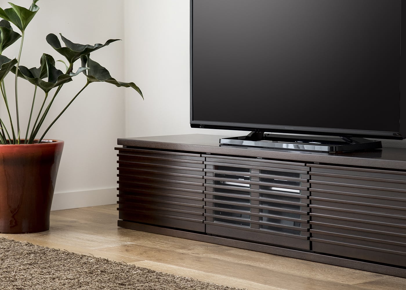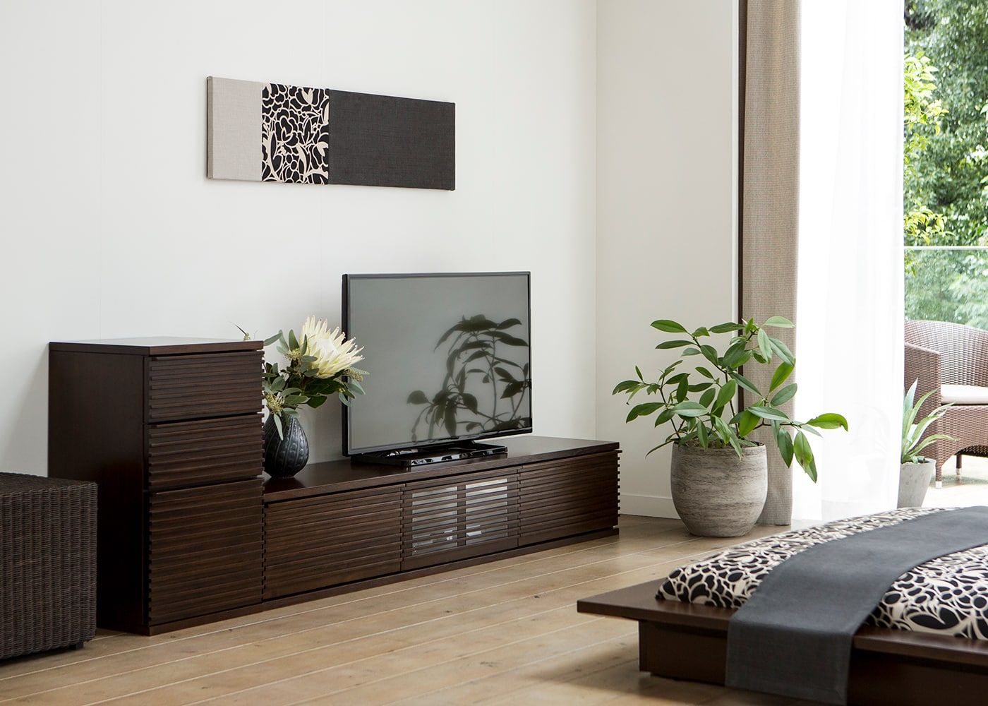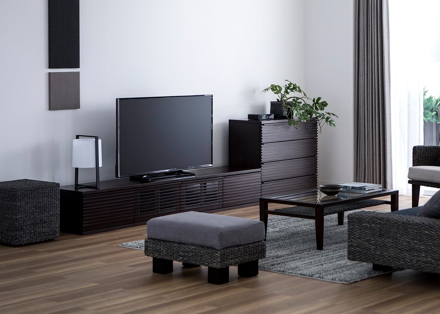 テレビボードにキャビネットを組み合わせたセットです。テレビボードの片側にキャビネットのあるv01セットと両側にあるv02セットをご用意しました。コンパクトサイズながらもテレビボードにさらに収納を増やしたい方にはv01セット、存在感のある整然とした佇まいの大人なリビング空間を演出したい方にはv02セットがおすすめです。(写真は一例です)