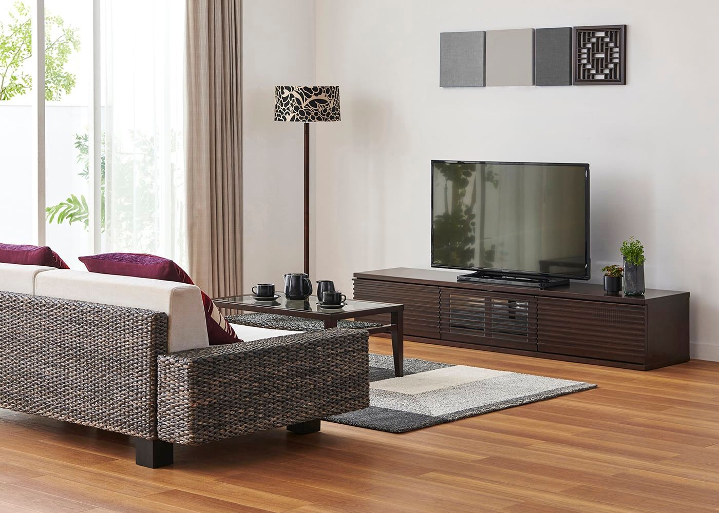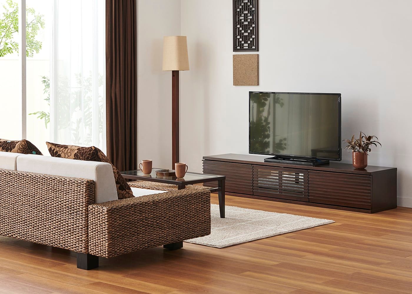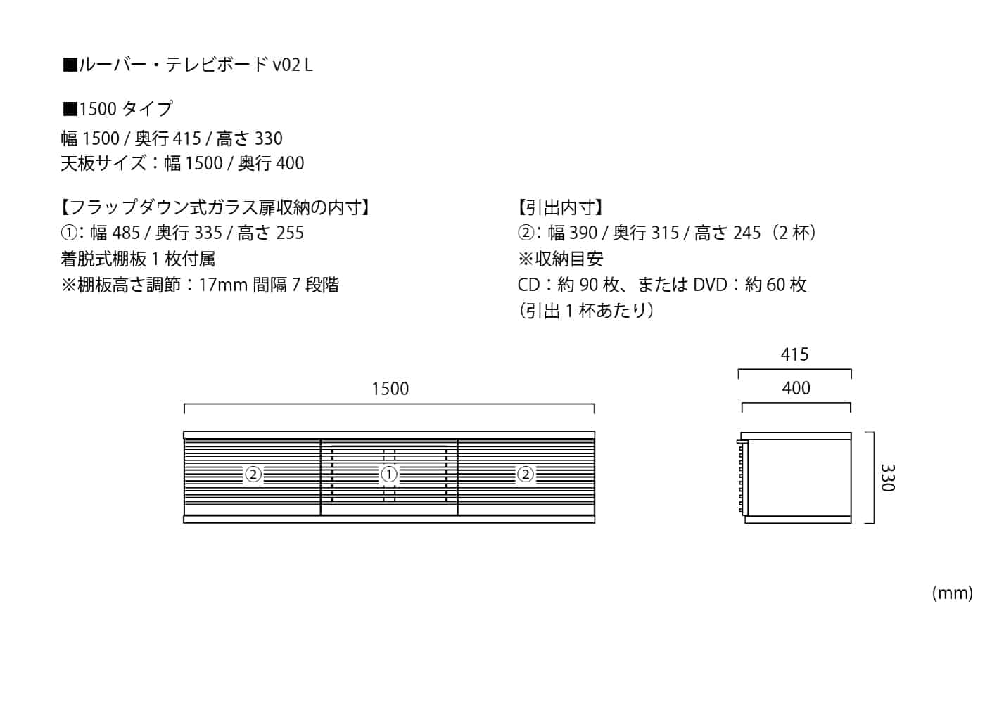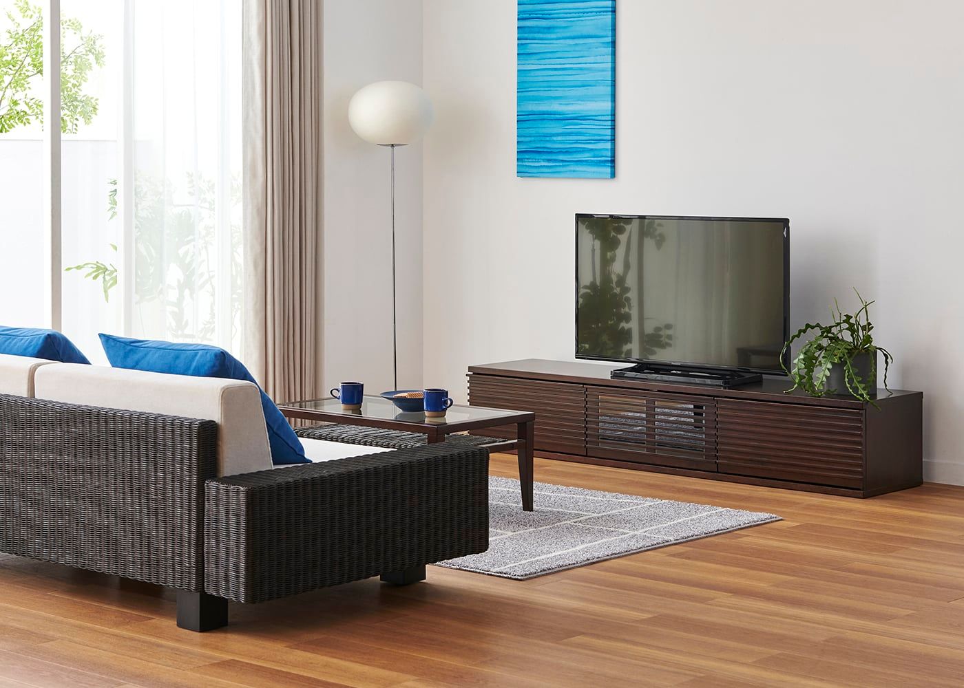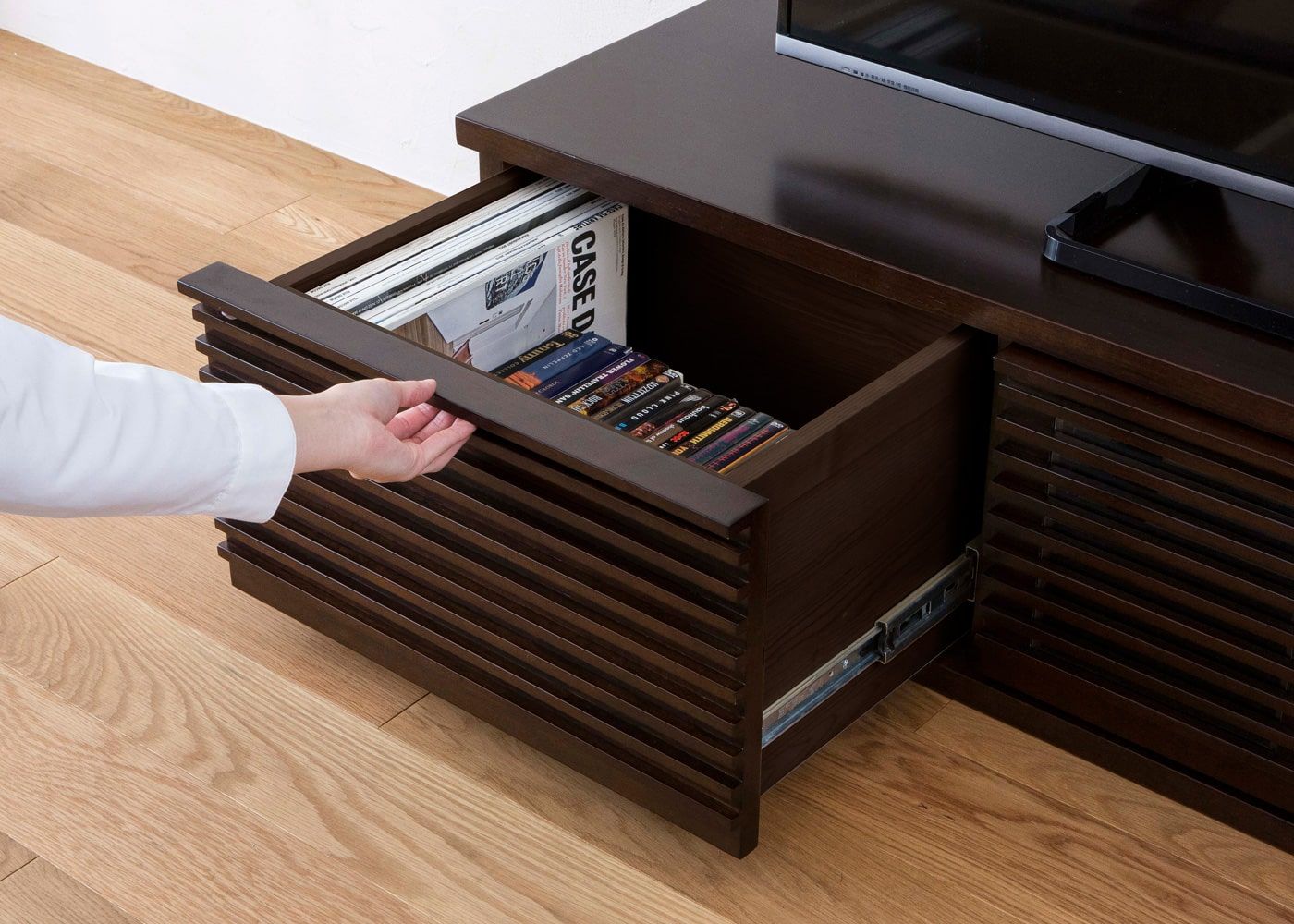テレビボードにキャビネットを組み合わせたセットです。テレビボードの片側にキャビネットのあるv01セットと両側にあるv02セットをご用意しました。コンパクトサイズながらもテレビボードにさらに収納を増やしたい方にはv01セット、存在感のある整然とした佇まいの大人なリビング空間を演出したい方にはv02セットがおすすめです。(写真は一例です)