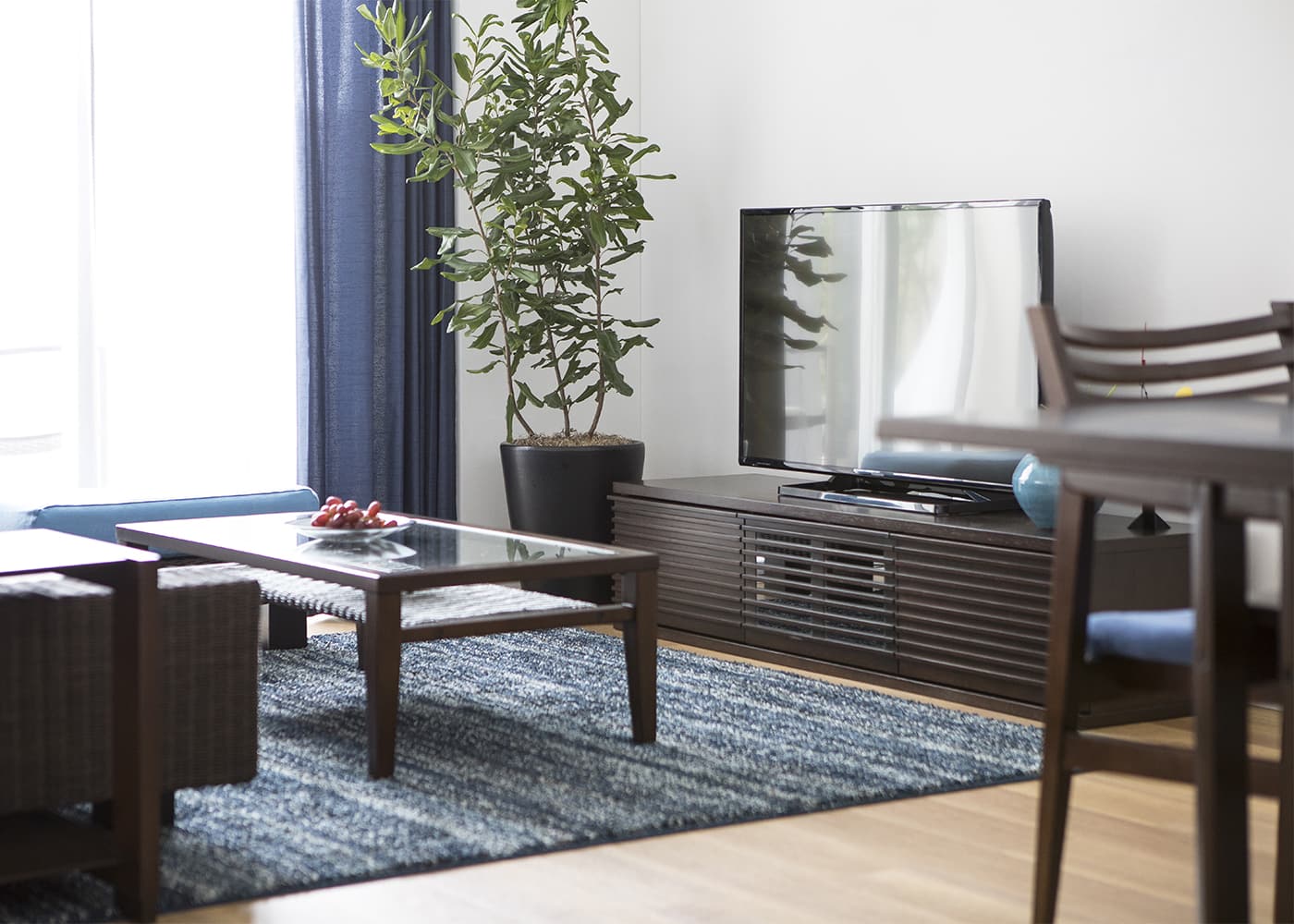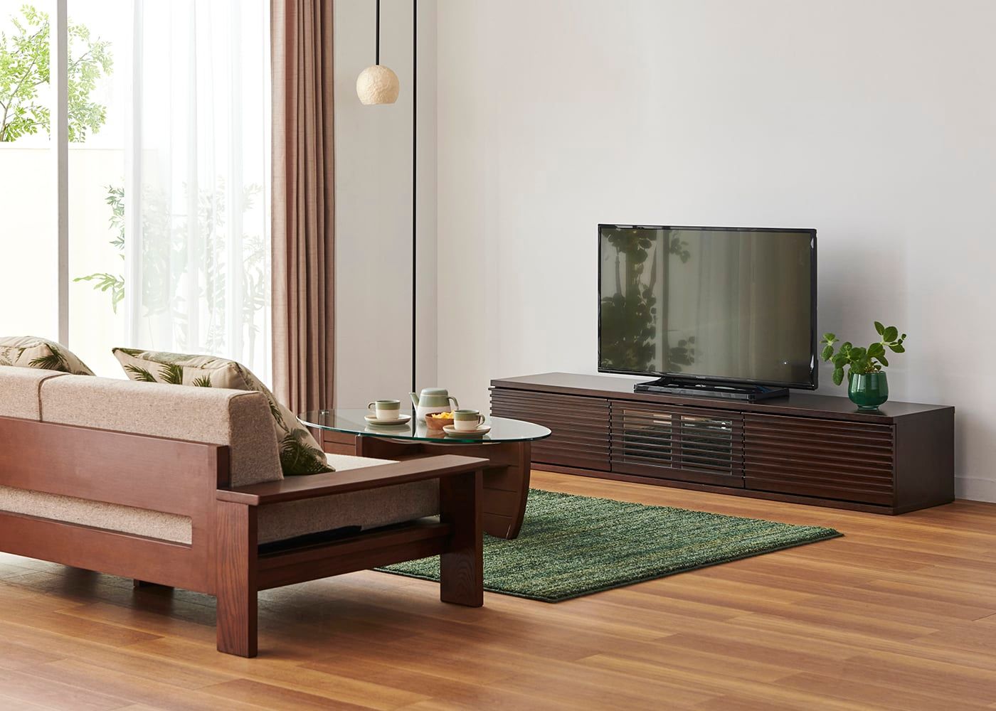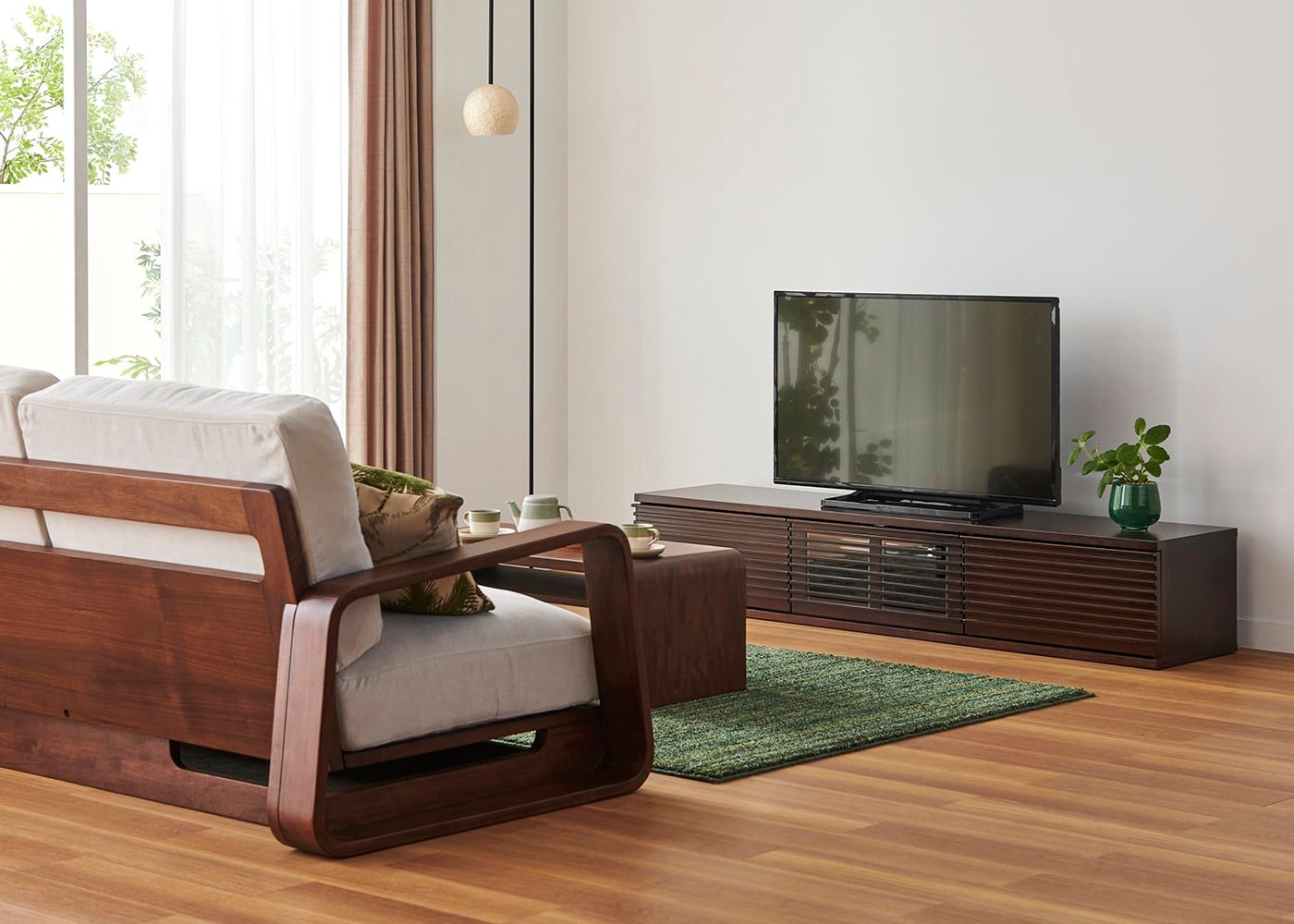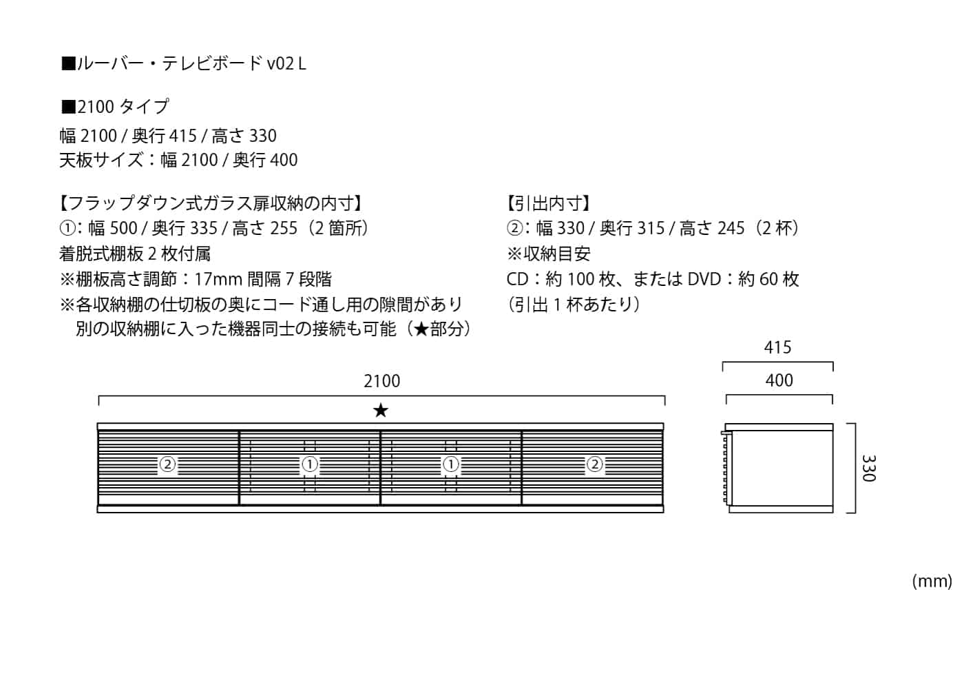 テレビボードにキャビネットを組み合わせたセットです。テレビボードの片側にキャビネットのあるv01セットと両側にあるv02セットをご用意しました。コンパクトサイズながらもテレビボードにさらに収納を増やしたい方にはv01セット、存在感のある整然とした佇まいの大人なリビング空間を演出したい方にはv02セットがおすすめです。(写真は一例です)