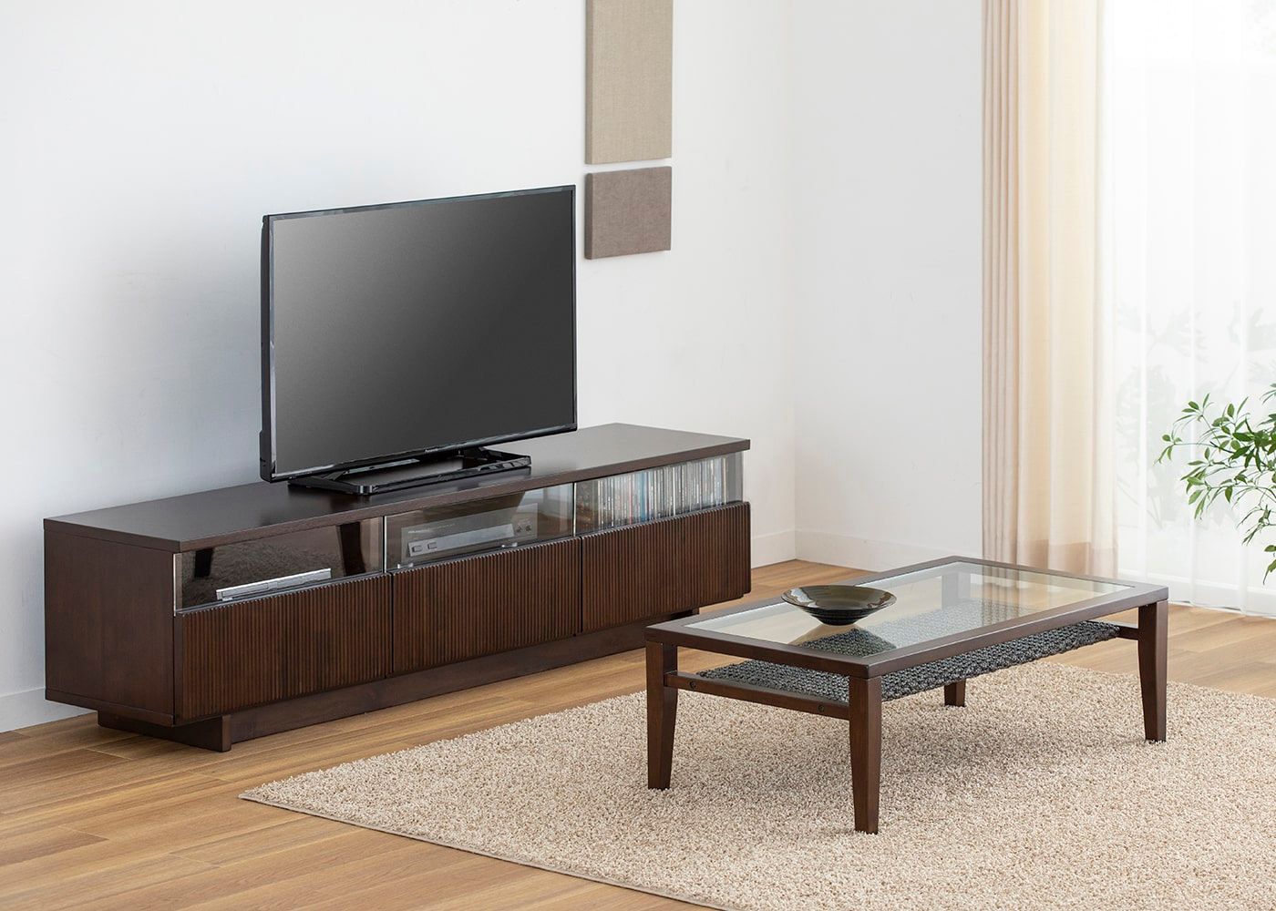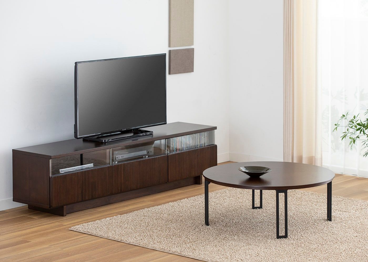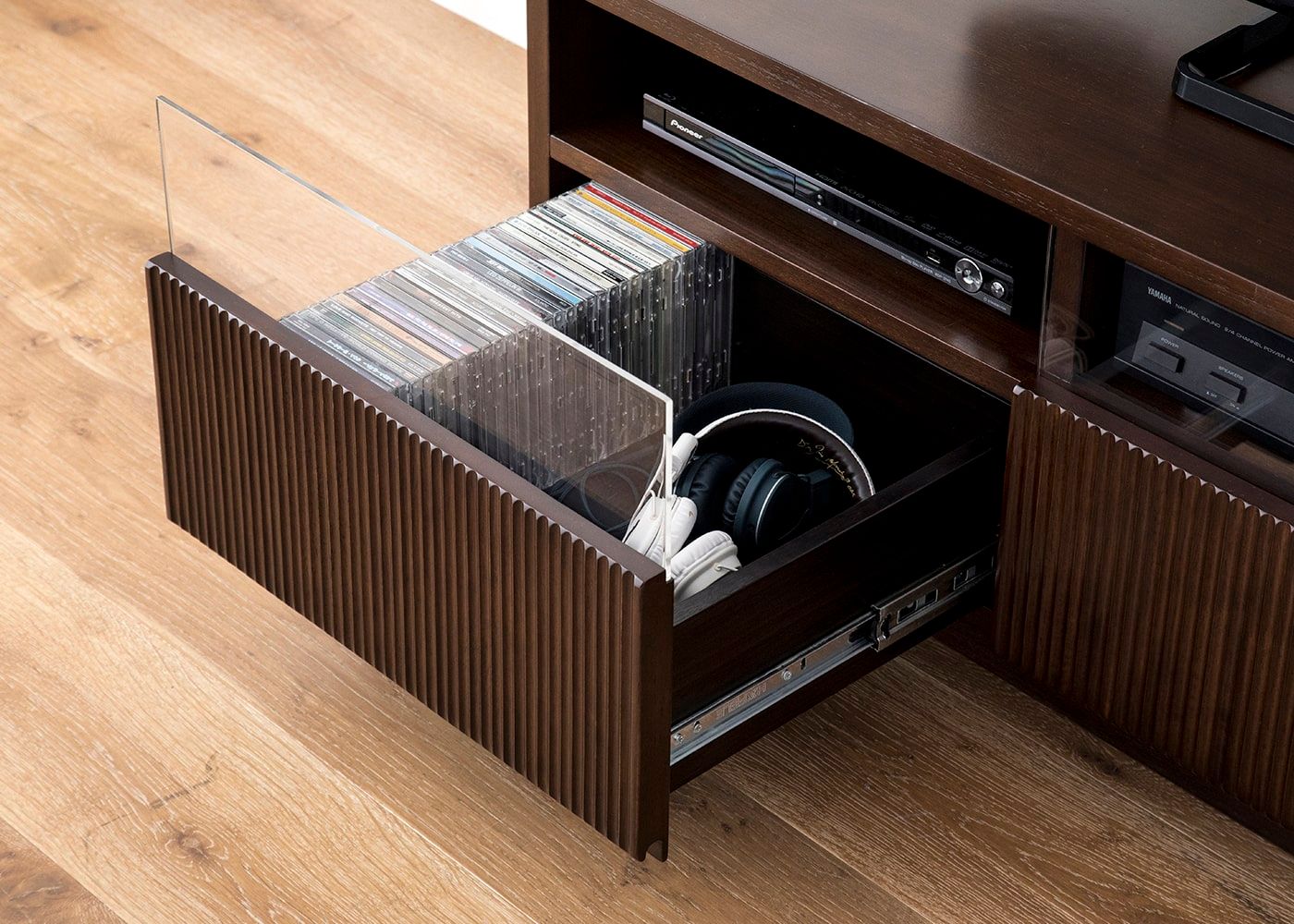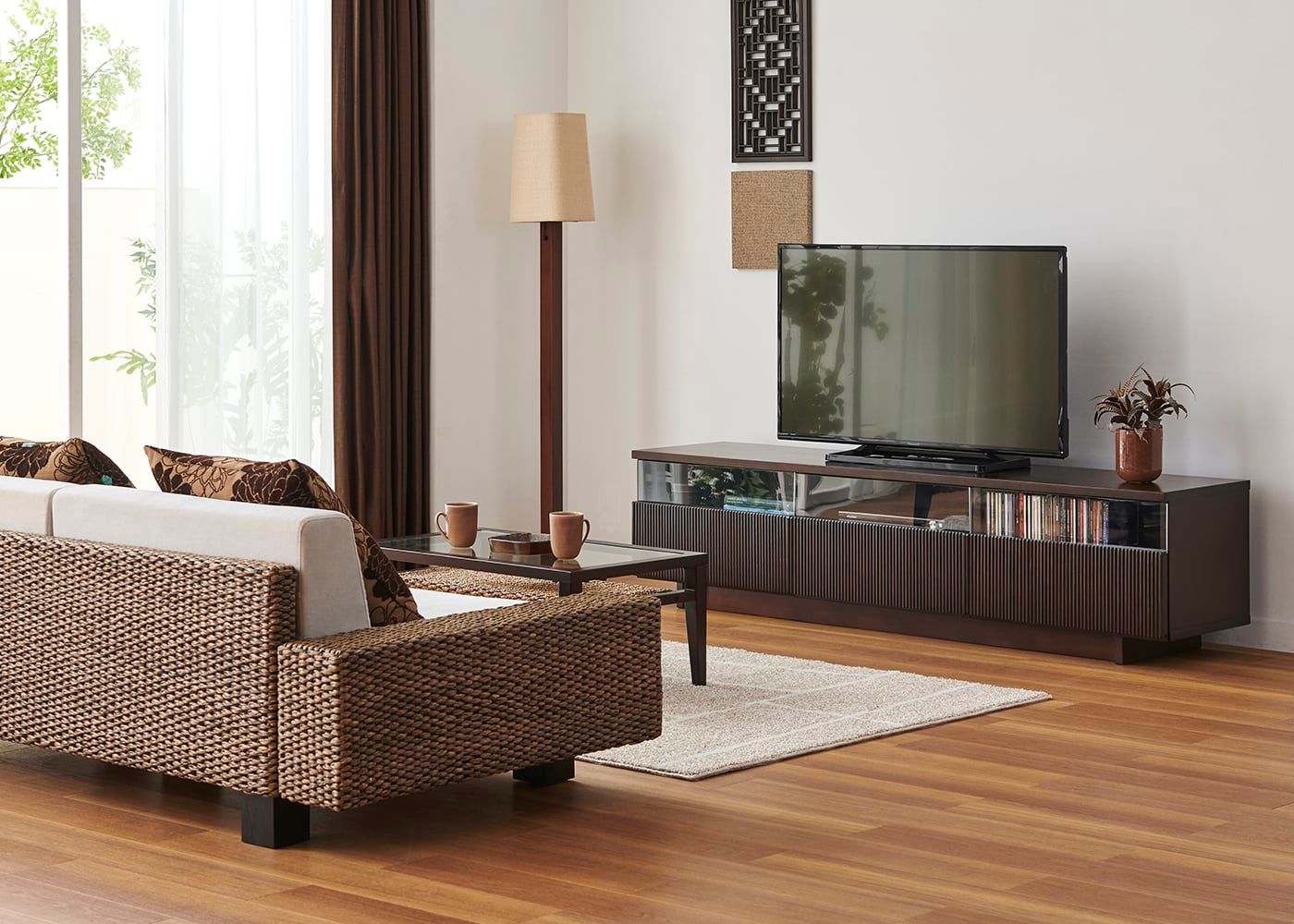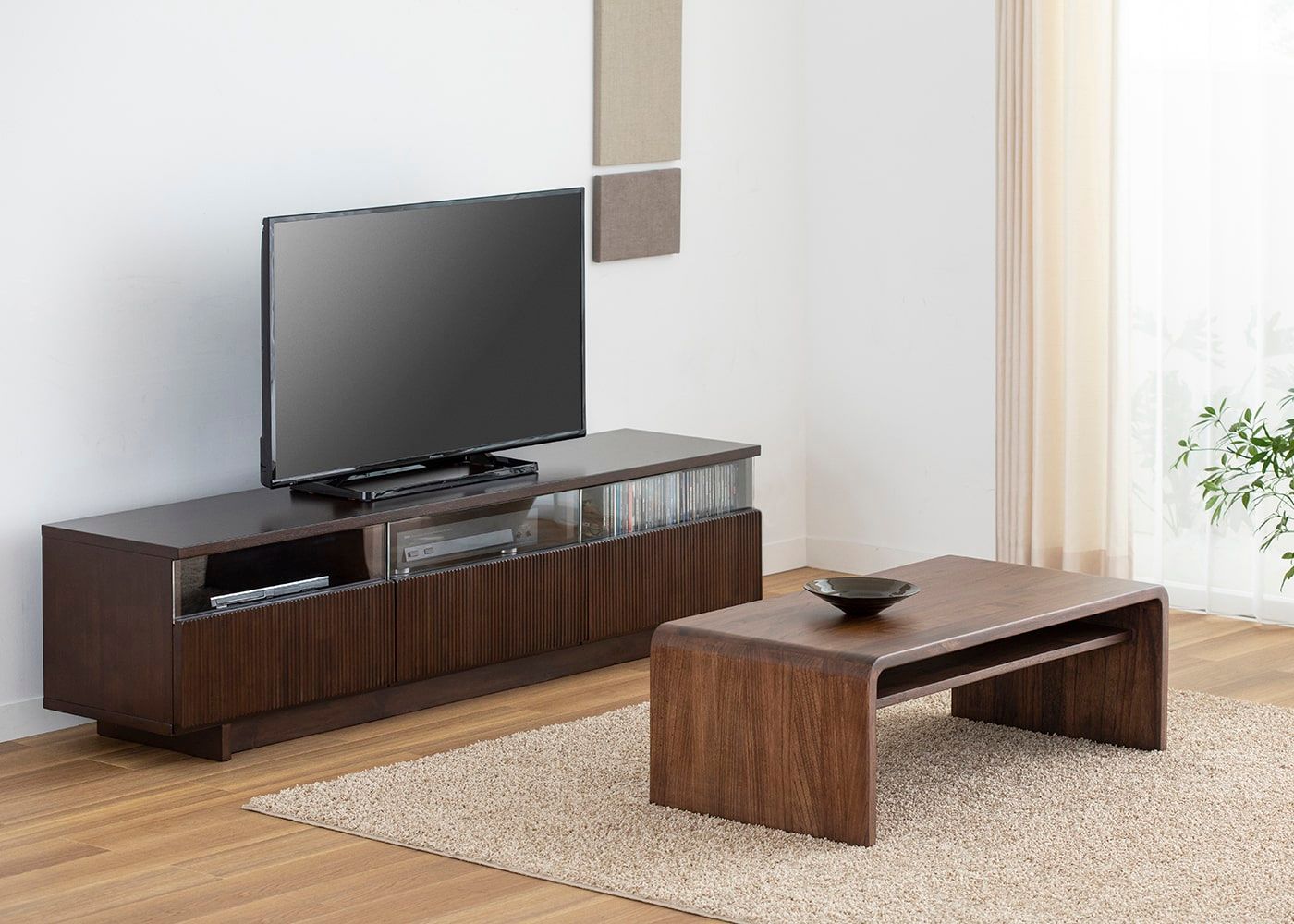 テレビボードにキャビネットを組み合わせたセットです。テレビボードの片側にキャビネットのあるv01セットと両側にあるv02セットをご用意しました。コンパクトサイズながらもテレビボードにさらに収納を増やしたい方にはv01セット、存在感のある整然とした佇まいの大人なリビング空間を演出したい方にはv02セットがおすすめです。(写真は一例です)