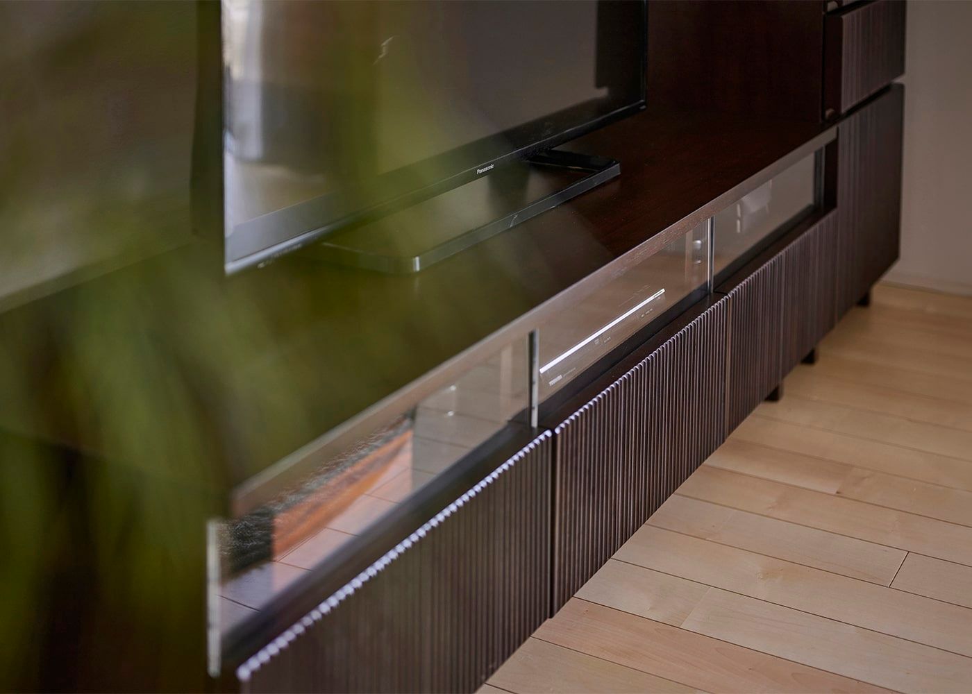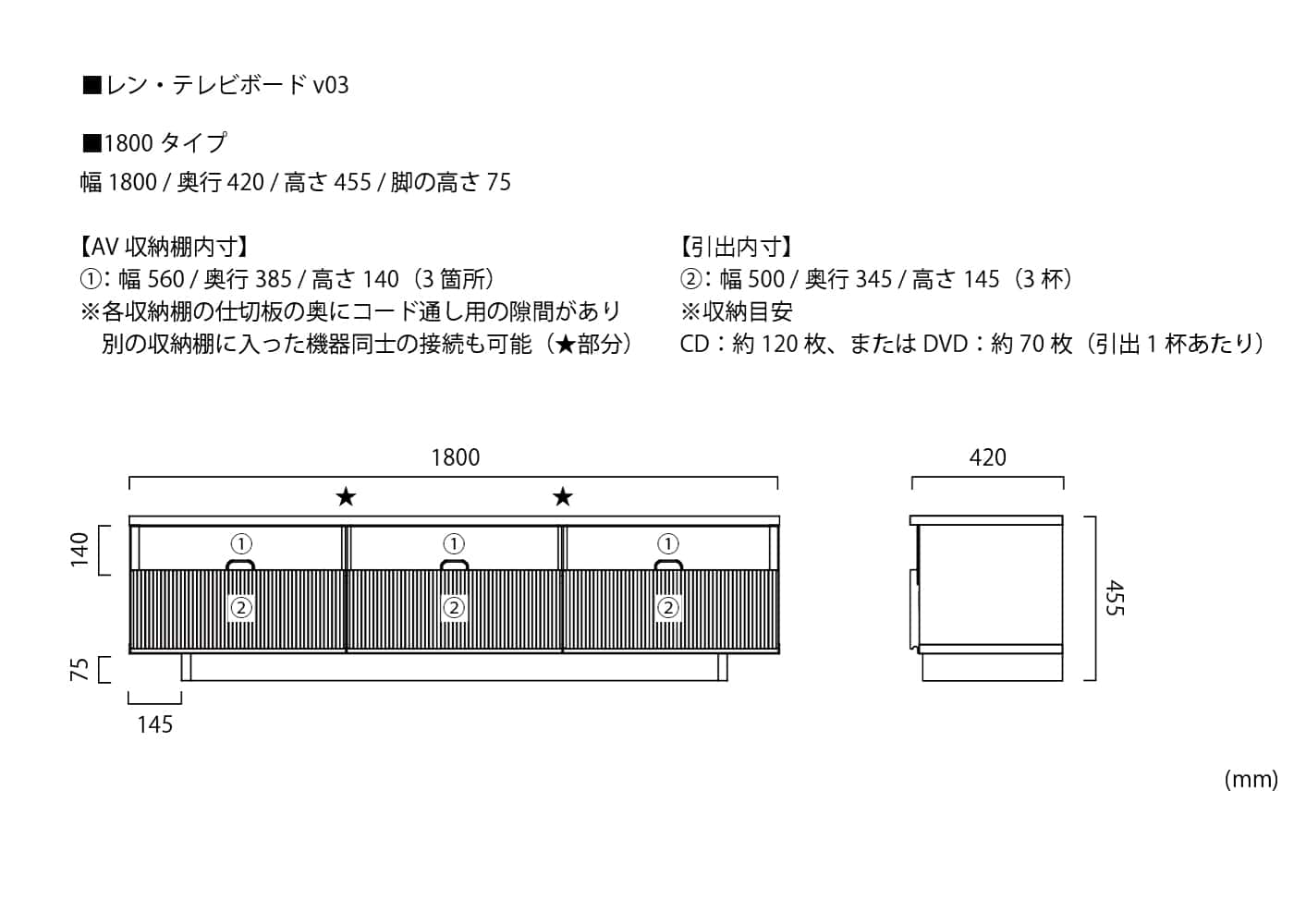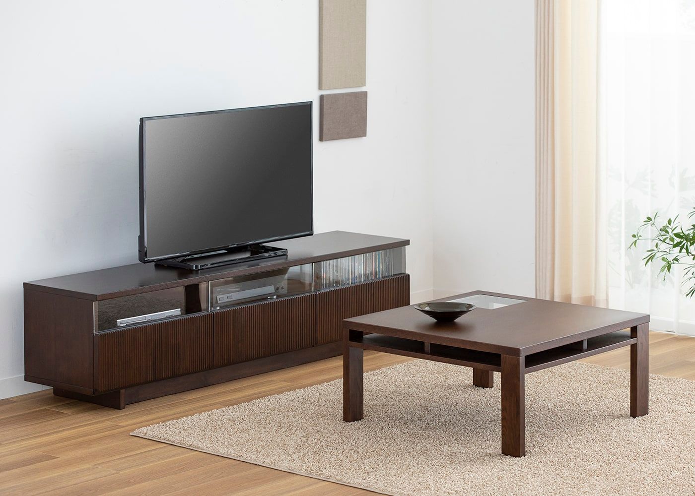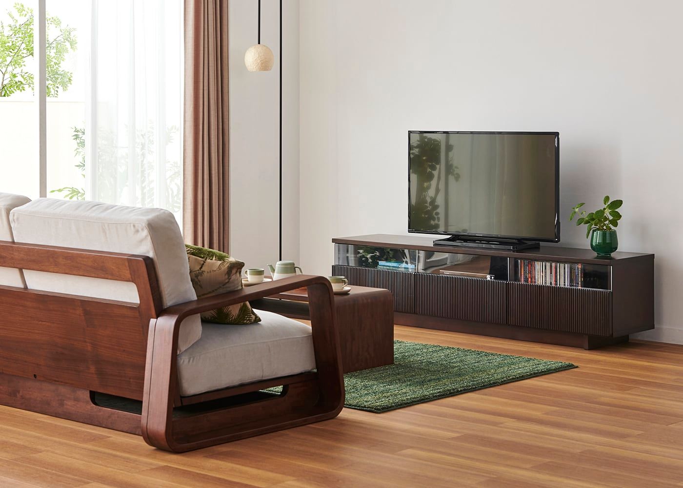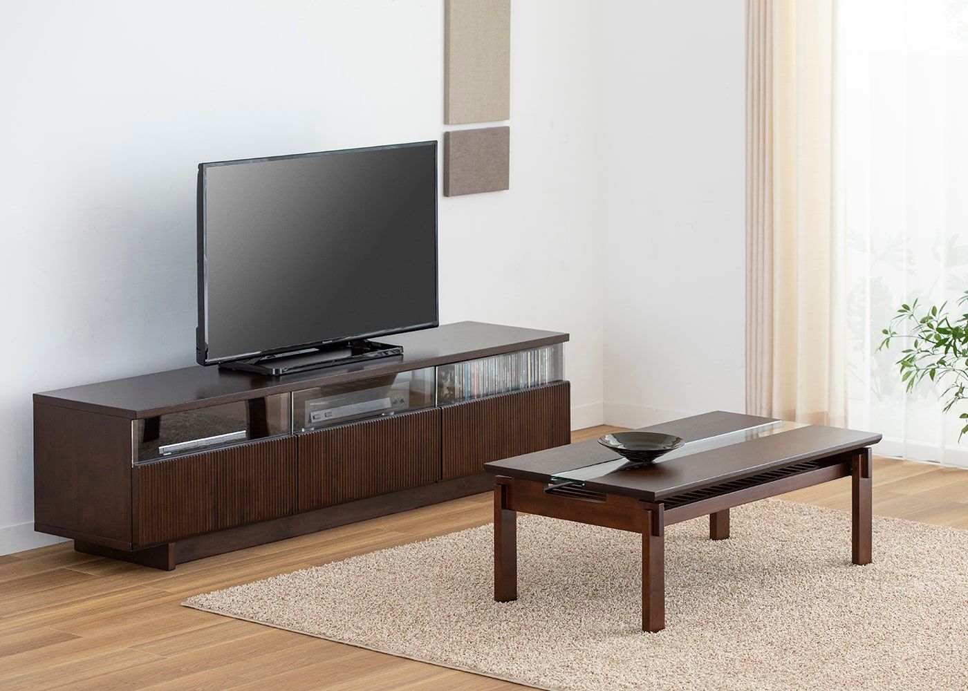 テレビボードにキャビネットを組み合わせたセットです。テレビボードの片側にキャビネットのあるv01セットと両側にあるv02セットをご用意しました。コンパクトサイズながらもテレビボードにさらに収納を増やしたい方にはv01セット、存在感のある整然とした佇まいの大人なリビング空間を演出したい方にはv02セットがおすすめです。(写真は一例です)