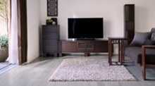 ウッド・ソファv02との組み合わせ例。(写真のソファは幅1830mm。テレビボードは幅1840mm)