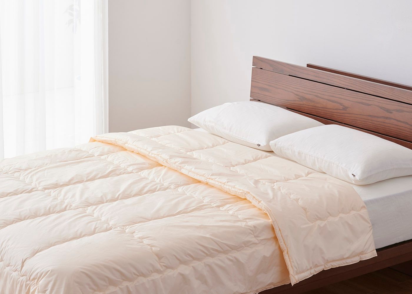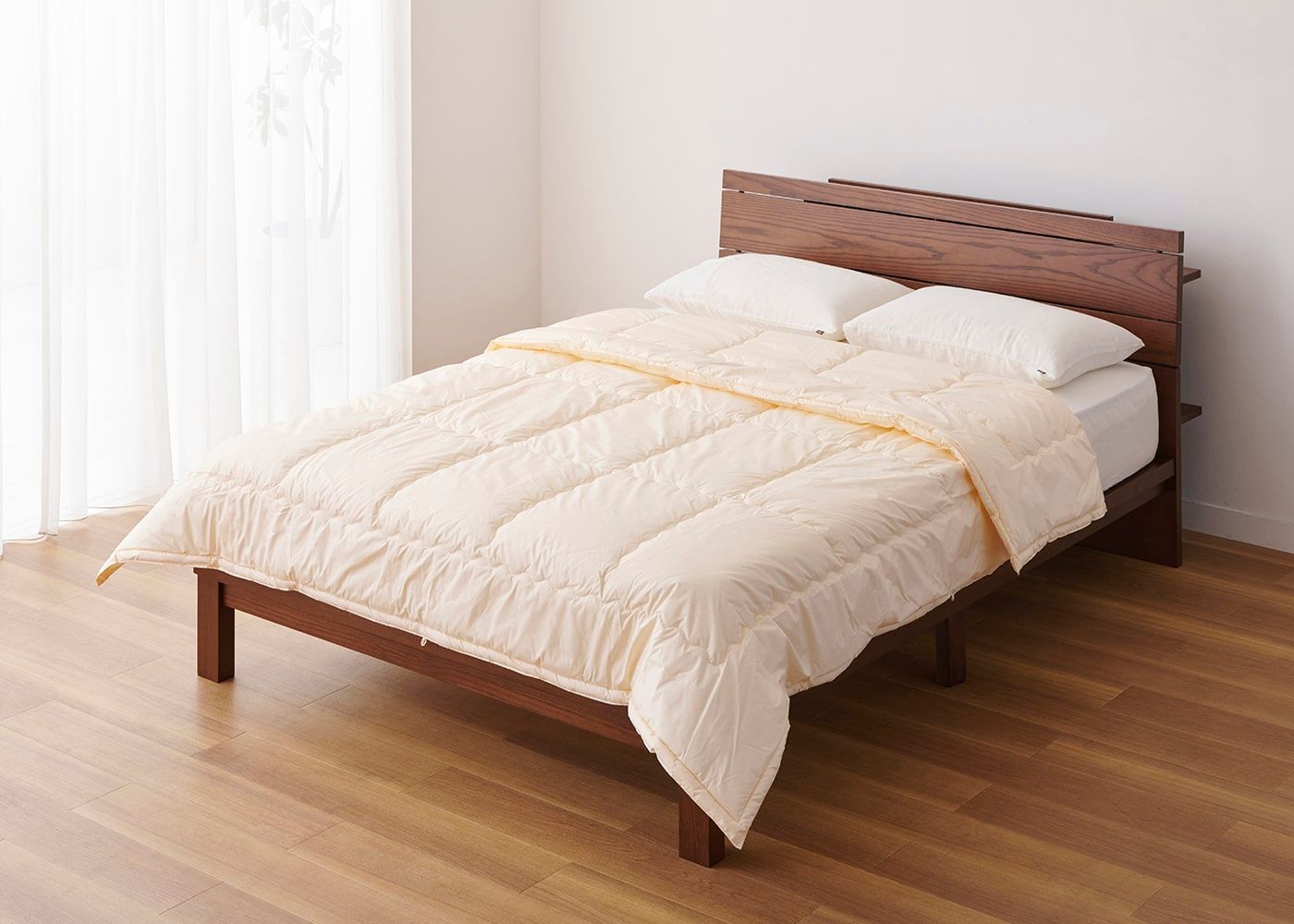 中綿には羊毛に近い感触で保温性の高い「ウォシュロン」と、吸汗・抗菌・防ダニに優れた素材の「マイティトップ」をバランス良く配合しています。アレルギーが気になる方も安心してお使いいただけます。