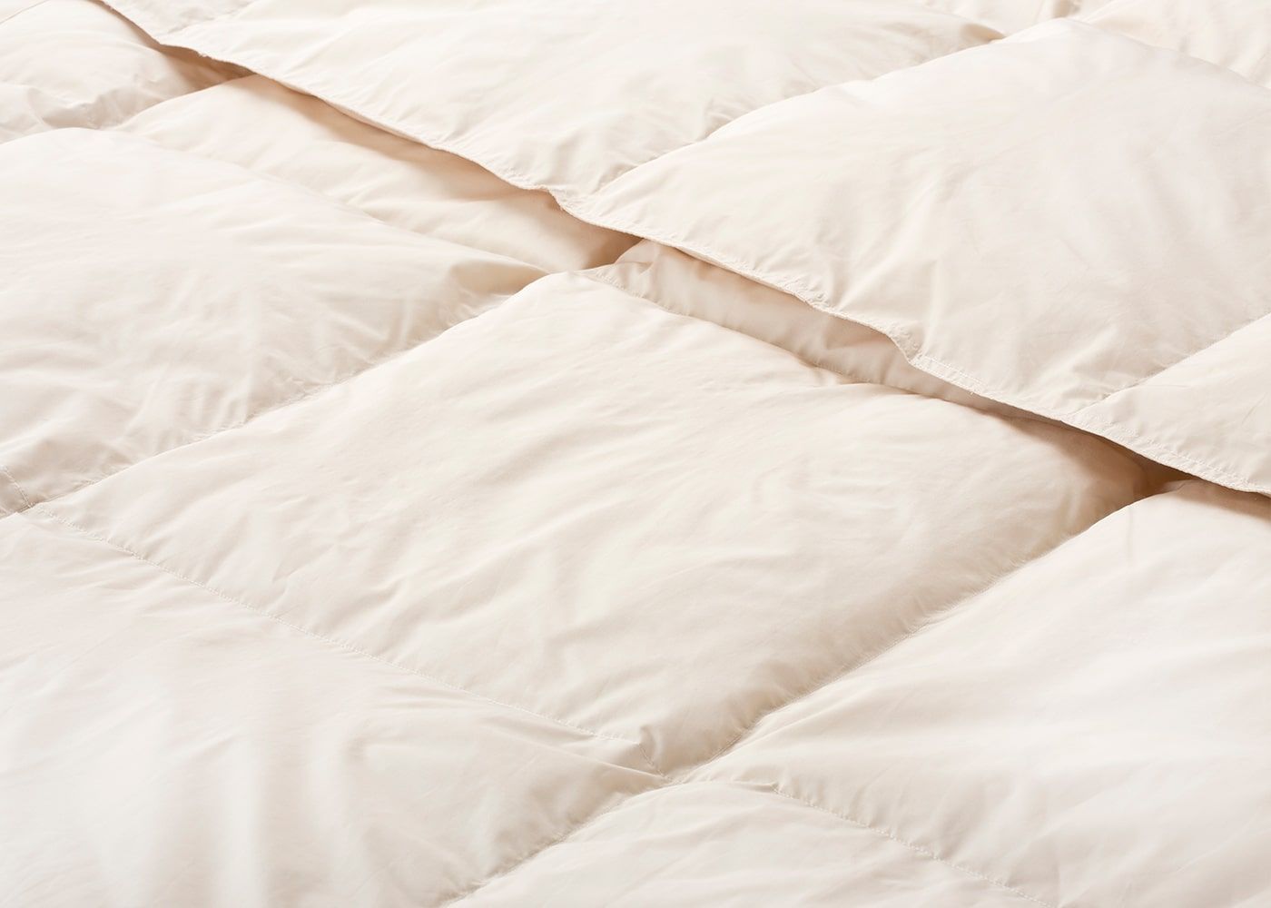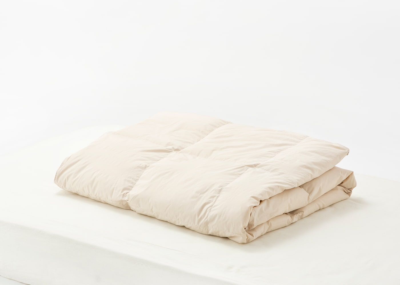 初夏や秋口など、気候のよい季節には単体で使うことで快適にお休み頂けます。羽毛ならではの軽さや保温性、通気性を味わってください。真夏のクーラー対策としても活躍するでしょう。(写真のサイズはダブル)