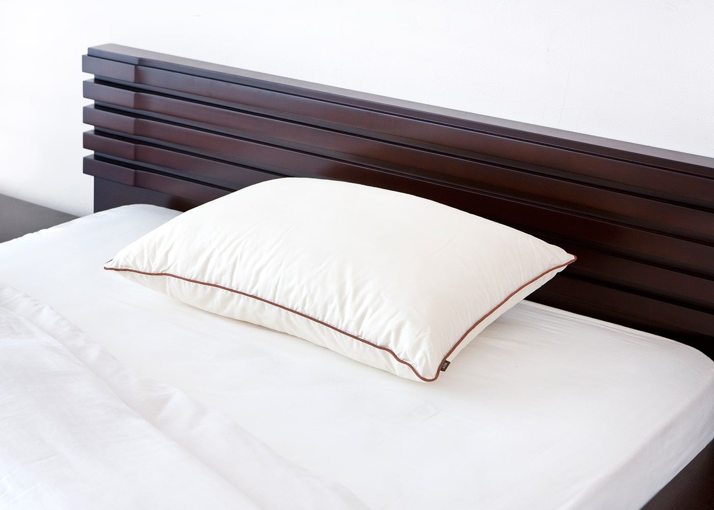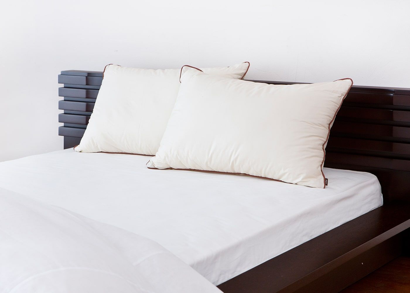 頭をのせるとふわっとやさしくゆっくり沈み込み、一流ホテルのような心地良い眠りへと誘います。高さは、普通と高めの2種類をご用意しています。お好みに合わせてお選び下さい。(写真のサイズは高め)