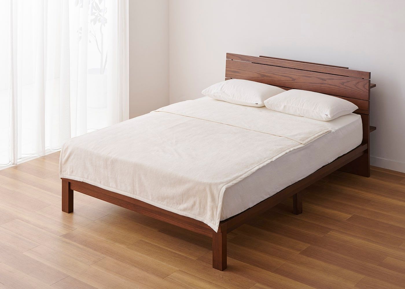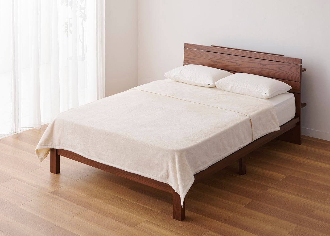 上質な肌触り・寝心地のシール織り綿毛布で快適な睡眠をお楽しみください。(写真のサイズは毛布・ベッドともにダブル)