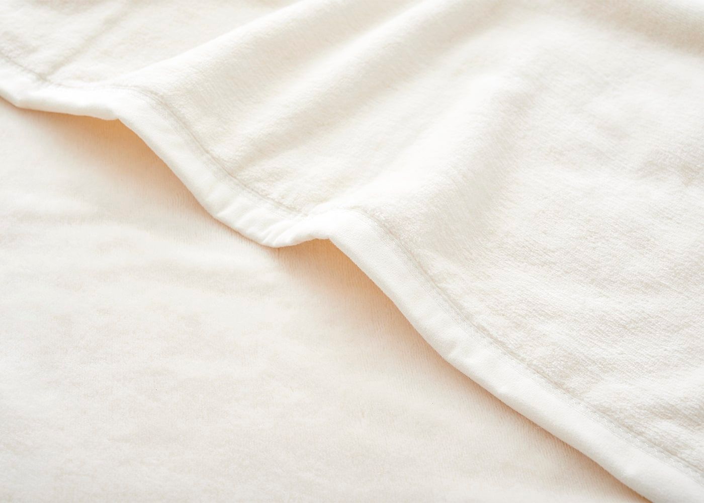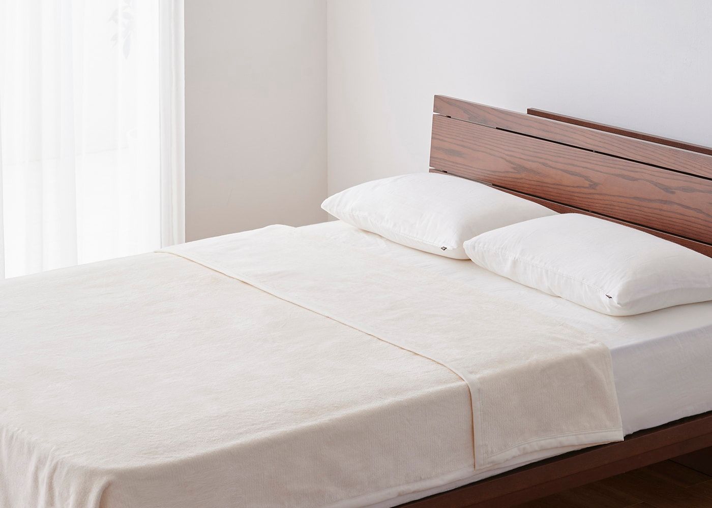肌ざわりの良さが特に優れ、デリケートな肌を柔らかく優しく包みこみます。静電気がなく、ぐっすりと心地よい眠りが得られて一晩中快適です。また、保温性や吸湿性にも優れているので、夏は爽やかで冬は暖かく快眠できるでしょう。(写真の毛布サイズはシングル、ベッドはダブル)