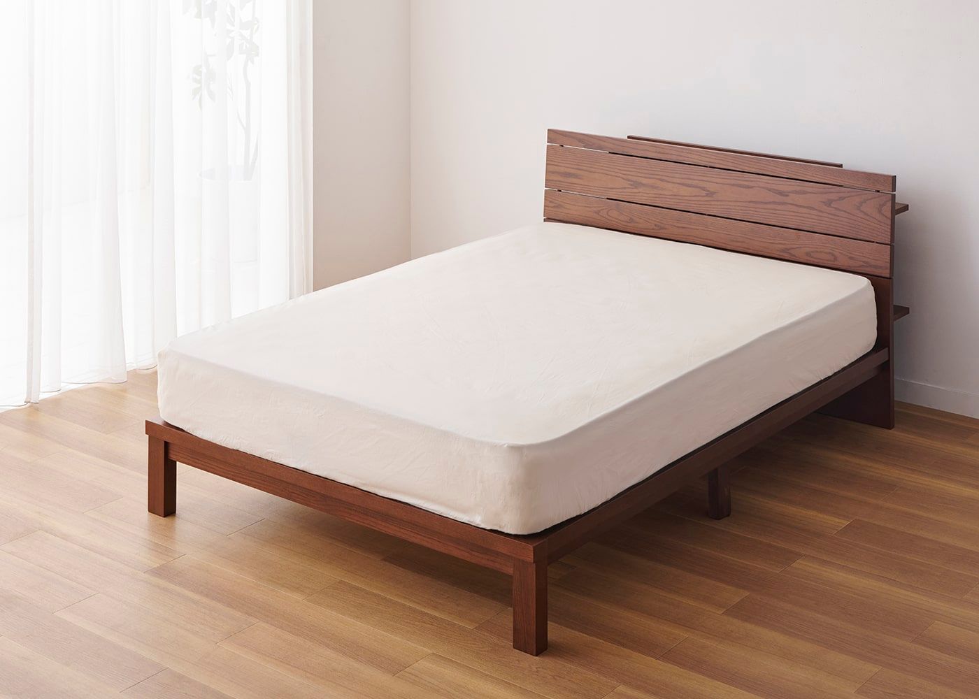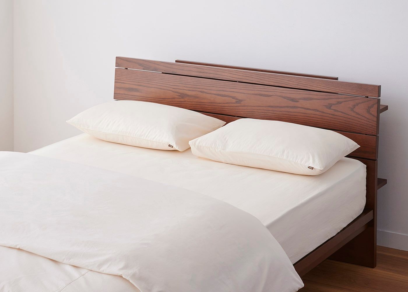 ハリのある風合いによって清潔感のある寝室を生み出す、ブロード ボックスシーツ。(写真のカラーはアイボリー)