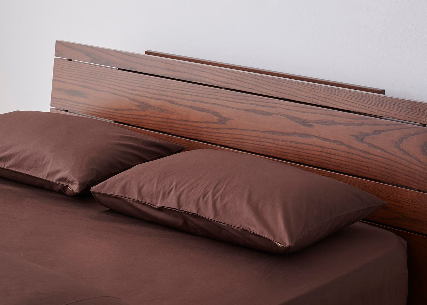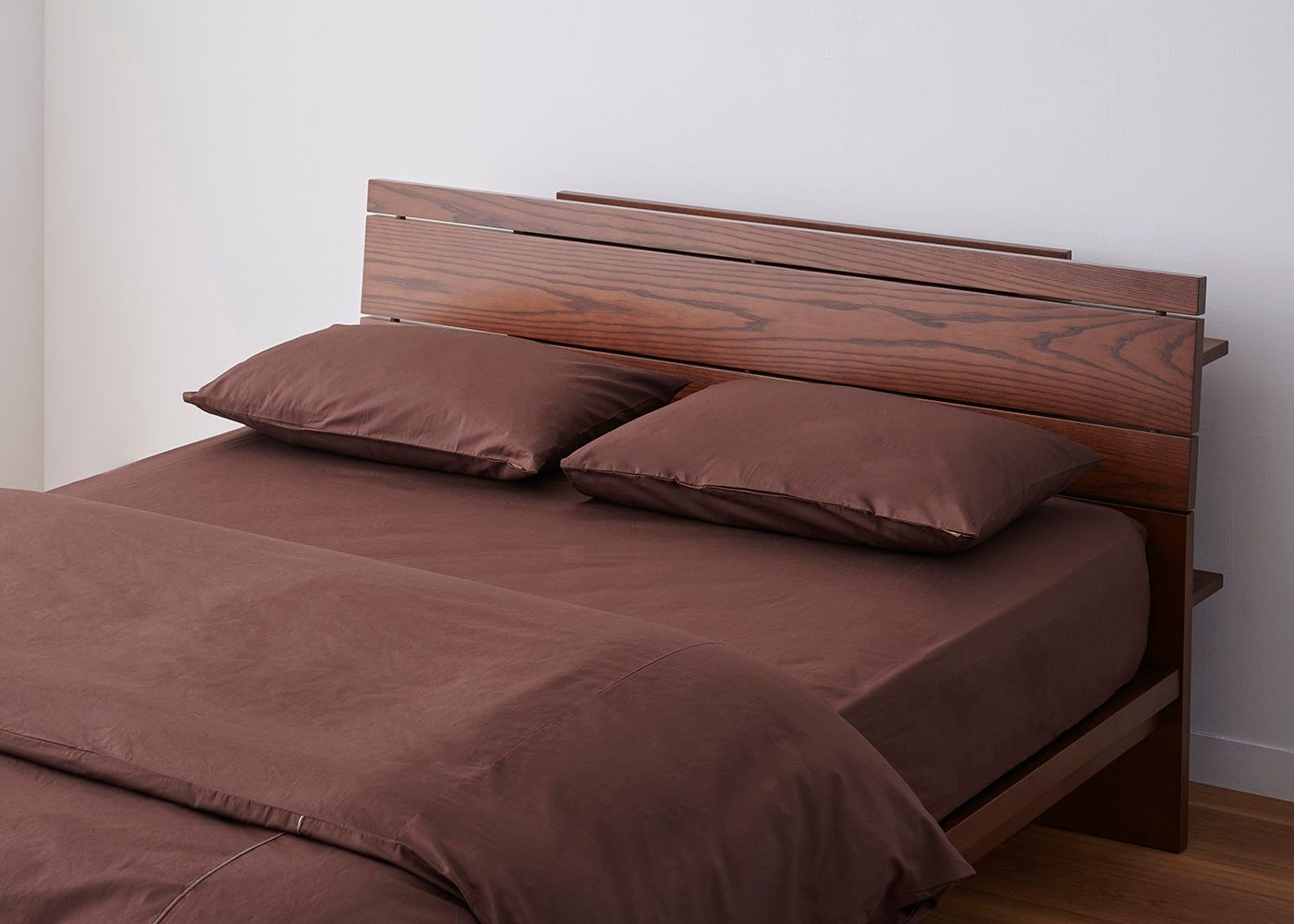 写真はブロードのブラウンで統一したイメージ。同素材・色のコンフォーターケースボックスシーツ(別売り)と合わせて、モダンなベッド周りを演出してみましょう。