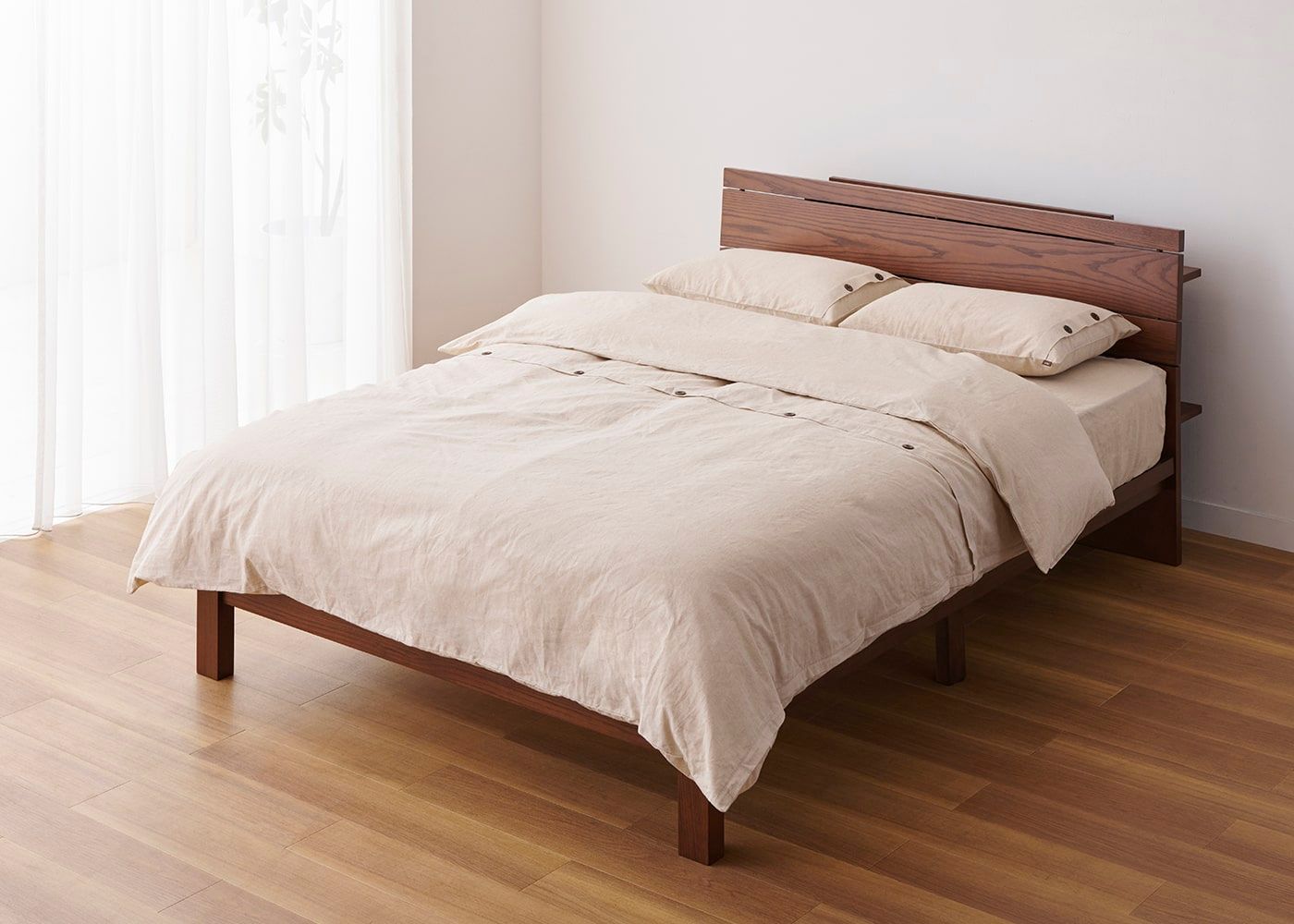 寝室の雰囲気に合わせてお好みのカラーをお選び下さい。写真は麻混のホワイトで統一したイメージ。同素材・色の