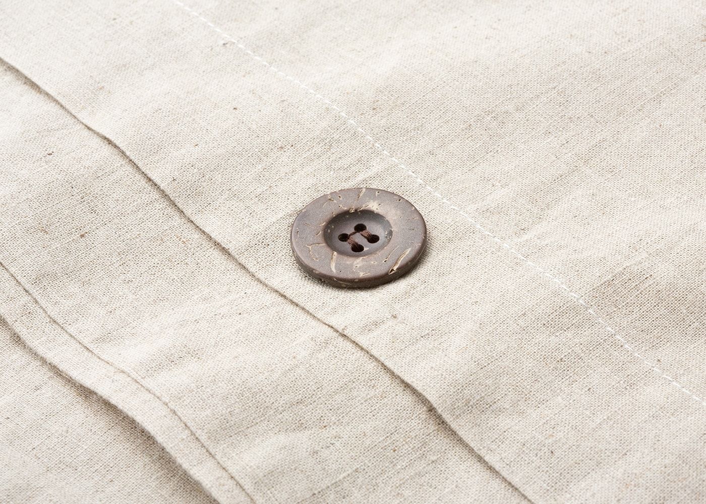 木のボタンが引き立てる麻の表情
