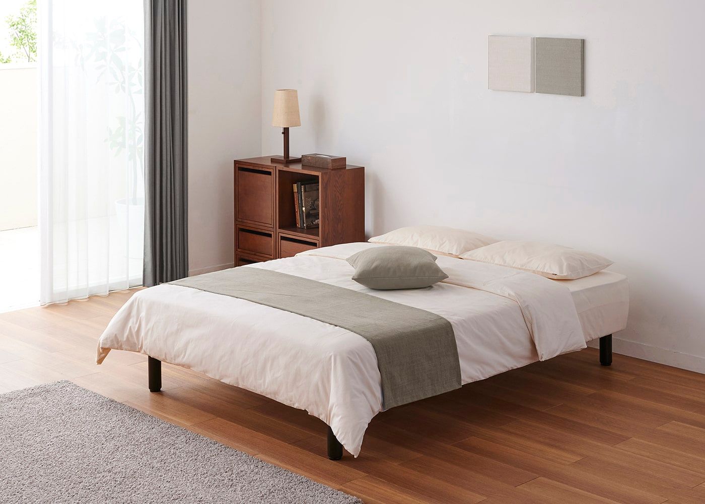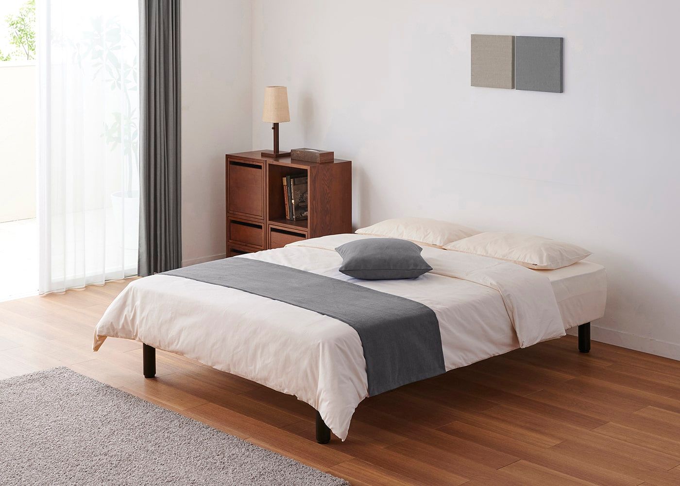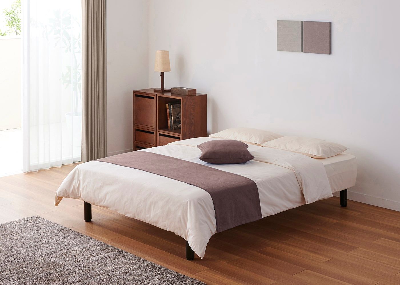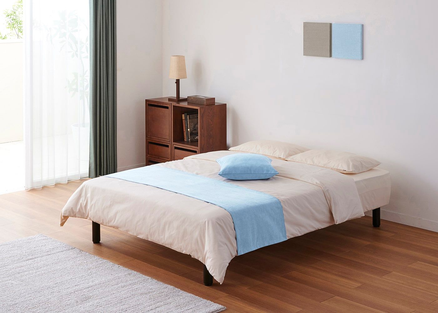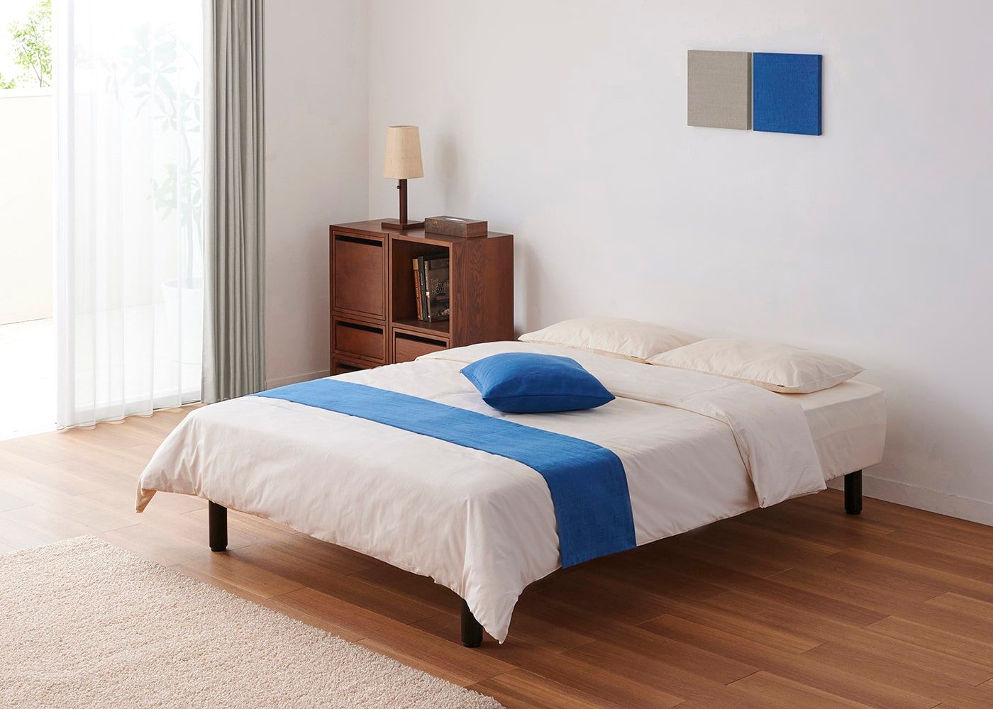 寝室はリビングなどに比べてインテリアコーディネートしにくいと思われていますが、ベッドスローや壁面装飾を添えるだけでも気軽に雰囲気づくりが可能です。お好みのインテリアをプラスして、充実したベッドライフを楽しんでみましょう。(写真はダブル・奥行650 CLターコイズ)
