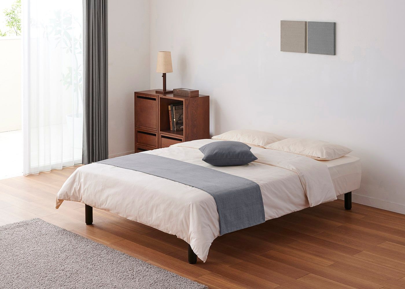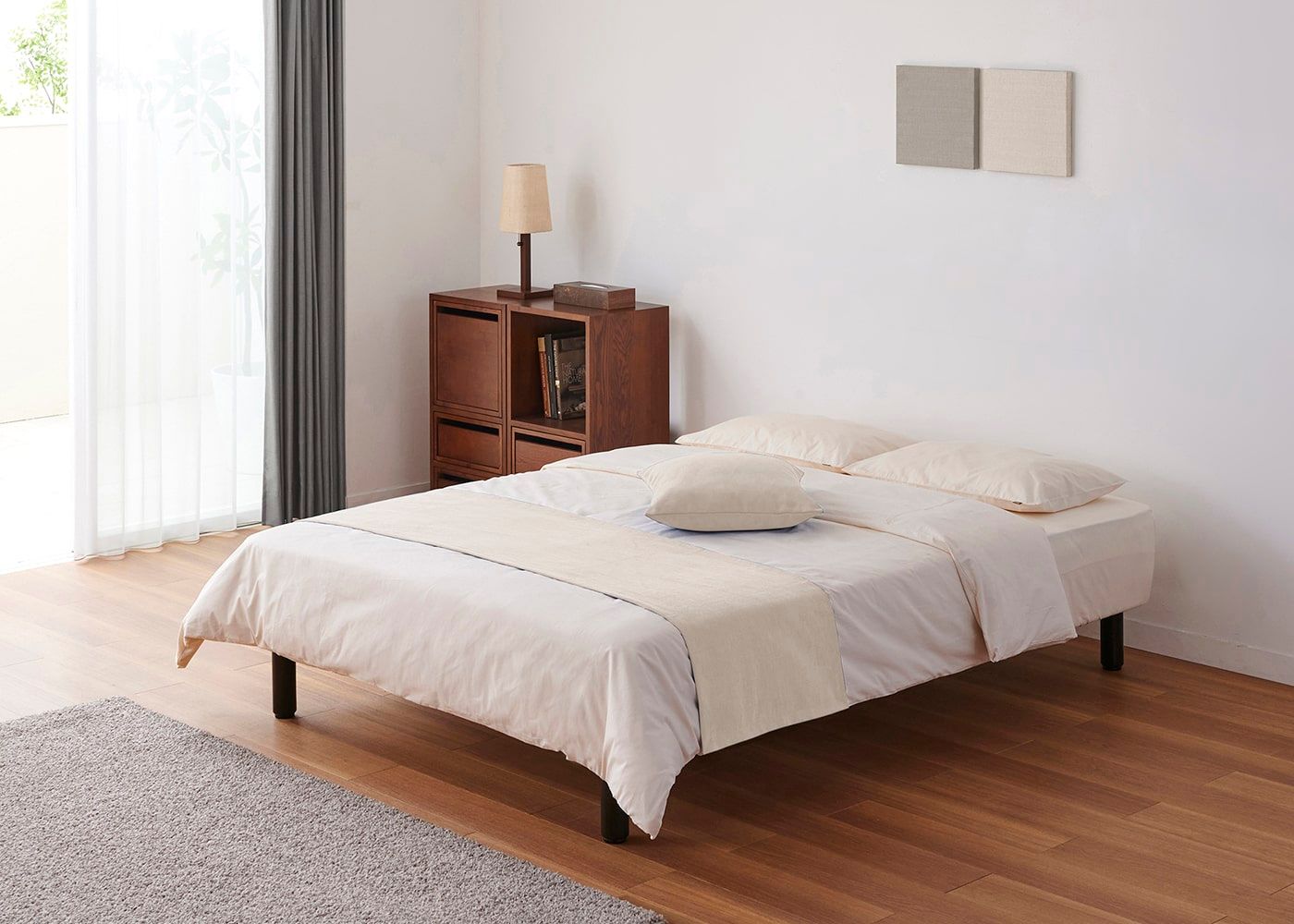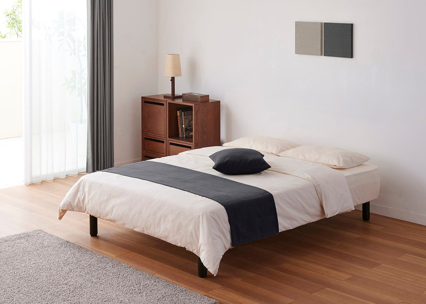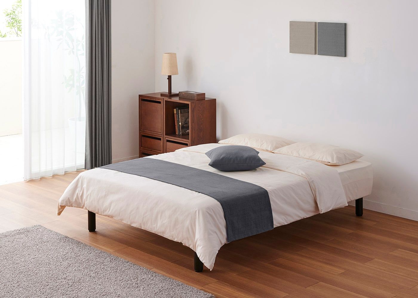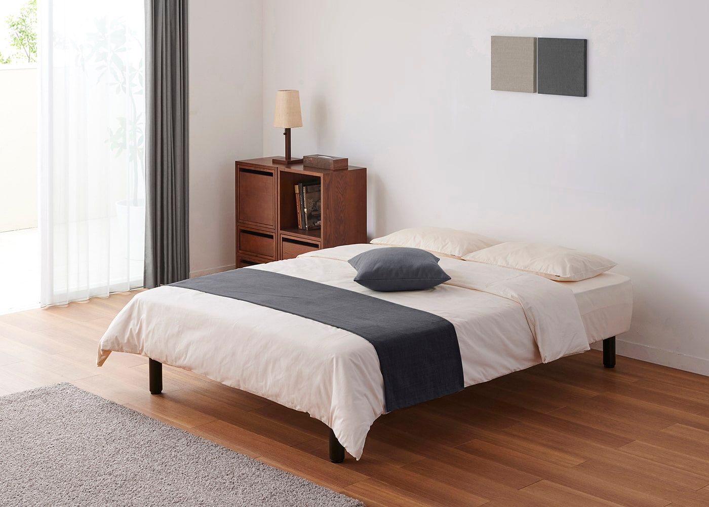 寝室のコーディネートや模様替えをこだわりたい時は、ベッドスプレッド(別売り)と組み合わせてみては? 2枚でコーディネートすることで、おしゃれでホテルライクな部屋づくりが叶います。(写真はベッドスプレッド 奥行1300