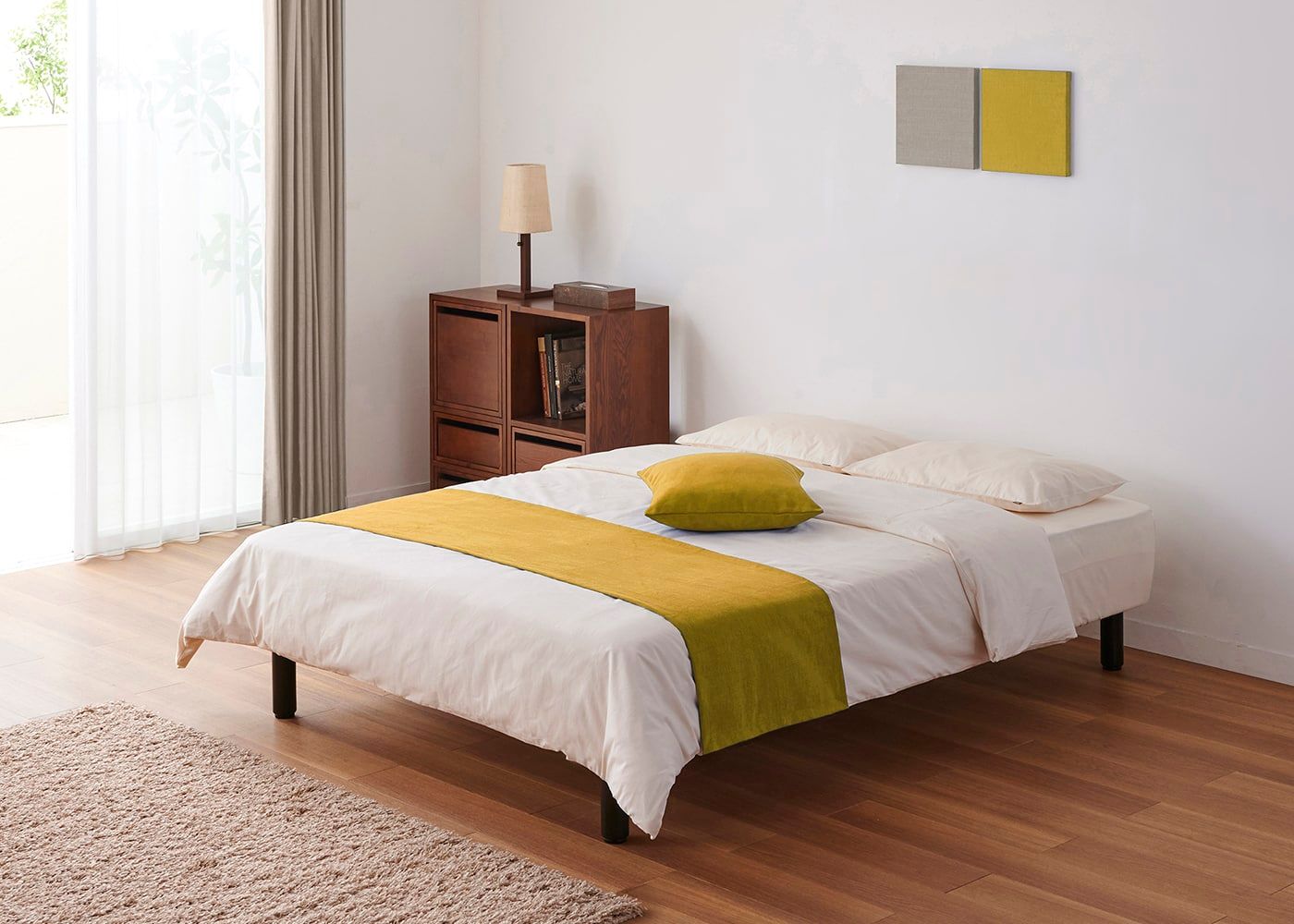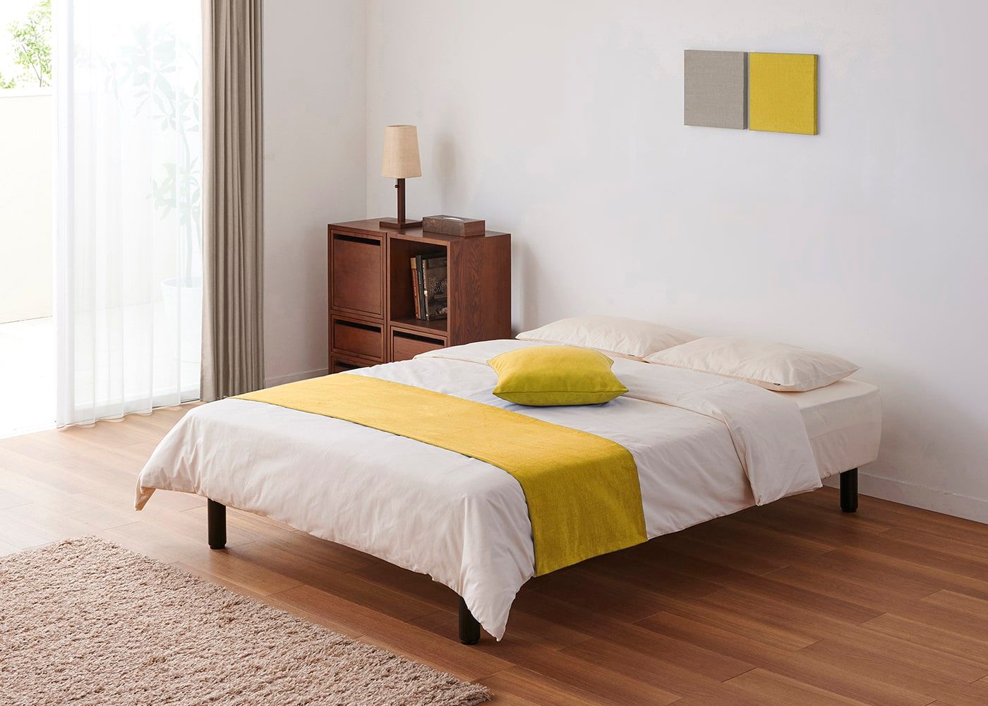 PMホワイトと、ベッドスロー 奥行300 CLマスタードのセット例。)
