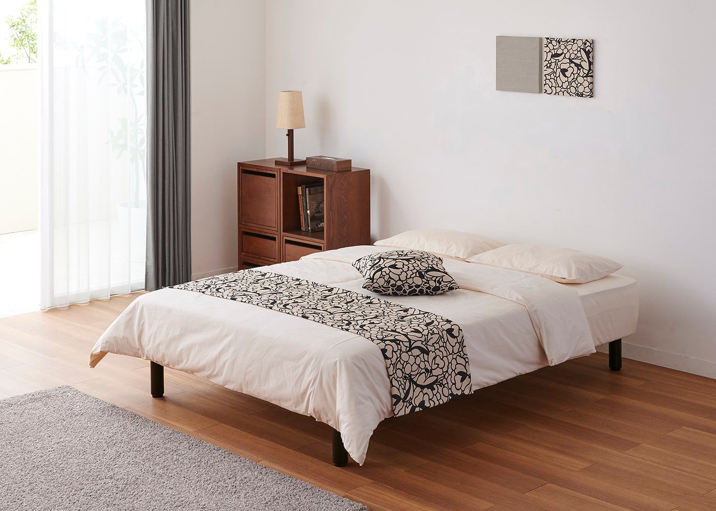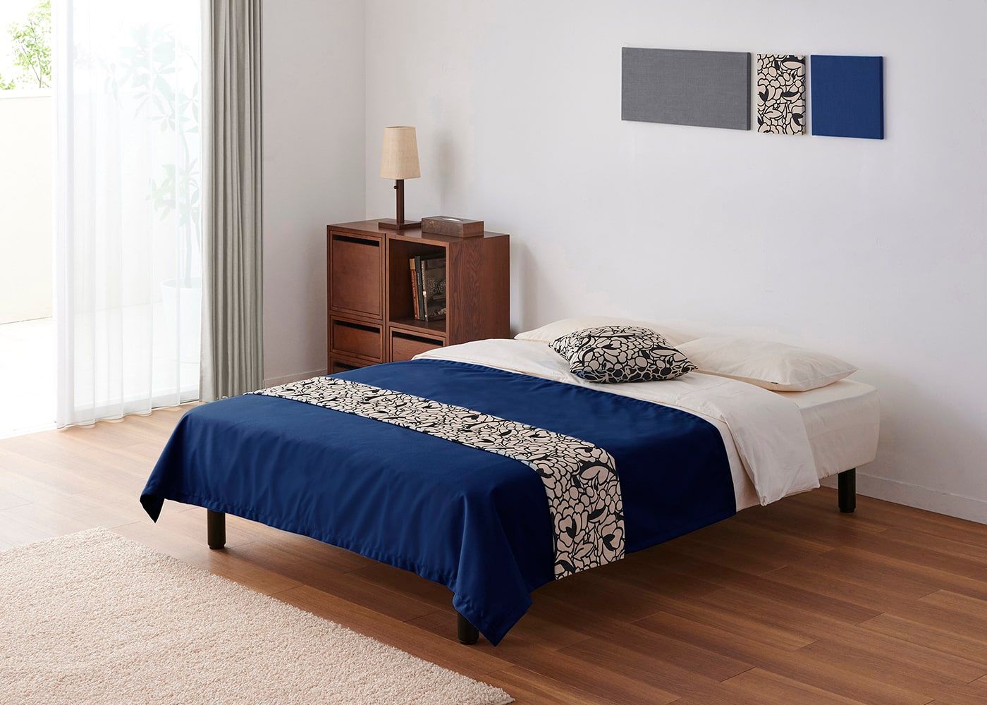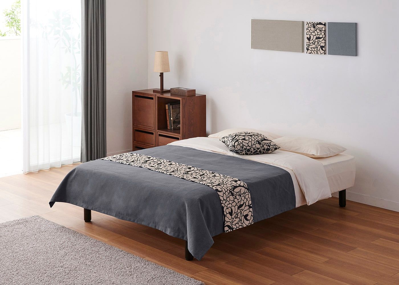 寝室のコーディネートや模様替えをこだわりたい時は、ベッドスプレッド(別売り)と組み合わせてみては? 2枚でコーディネートすることで、おしゃれでホテルライクな部屋づくりが叶います。(写真はベッドスプレッド 奥行1300