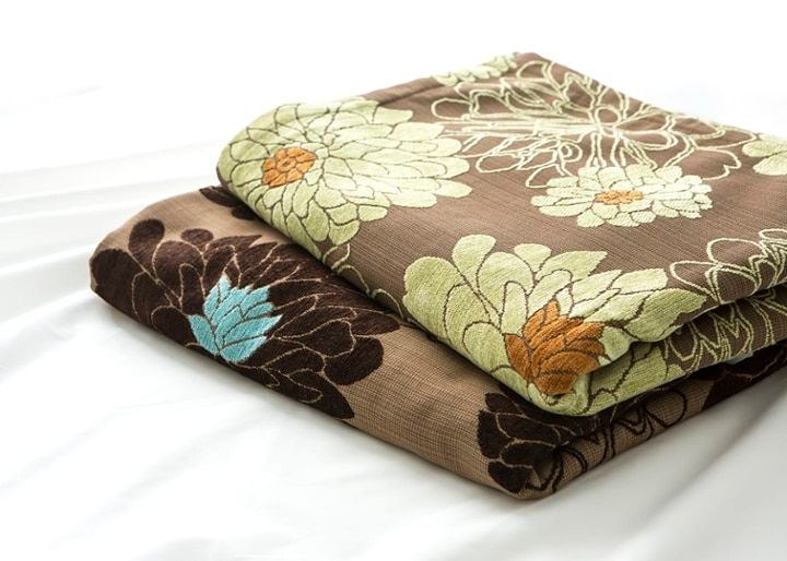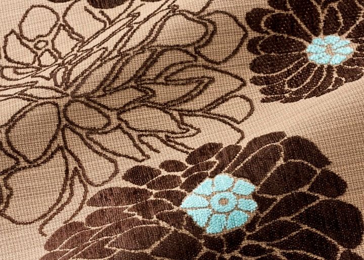 パウリナは、アジアを感じる「菊」をモチーフにしたa.flatオリジナルファブリックです。マットできめ細かなジャガード織りの上に、光沢のあるふっくらしたモール糸で花を大胆に描き、起毛させることで立体感のある表情豊かな生地に仕上げました。さらりとしつつも、やわらかな肌触りとボリューム感が魅力です