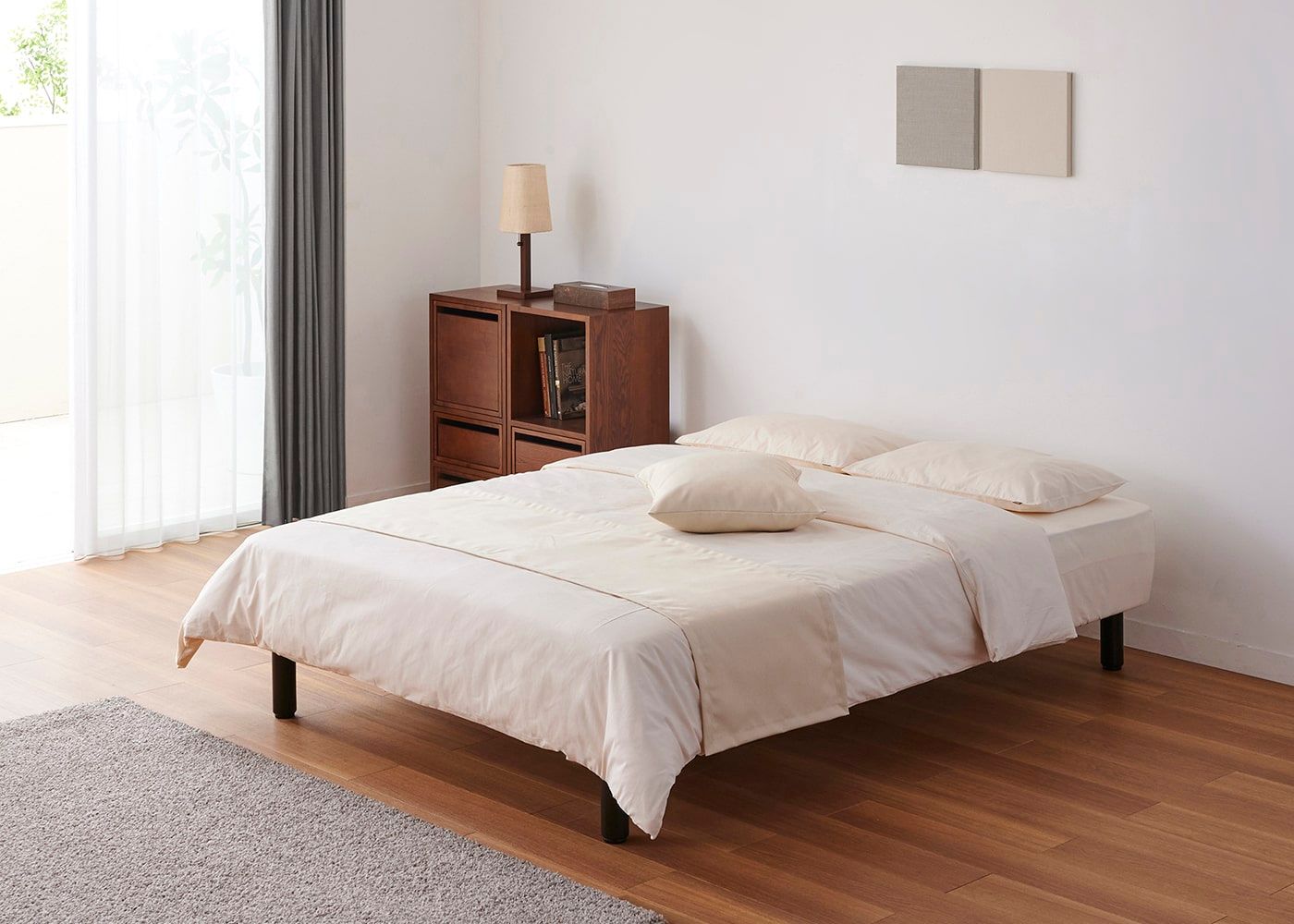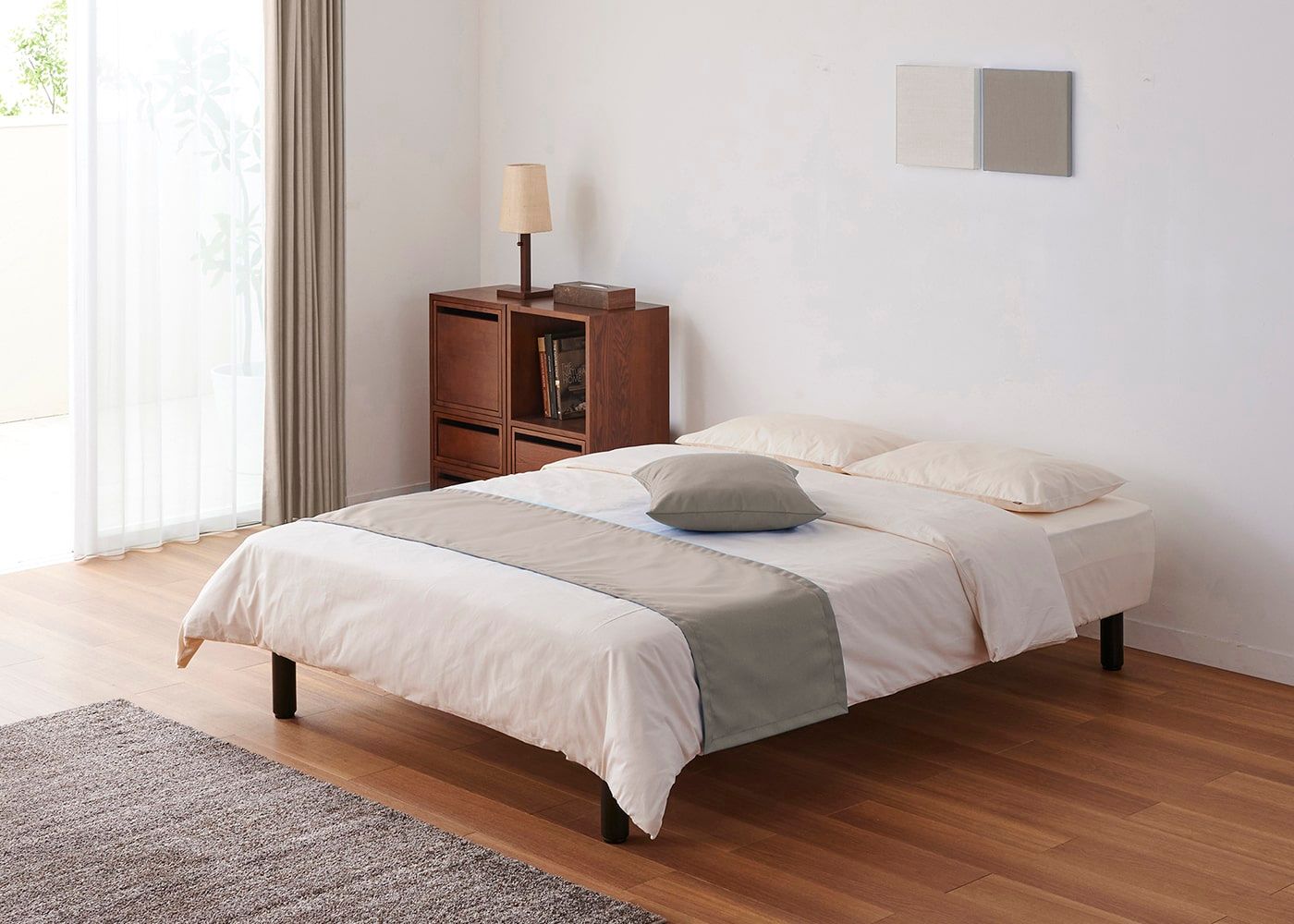 寝室のコーディネートや模様替えをこだわりたい時は、ベッドスプレッド(別売り)と組み合わせてみては? 2枚でコーディネートすることで、おしゃれでホテルライクな部屋づくりが叶います。(写真はベッドスプレッド 奥行1300