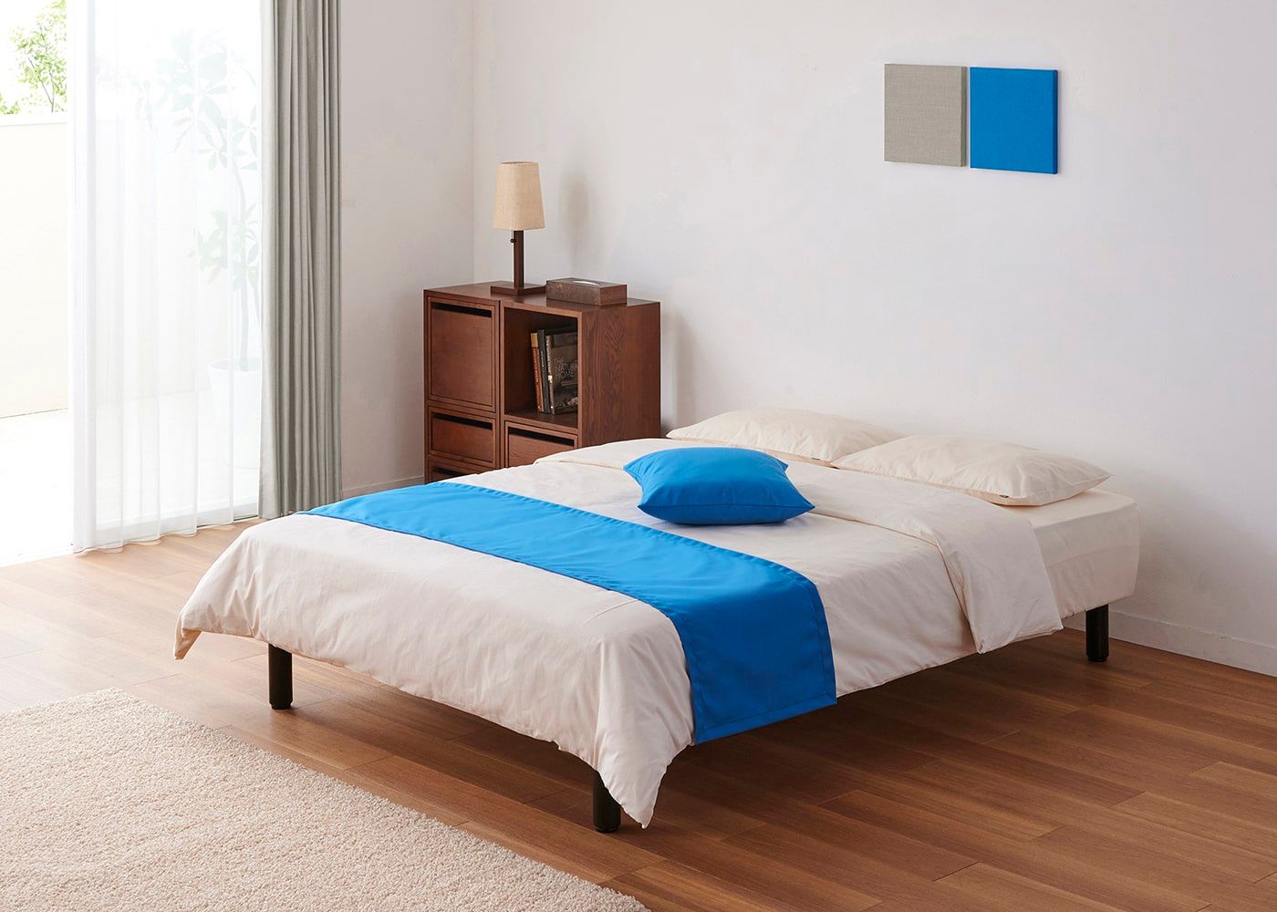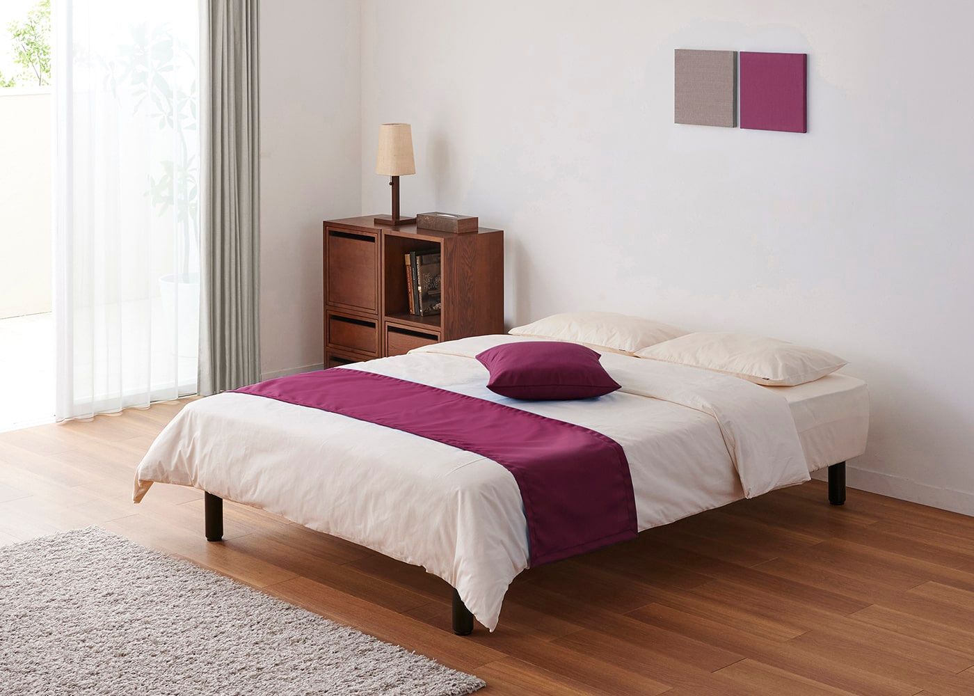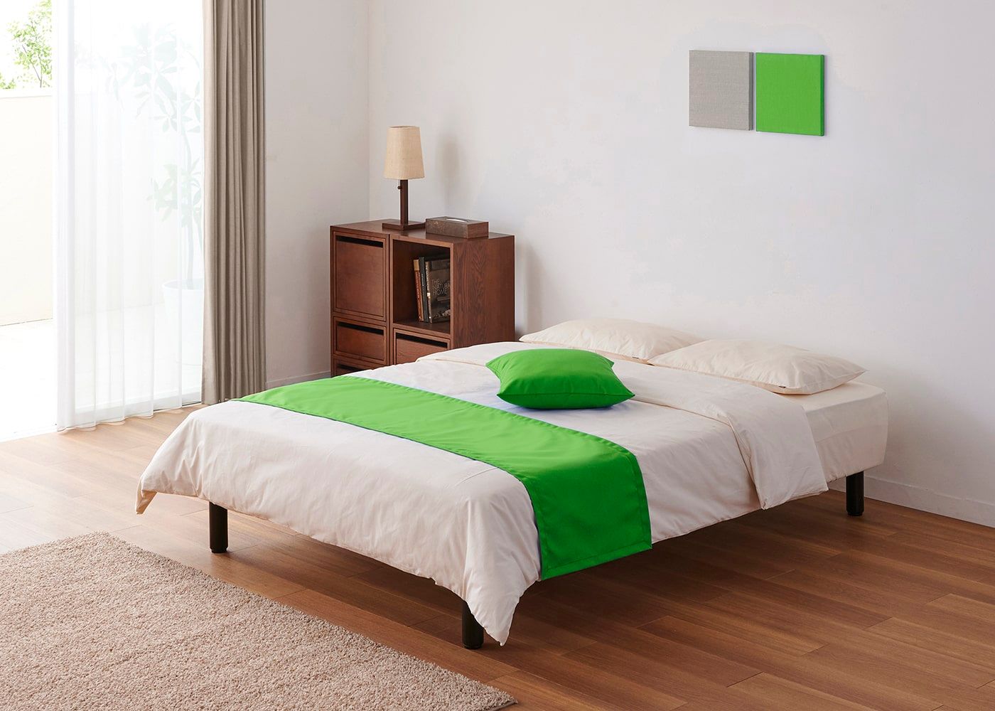 ベッドスロー (テンポテスト)はベッドサイズに合わせて、シングル~クィーンの4サイズ展開。また、見せ方や使い方に合わせて、奥行300 / 450 /