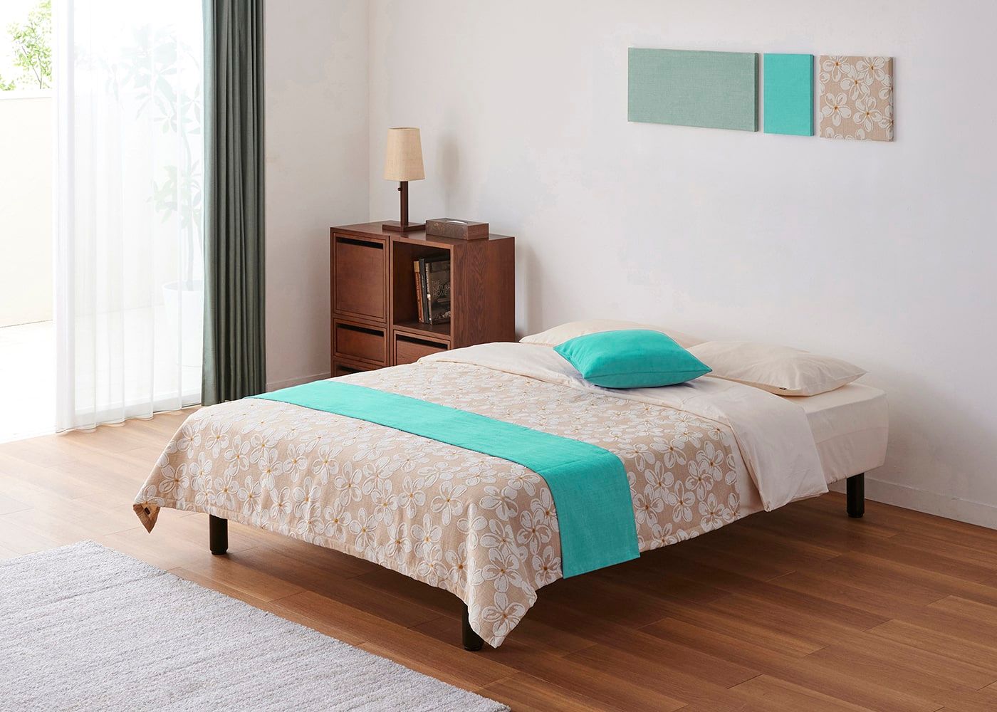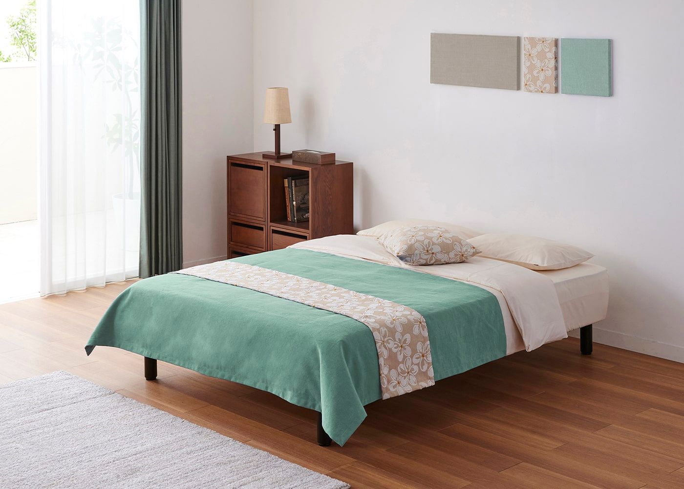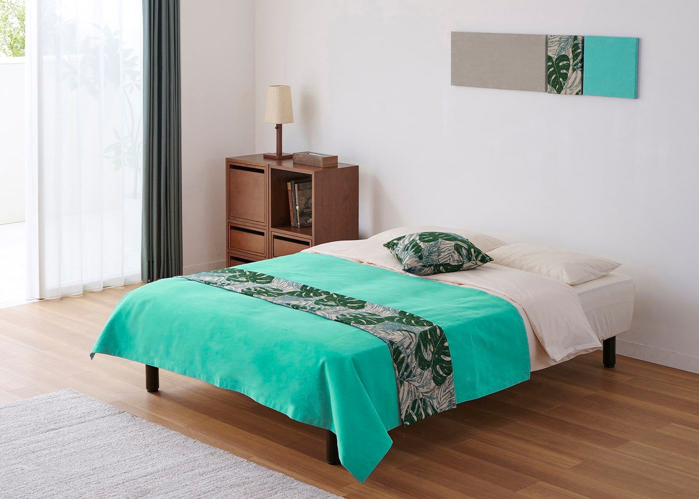 OR ターコイズ(ベッドスプレッド)+MS グリーン(ベッドスロー)[注]撮影環境・PC画面によって素材の色を表現できない場合があることをご了承ください。
