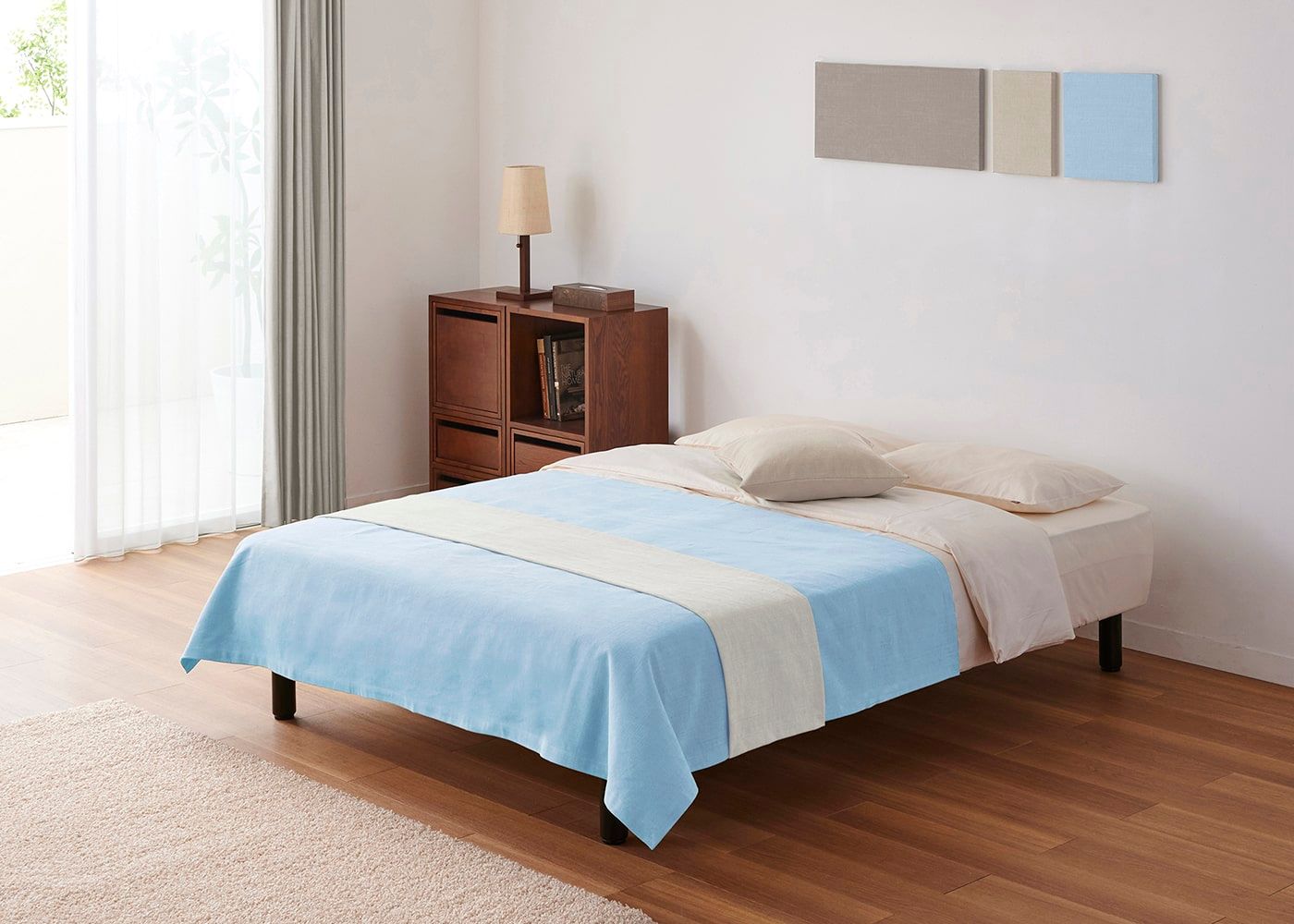 PU ホワイト(ベッドスプレッド)+CL アクア(ベッドスロー)[注]撮影環境・PC画面によって素材の色を表現できない場合があることをご了承ください。